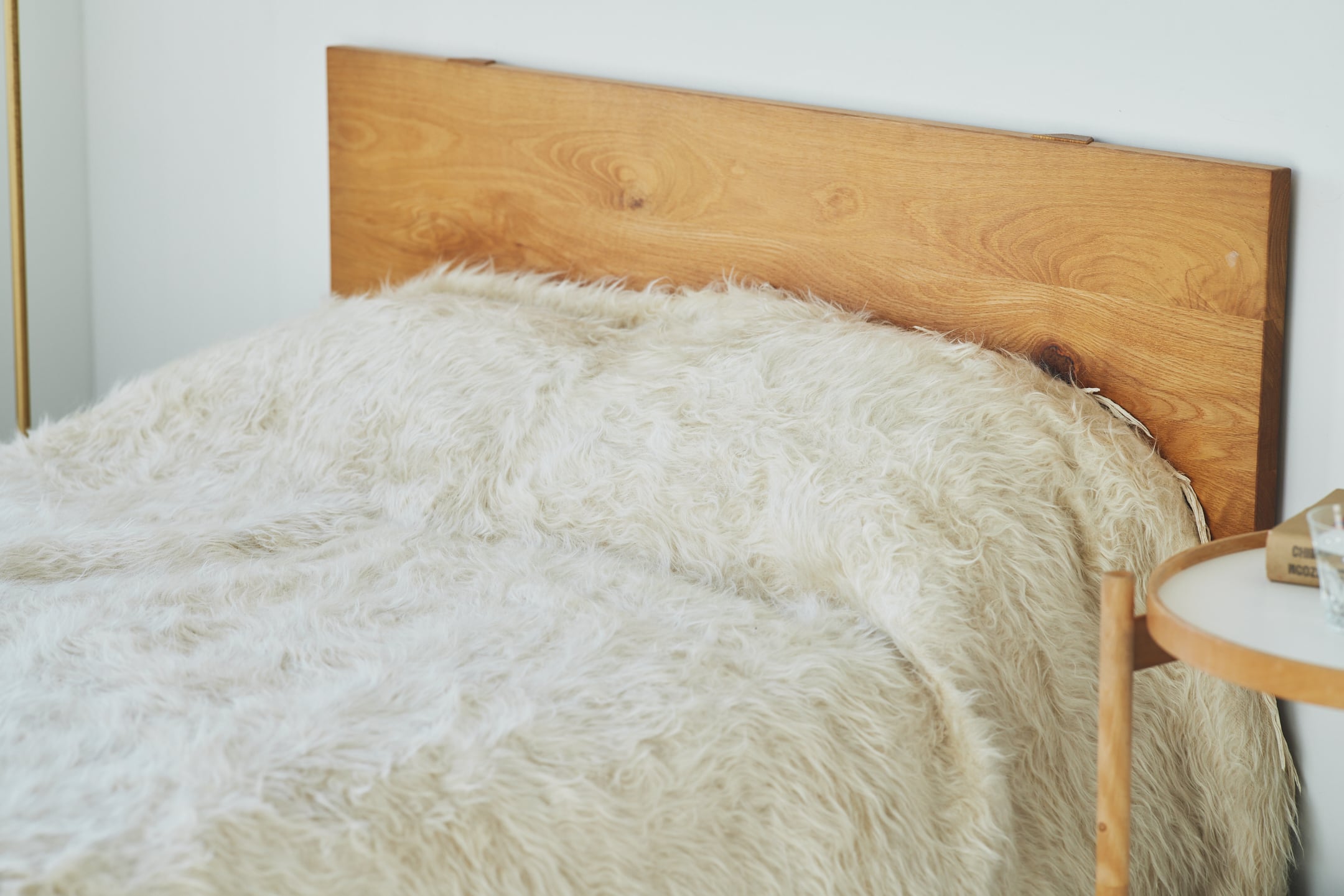 これをソファ全体にかけたり、床に敷いてもいいのですが、おすすめは、もこもこのベッドカバーとして使うこと。