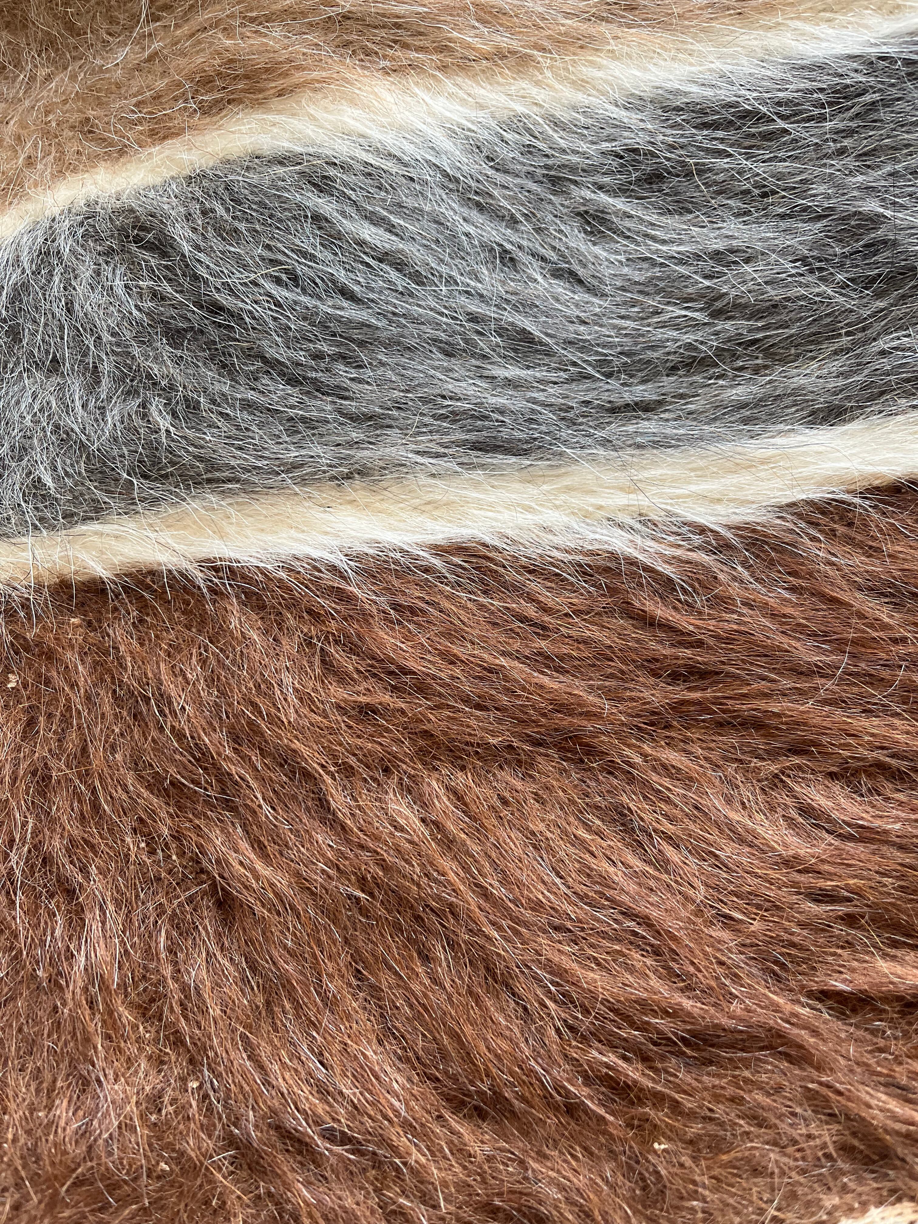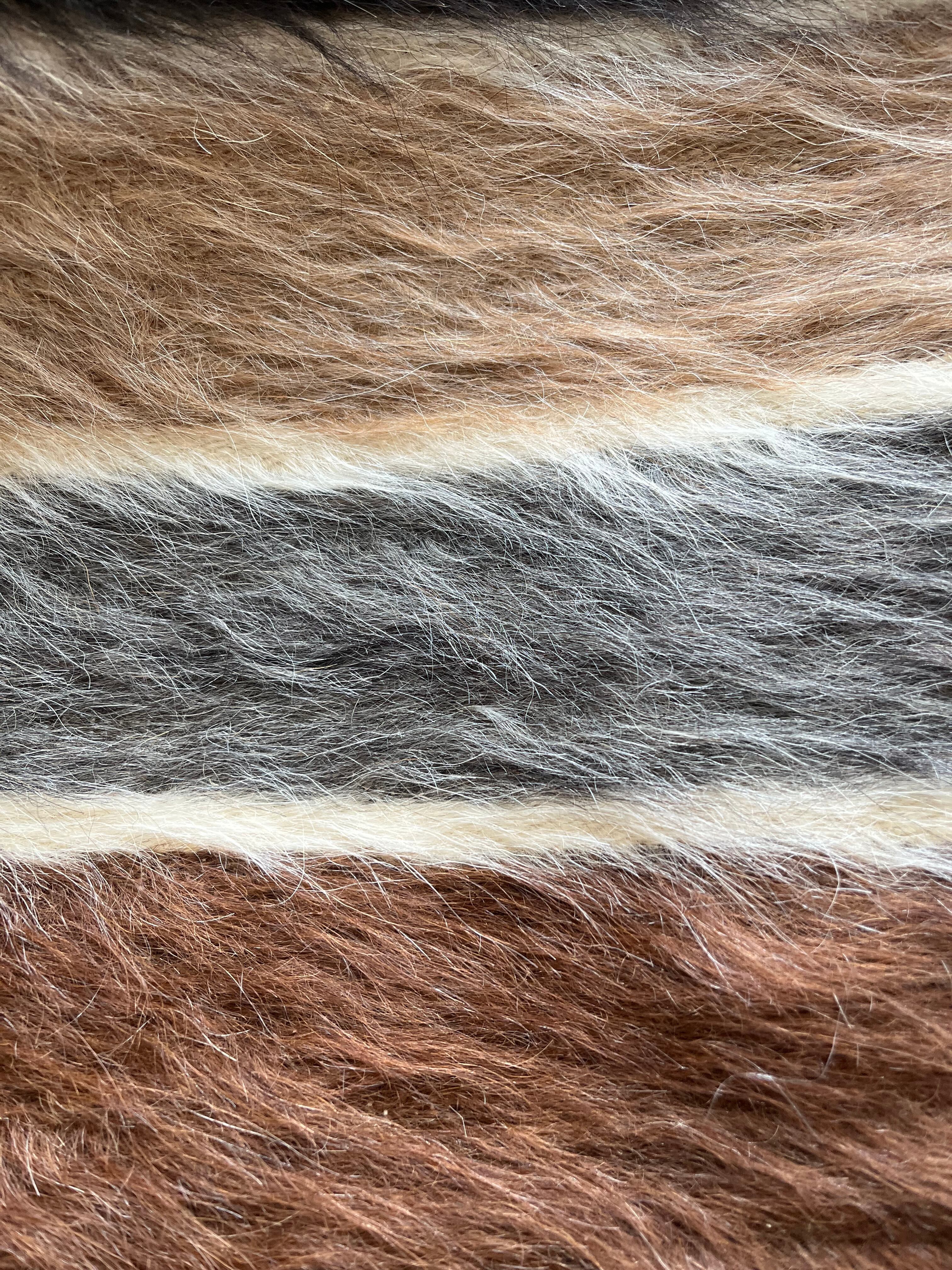 山羊の毛そのままの色を生かし、一切染めずに織られているバッターニエは、クリーム、黒、茶色、キャメル、グレーがメインの色合いです。