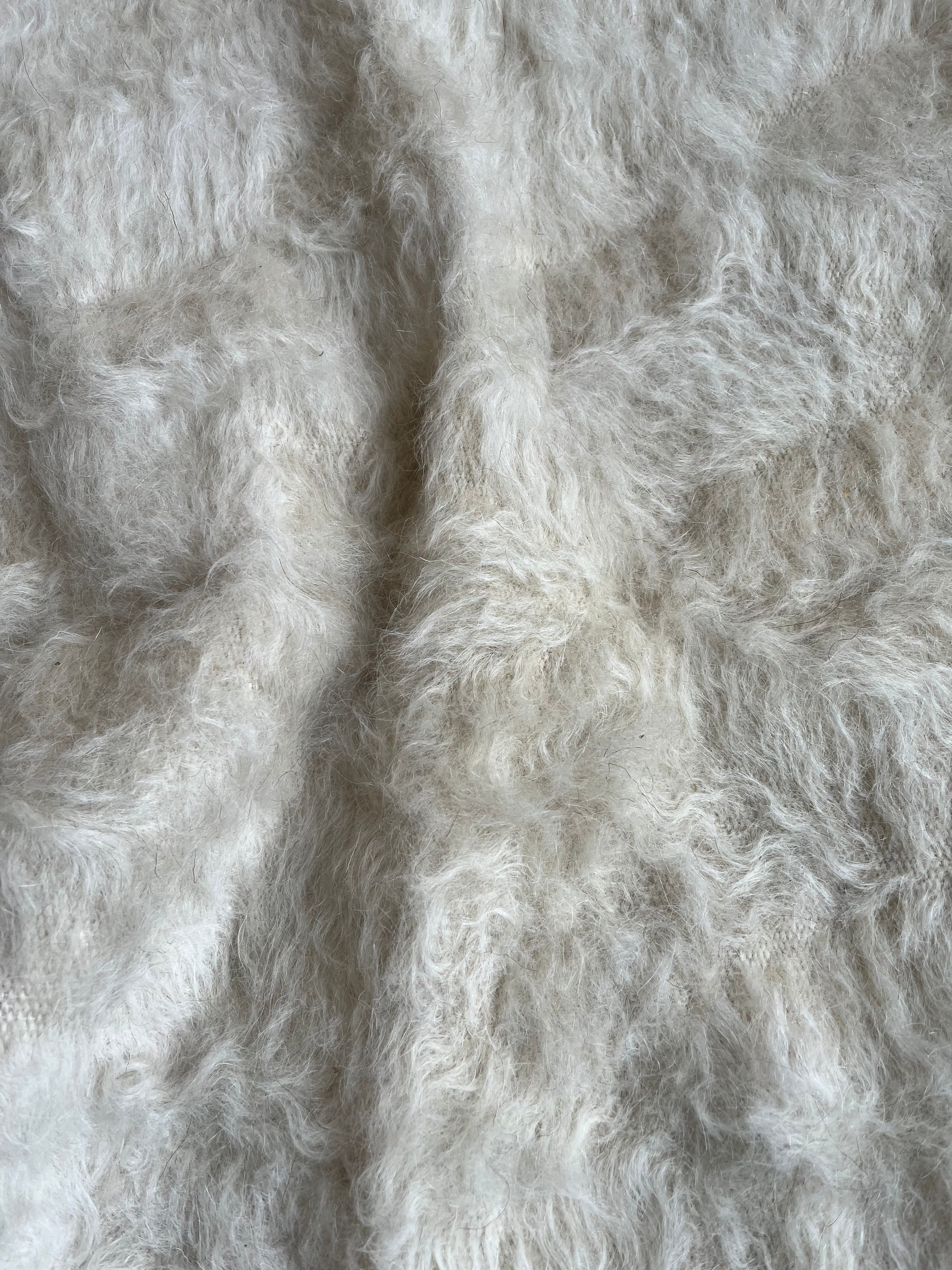 毛質も繊細で細くふわふわとした巻毛のものから、太めでしっかりとしたものまで一頭ずつ違うので、1枚1枚どんな毛を使っているかでモヘアの個性が変わってきます。