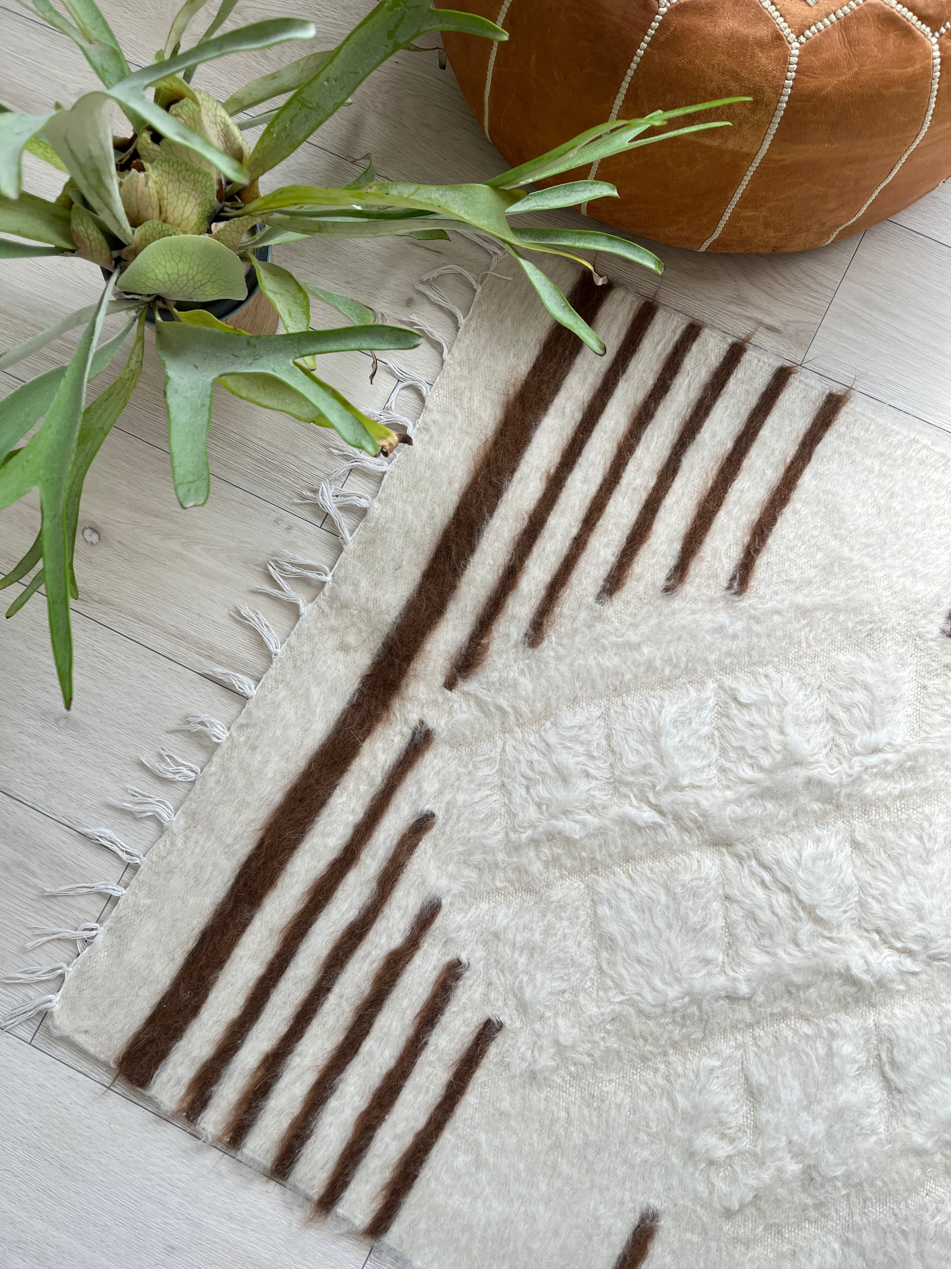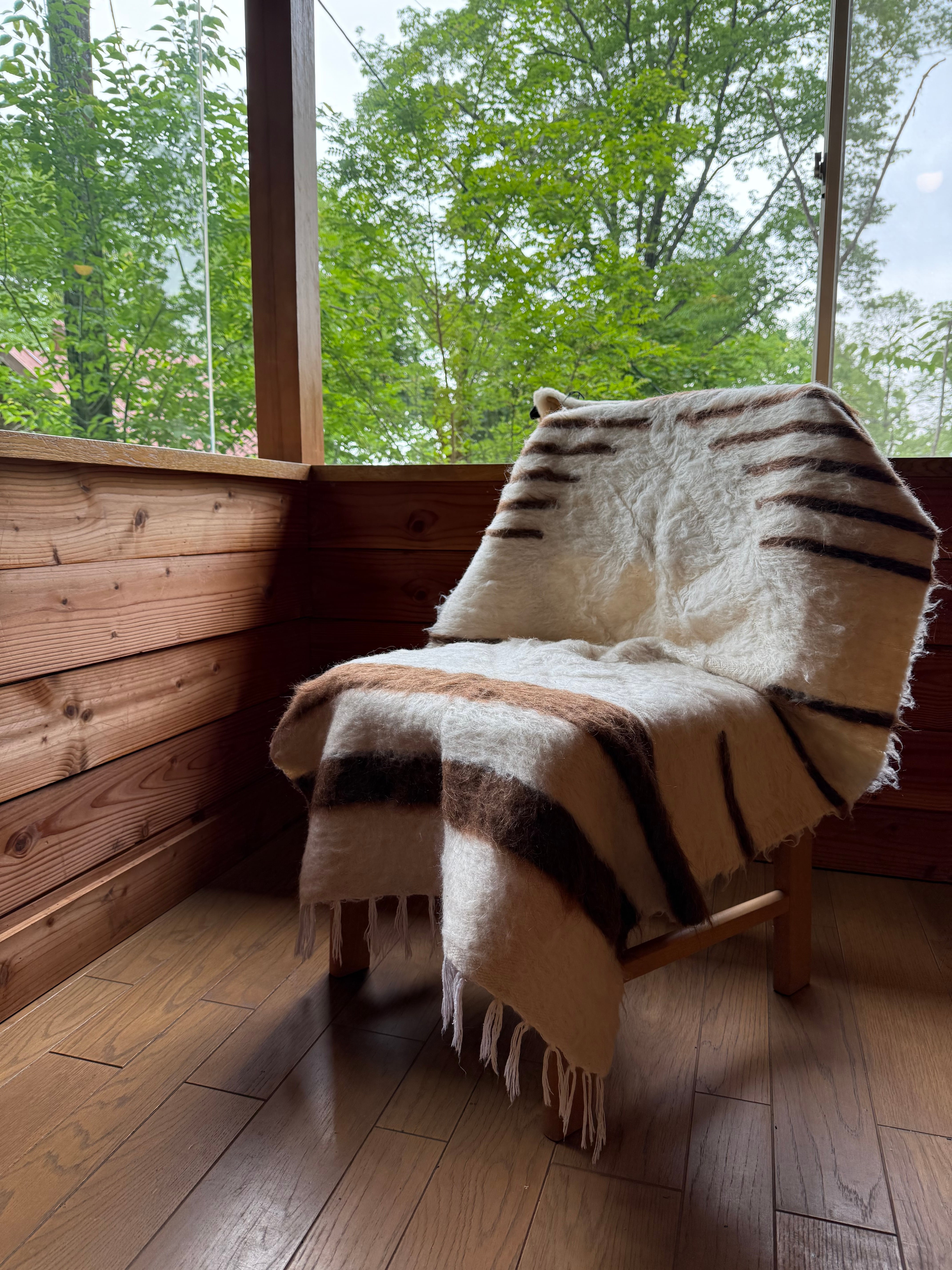 山羊の毛そのままの色を生かし、一切染めずに織られているバッターニエは、クリーム、黒、茶色、キャメル、グレーがメインの色合いです。