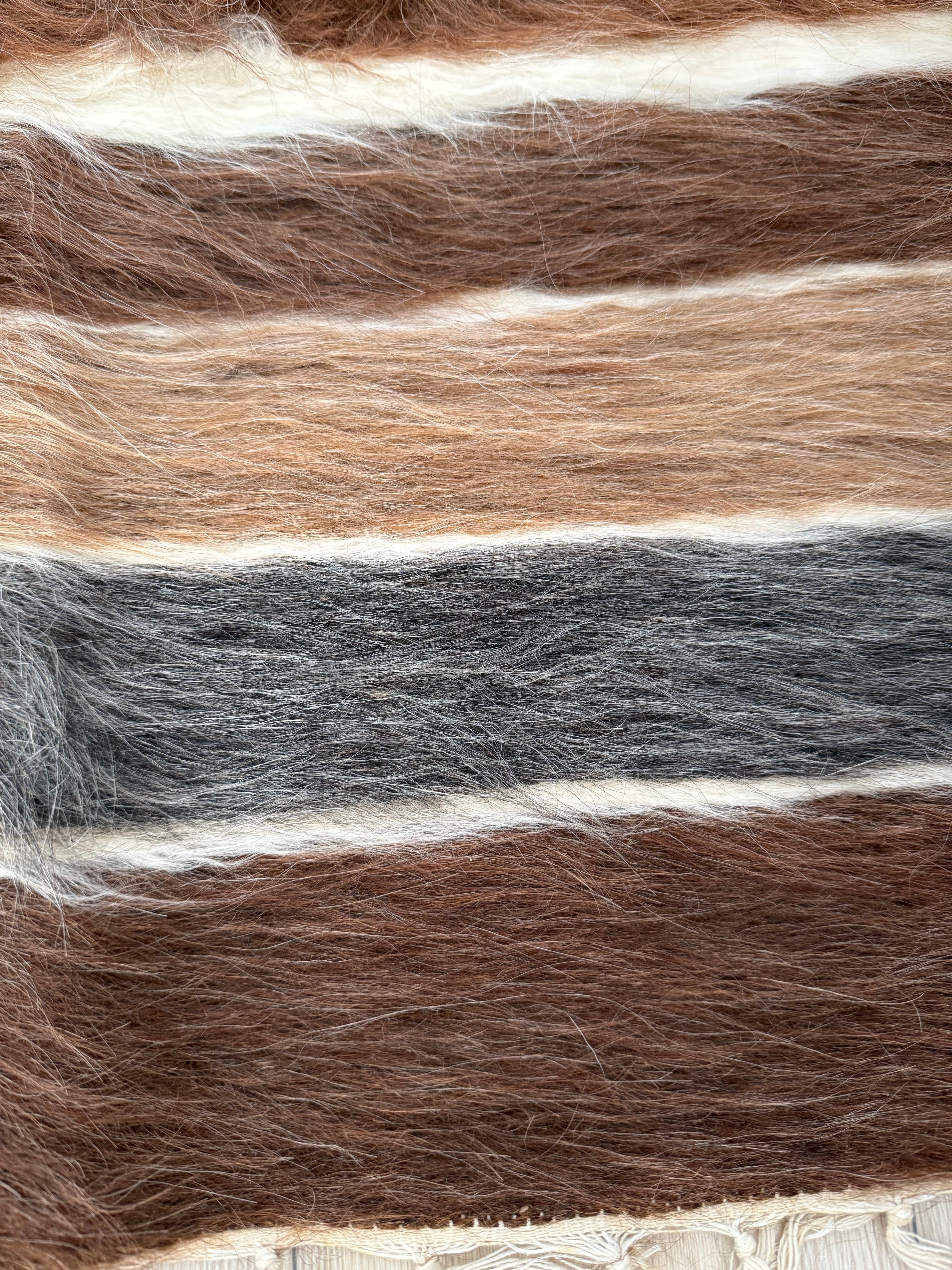 山羊の毛そのままの色を生かし、一切染めずに織られているバッターニエは、クリーム、黒、茶色、キャメル、グレーがメインの色合いです。