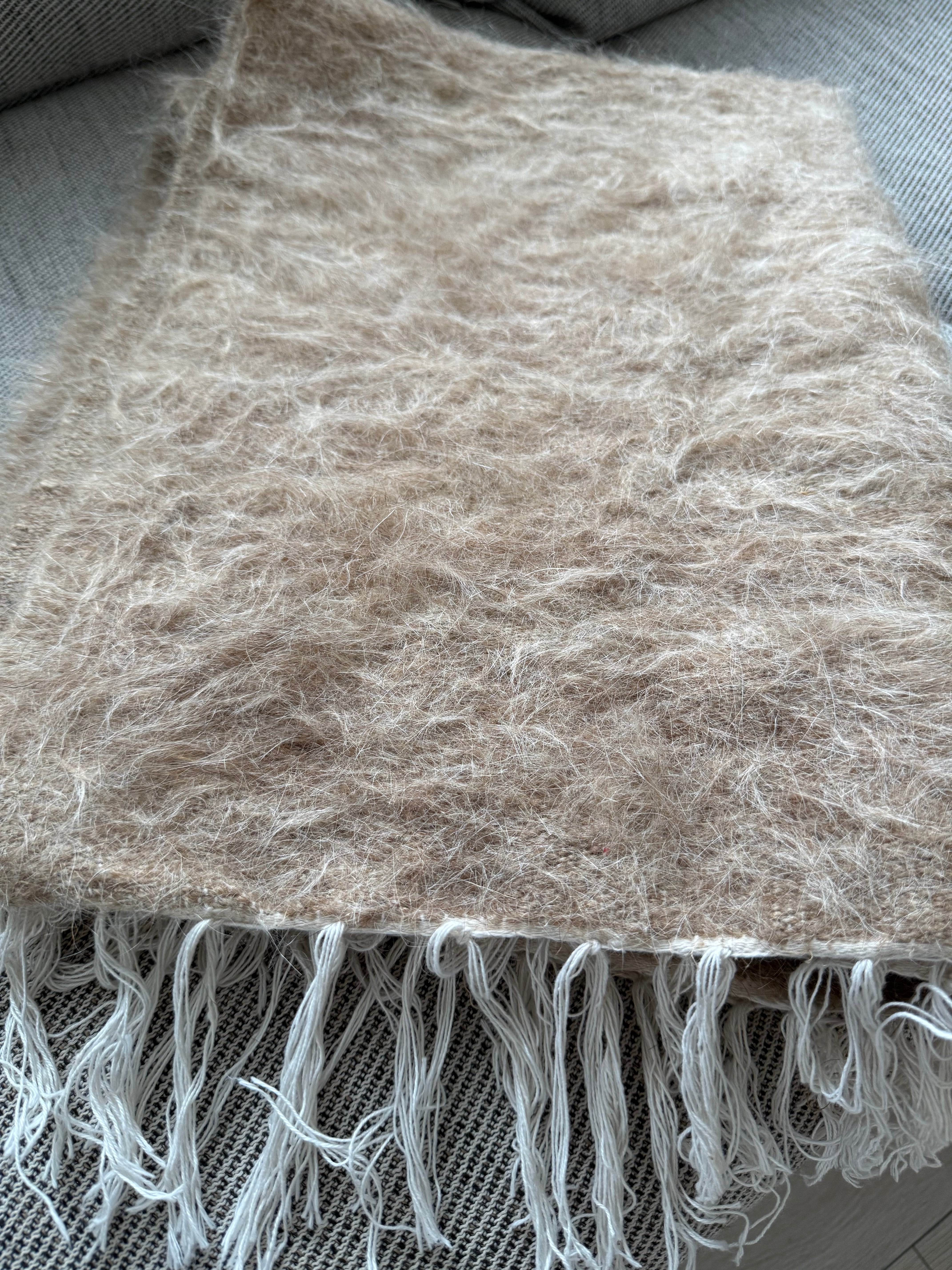 山羊の毛そのままの色を生かし、一切染めずに織られているバッターニエは、クリーム、黒、茶色、キャメル、グレーがメインの色合いです。