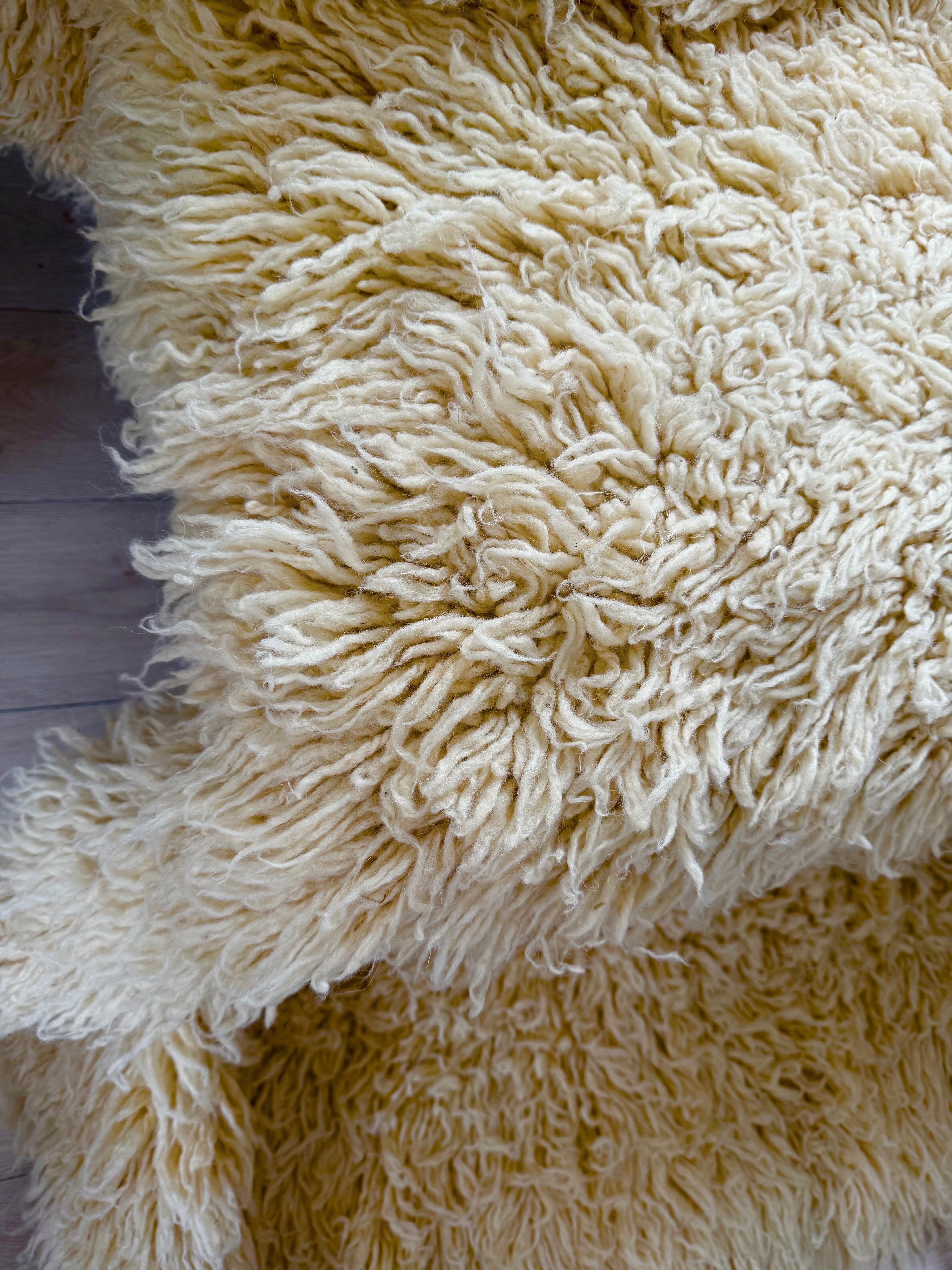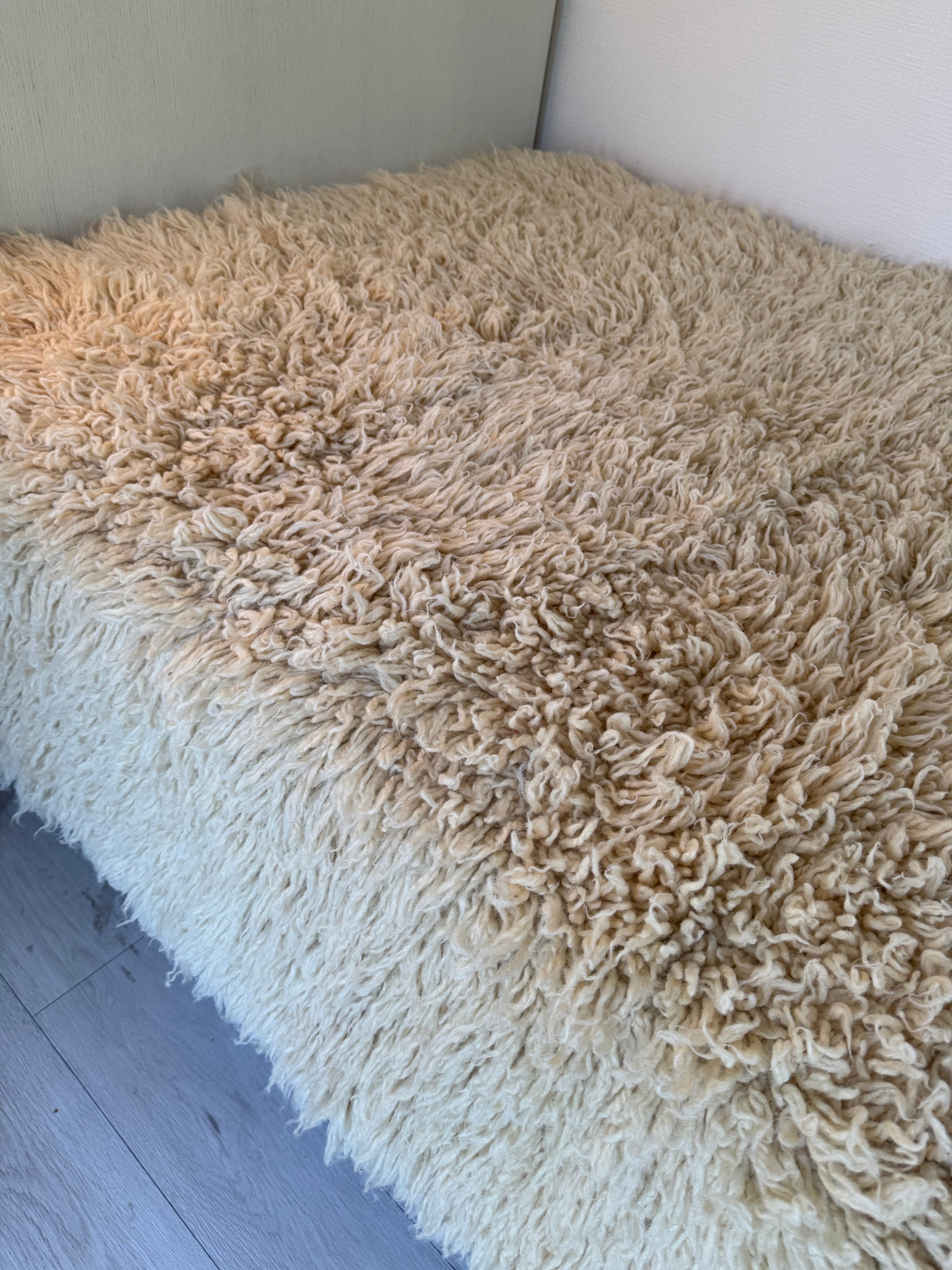 2人がけのソファや、セミダブルサイズのベッドにぴったり。もちろん床に敷いても。