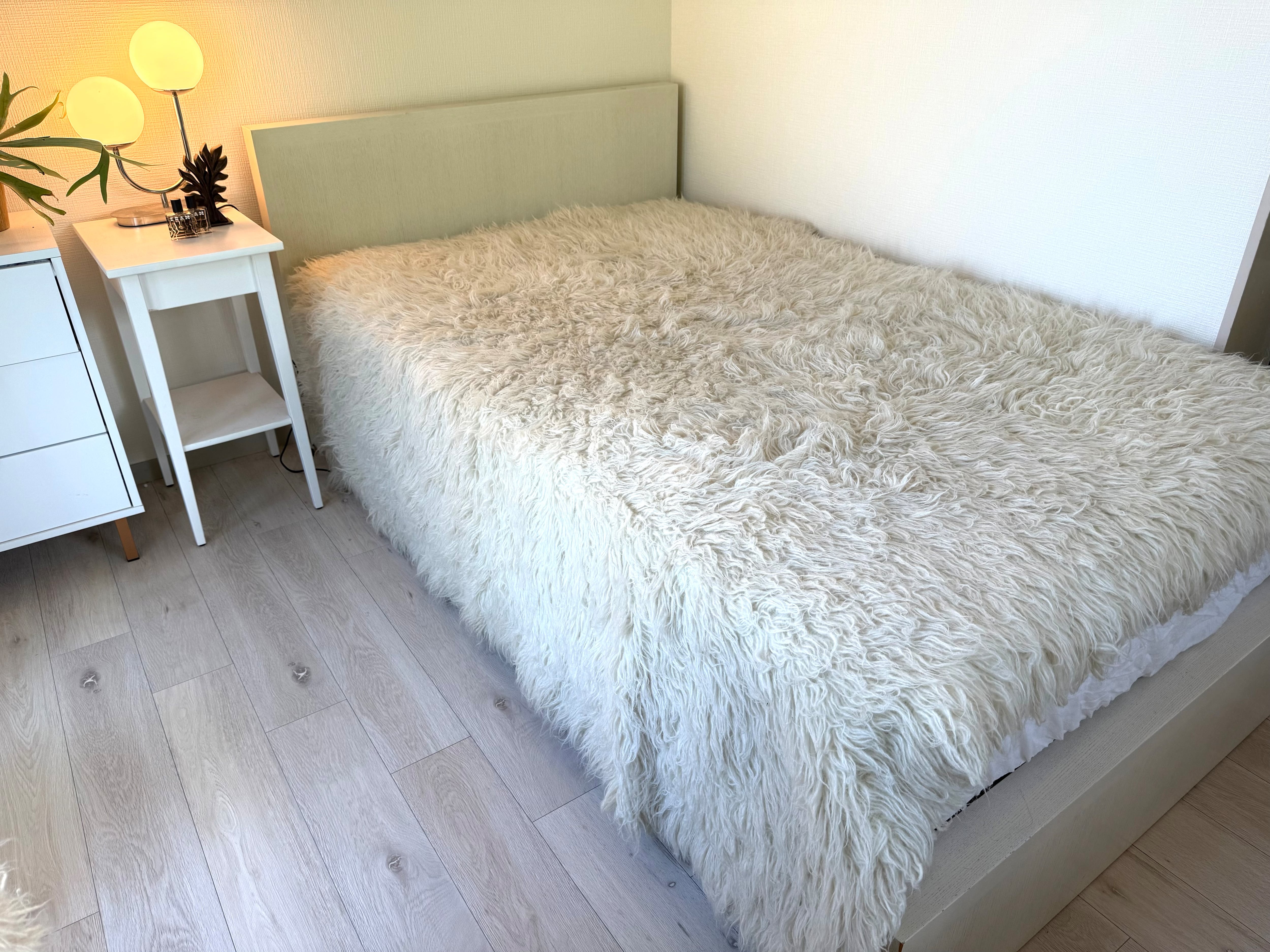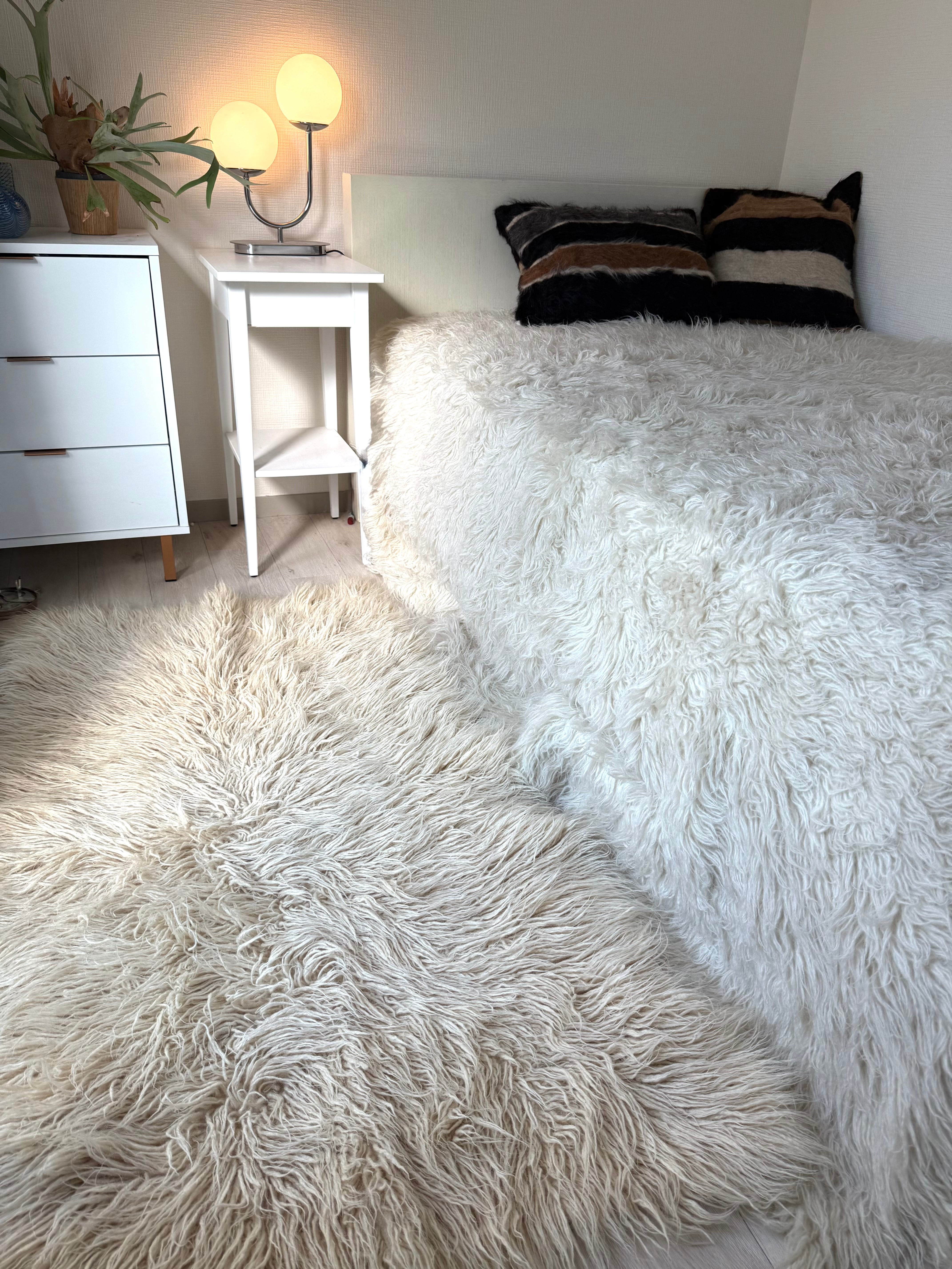 この正方形タイプは使いやすく、ベッドにかけるのはもちろん、コーヒーテーブルの下に敷いたりしてもよく似合います。