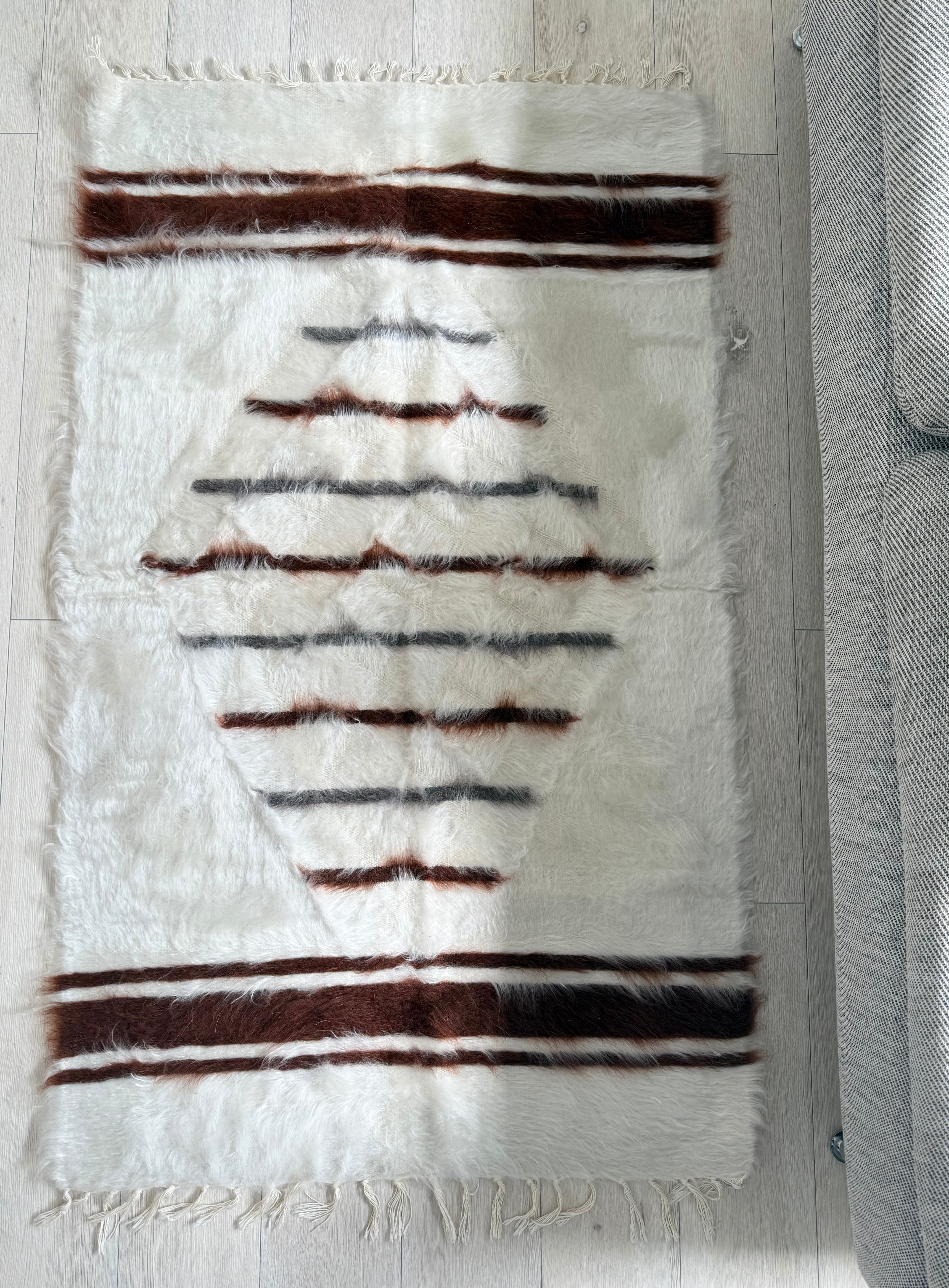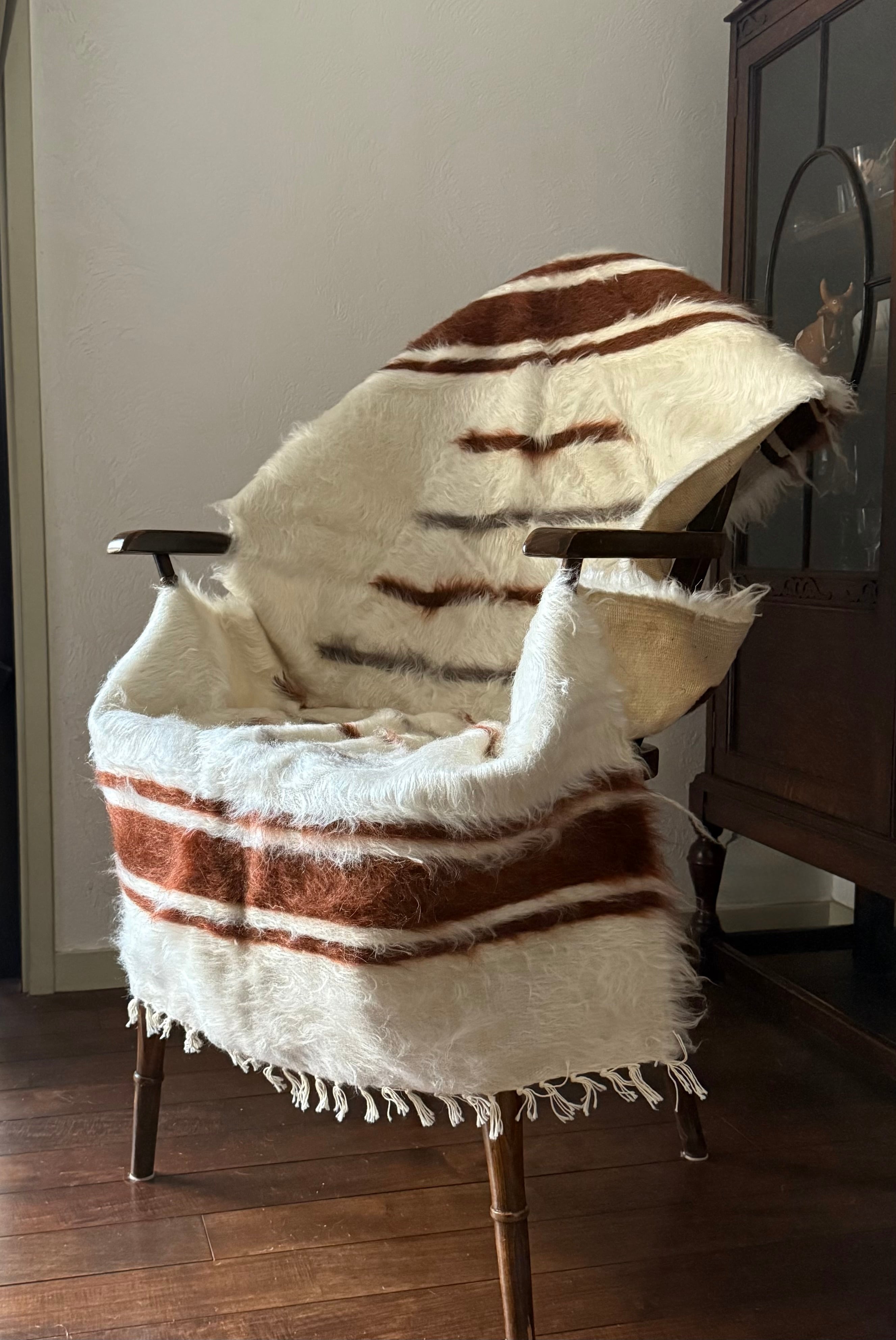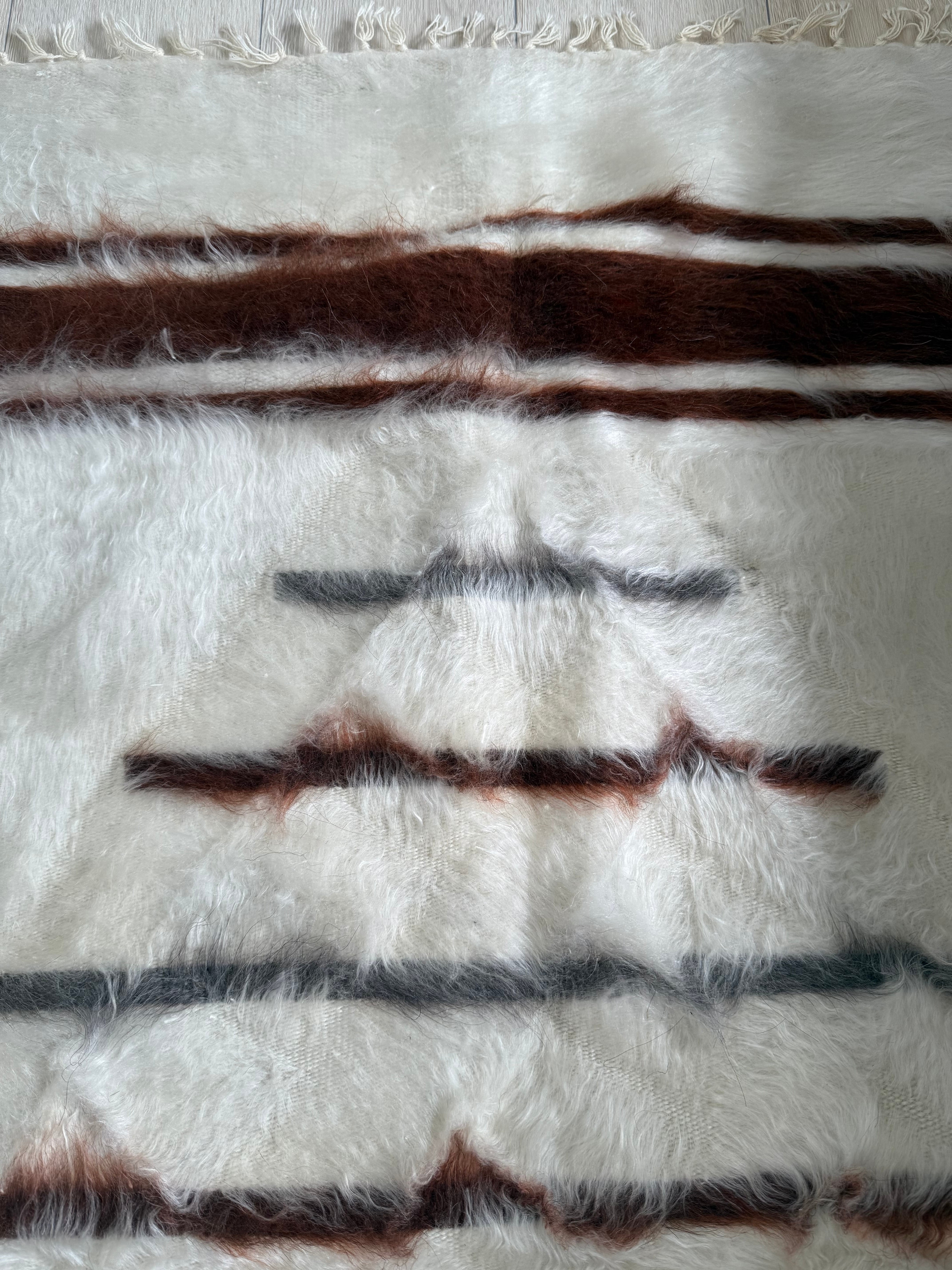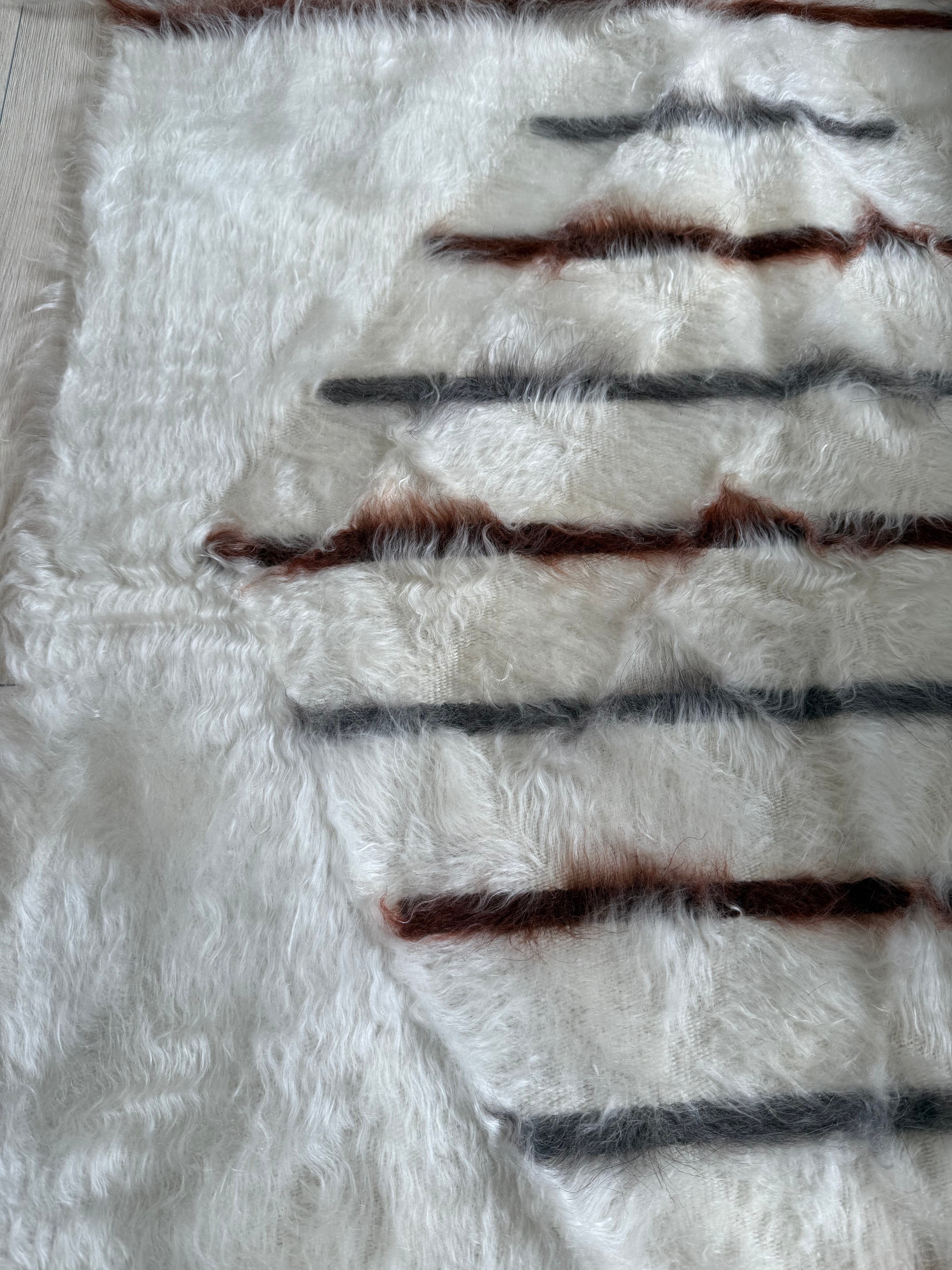 アンゴラ山羊の毛量はヴィンテージに比べて少ないのですが、布自体がしっかりとしていて、ラグとして気軽にどこにでも使いやすいものになります。