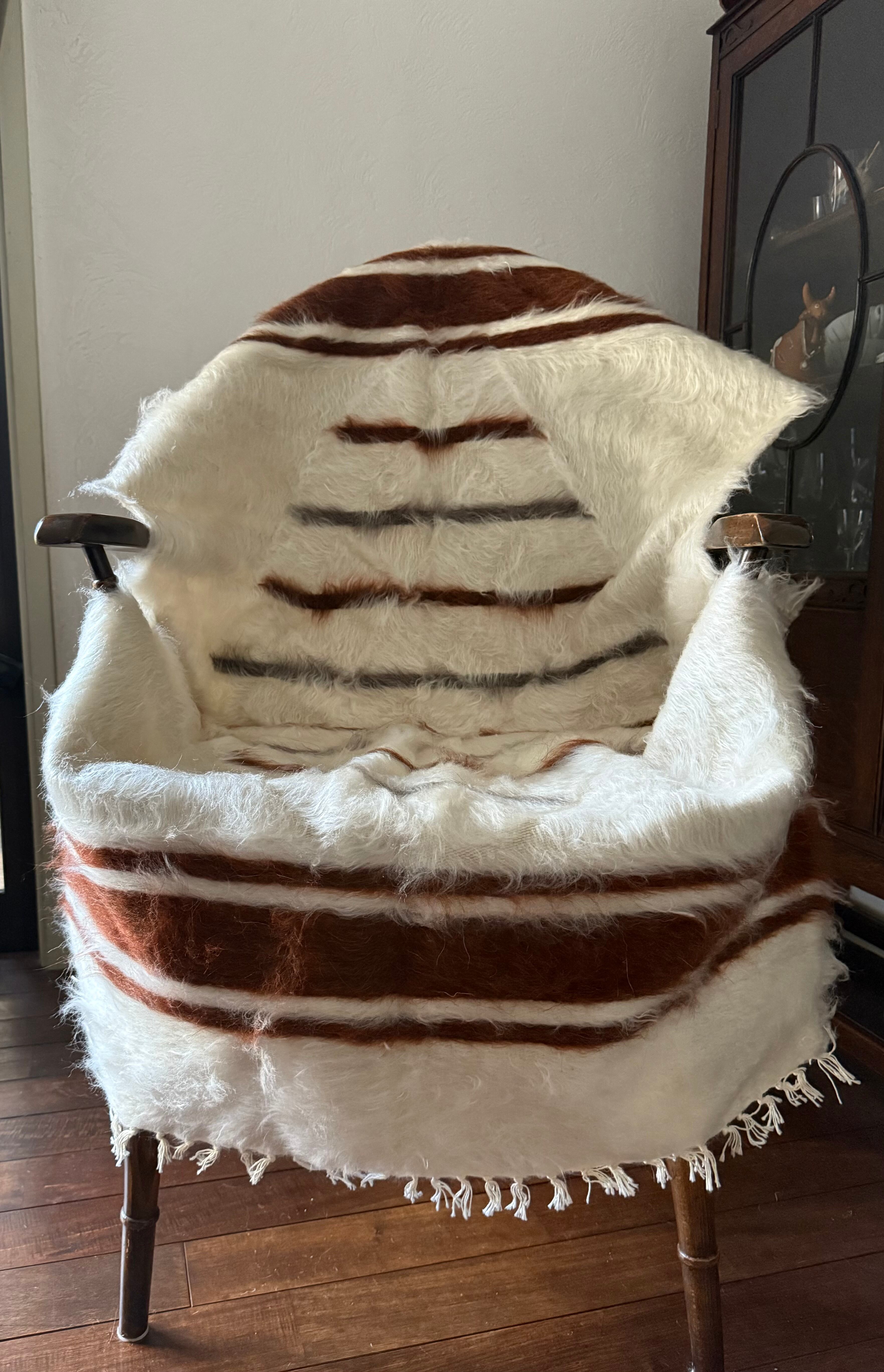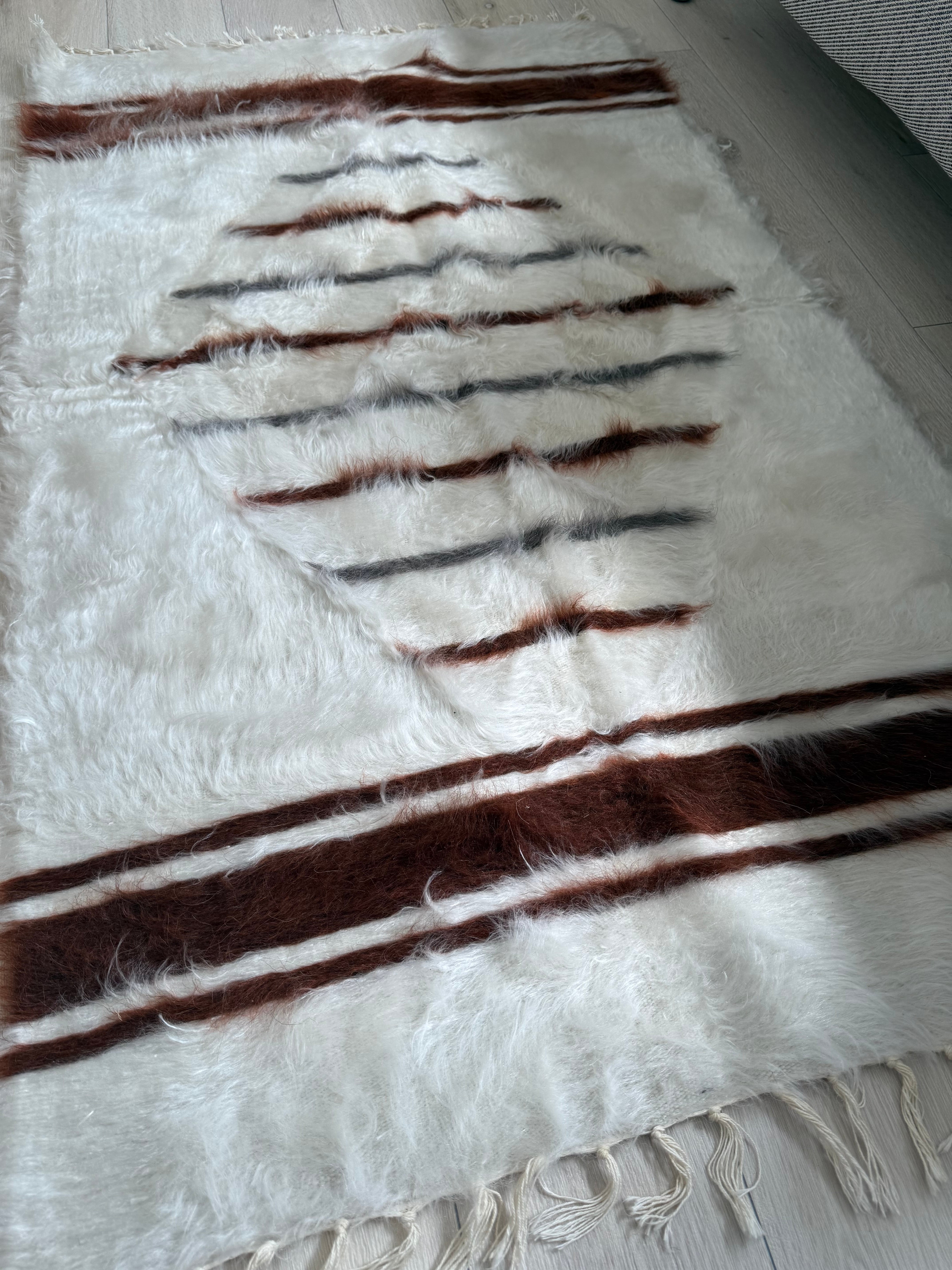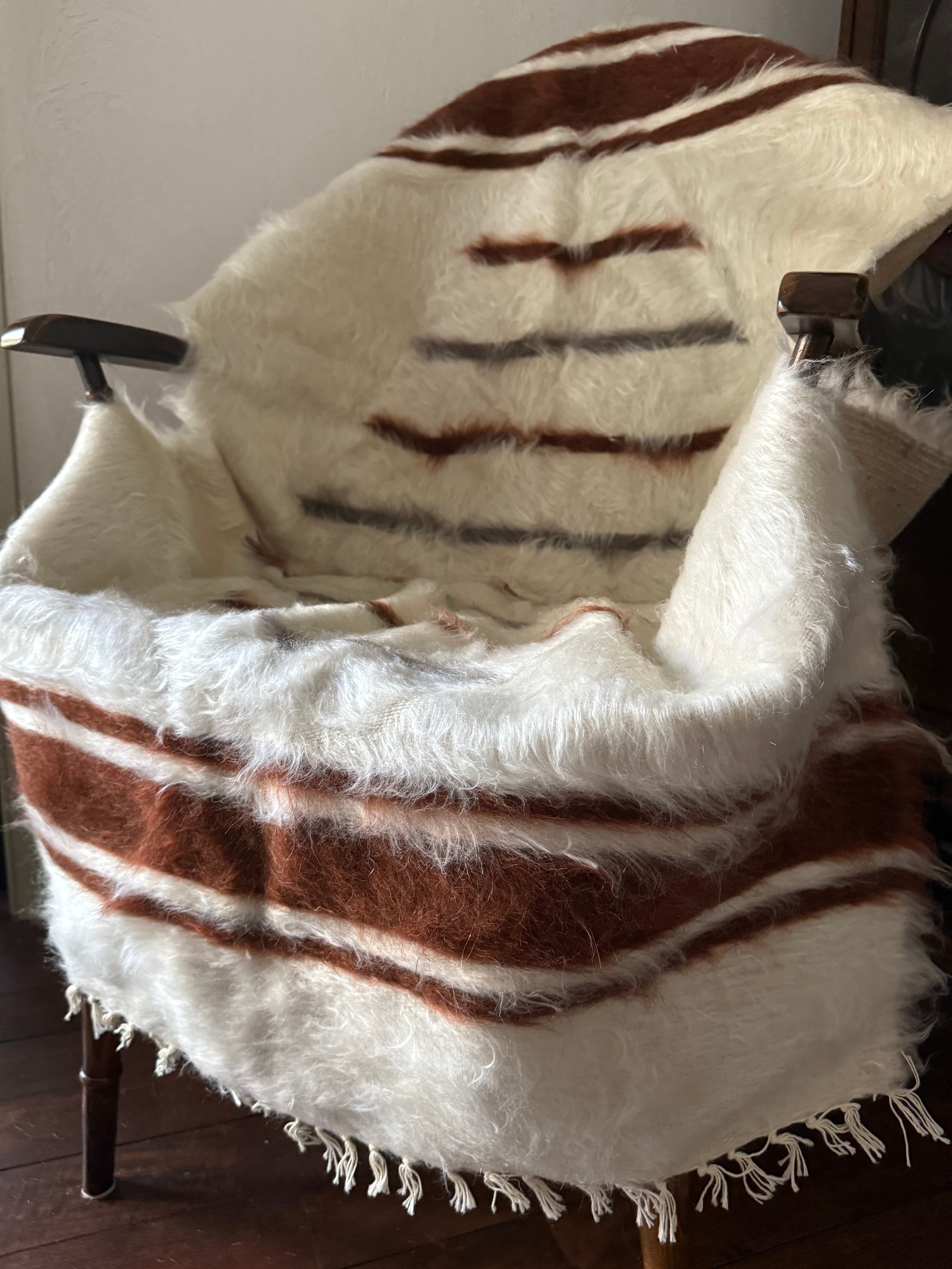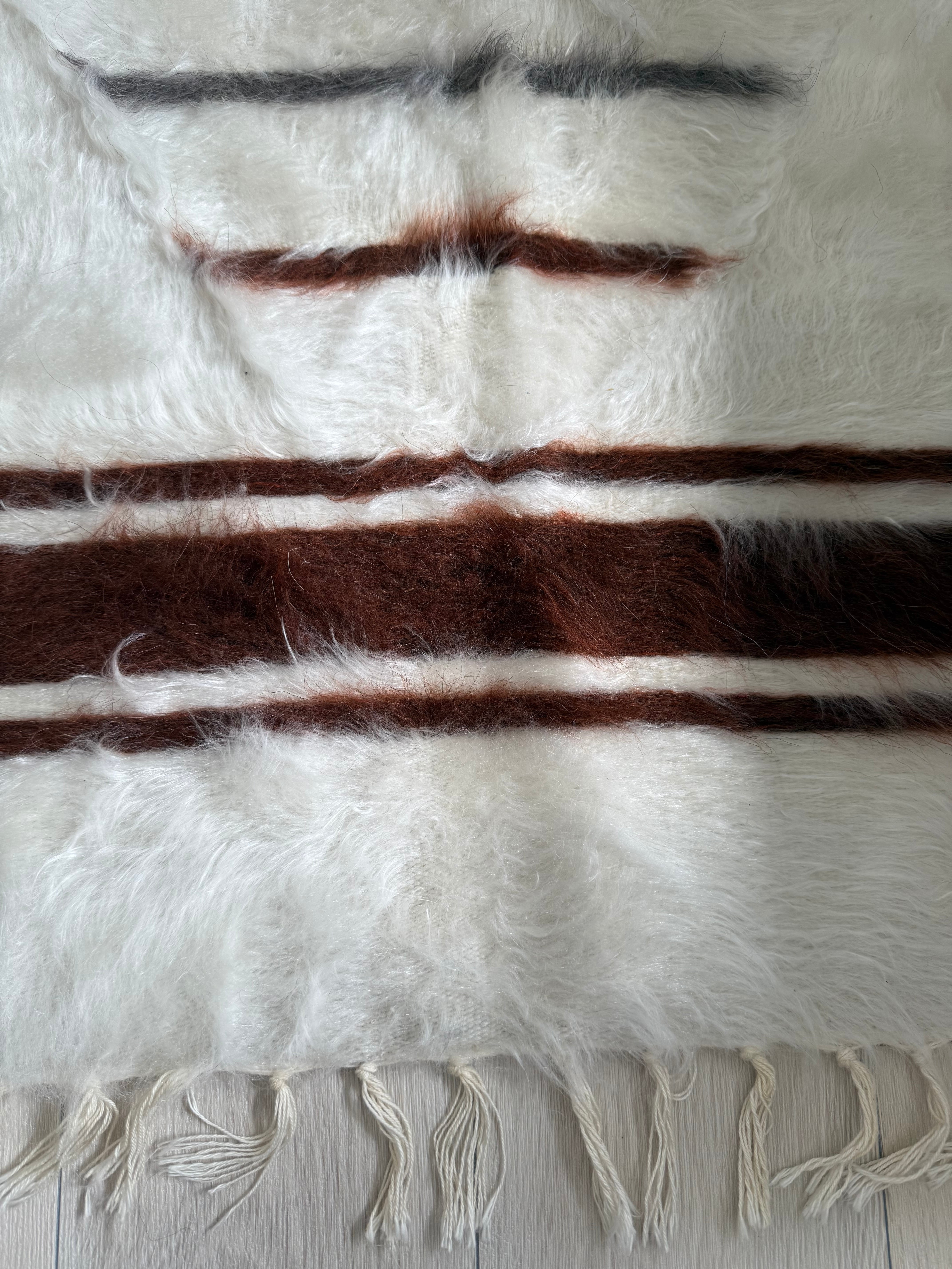アンゴラ山羊の毛量はヴィンテージに比べて少ないのですが、布自体がしっかりとしていて、ラグとして気軽にどこにでも使いやすいものになります。