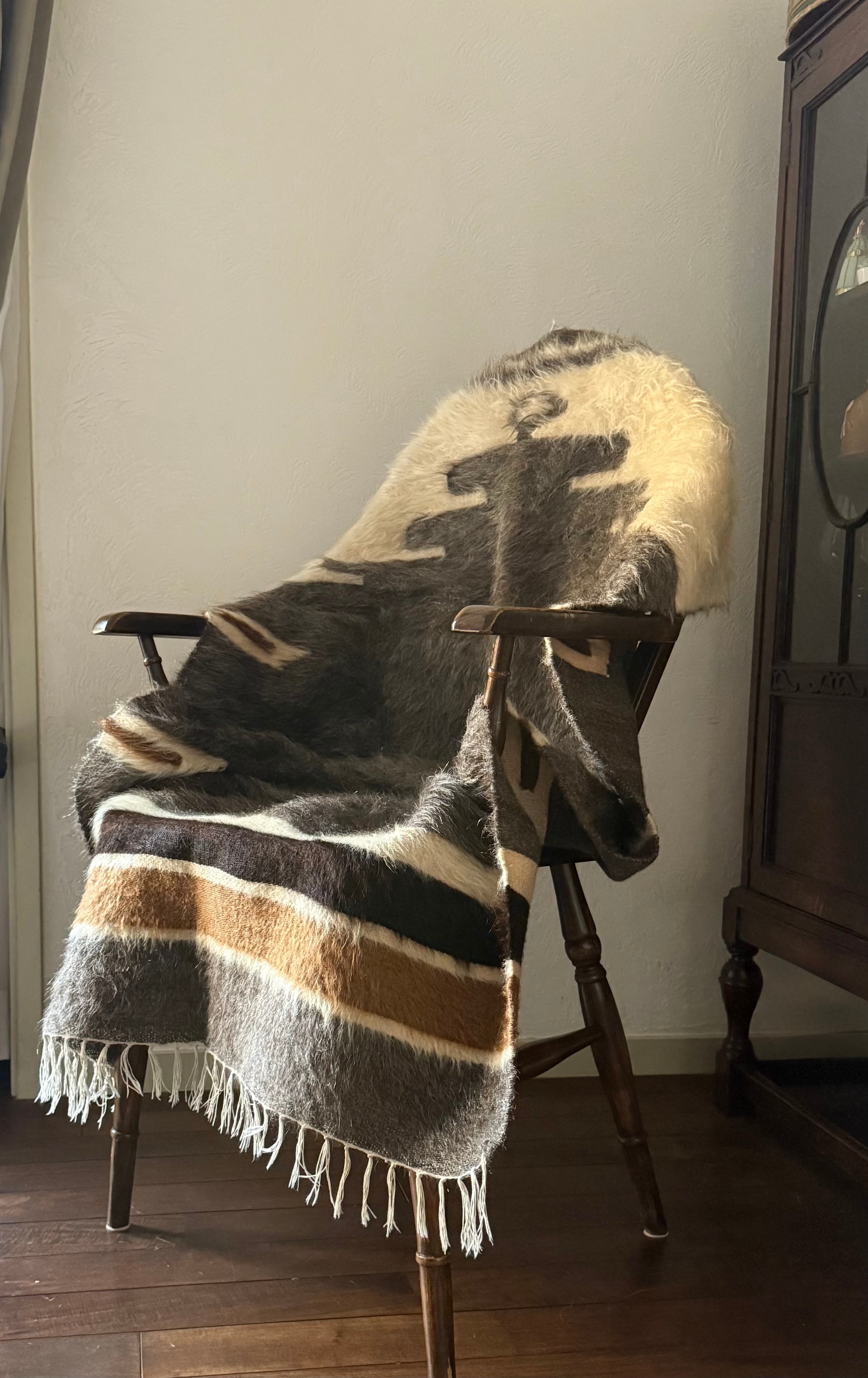 山羊の毛そのままの色を生かし、一切染めずに織られているバッターニエは、クリーム、黒、茶色、キャメル、グレーがメインの色合いです。