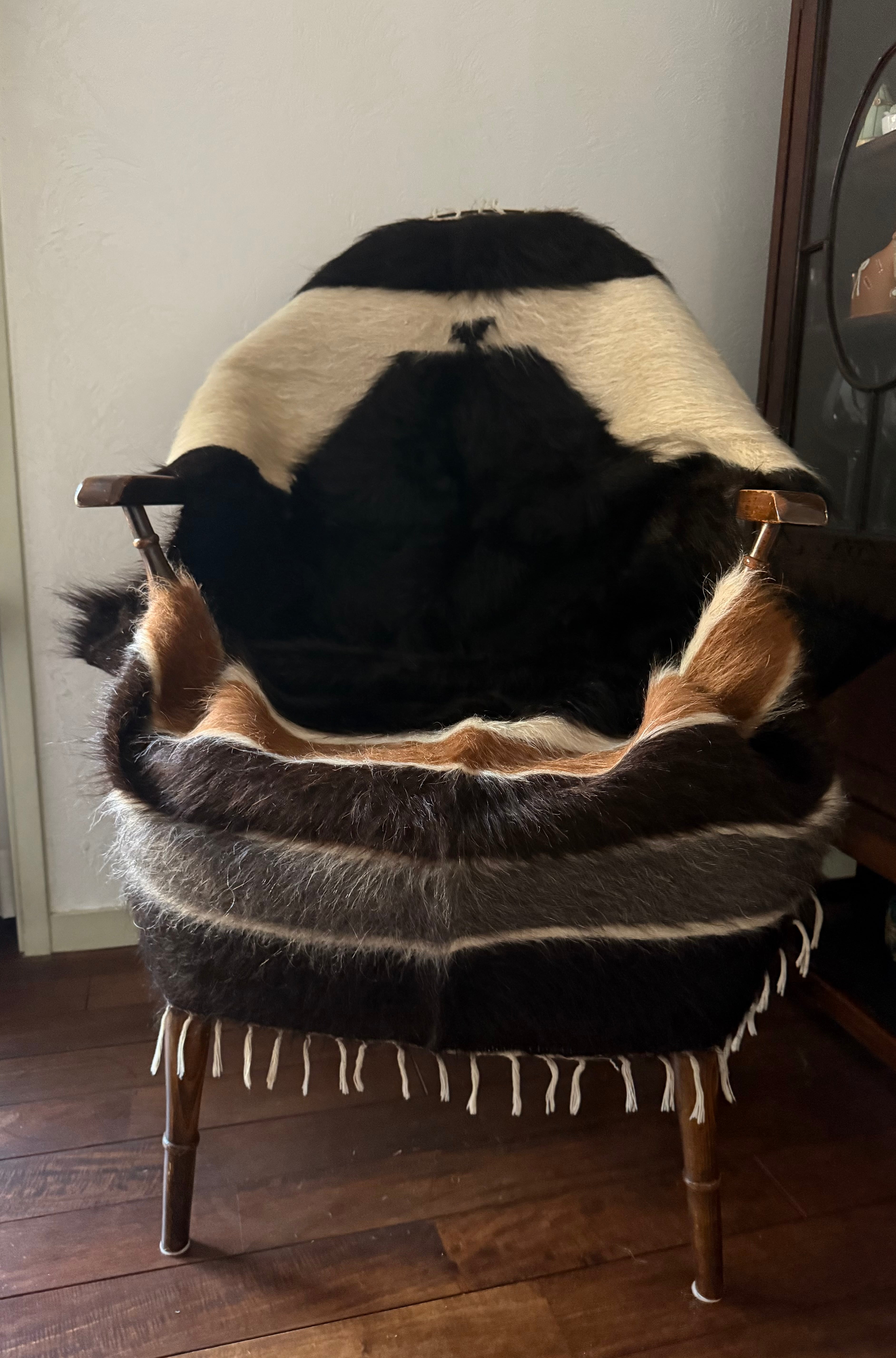 ※こちらは黒の中でも毛が柔らかめではありますが、夏の肌着や薄着で座ると、少しちくちく感を感じる方もいらっしゃるかもしれません。