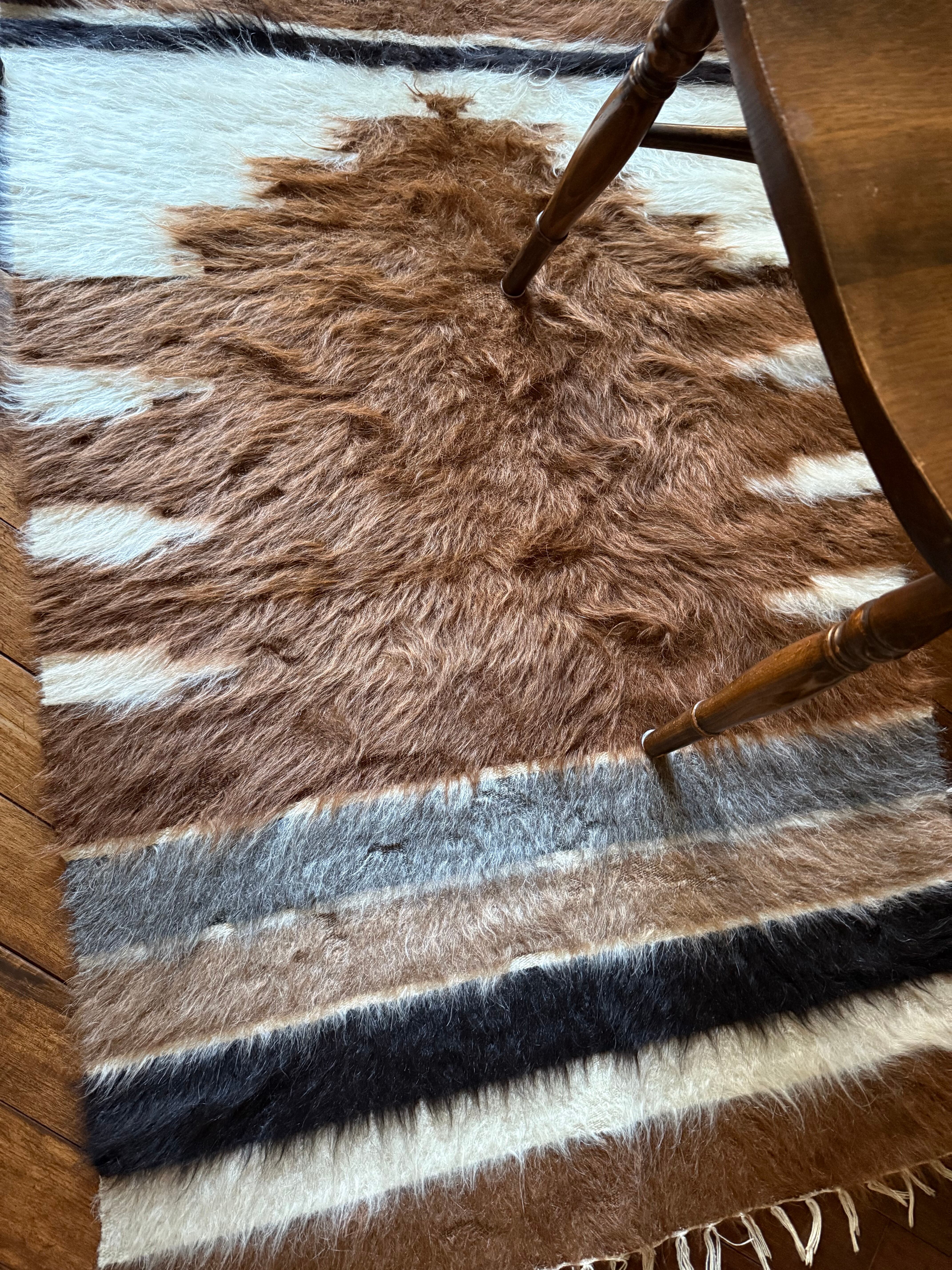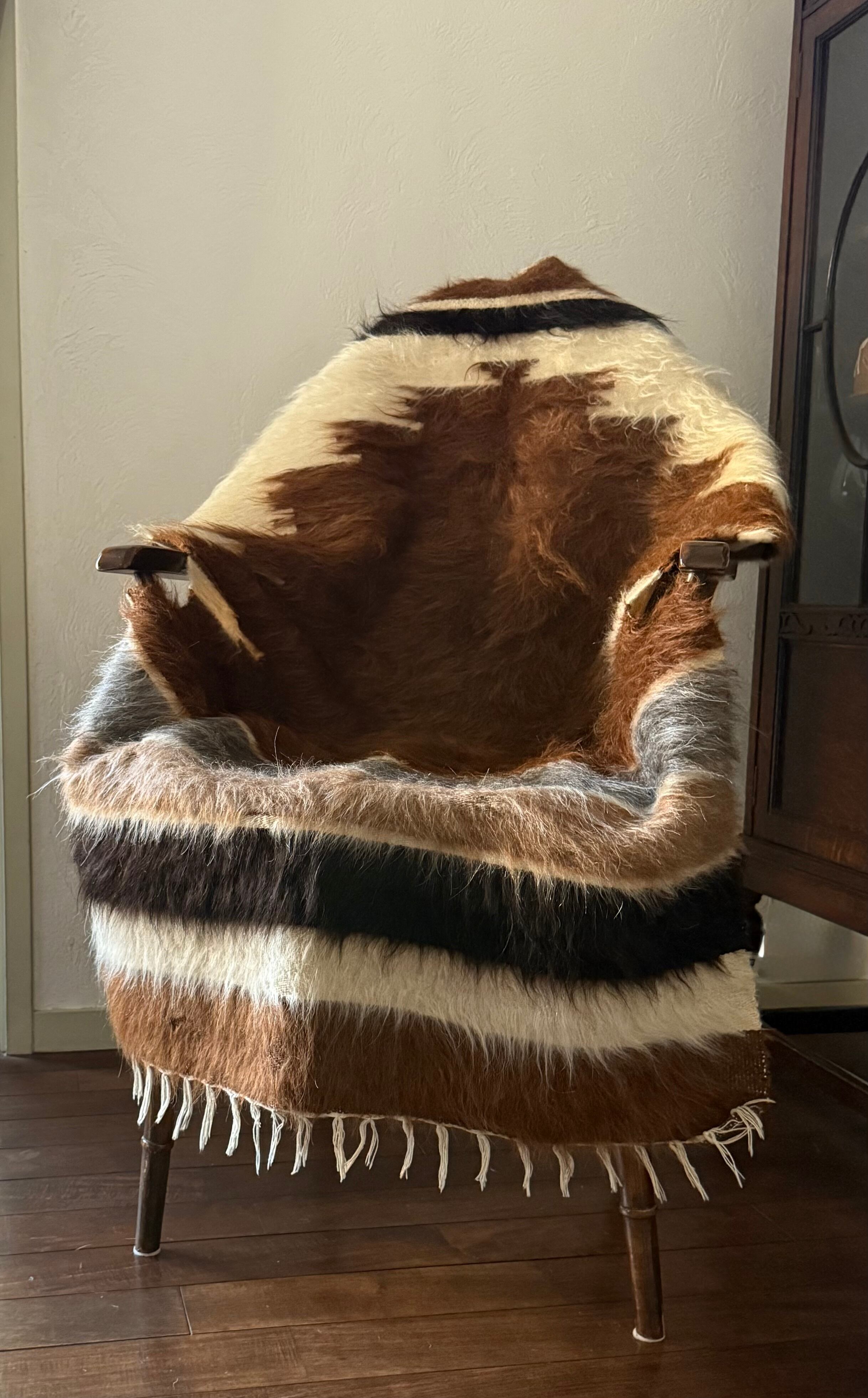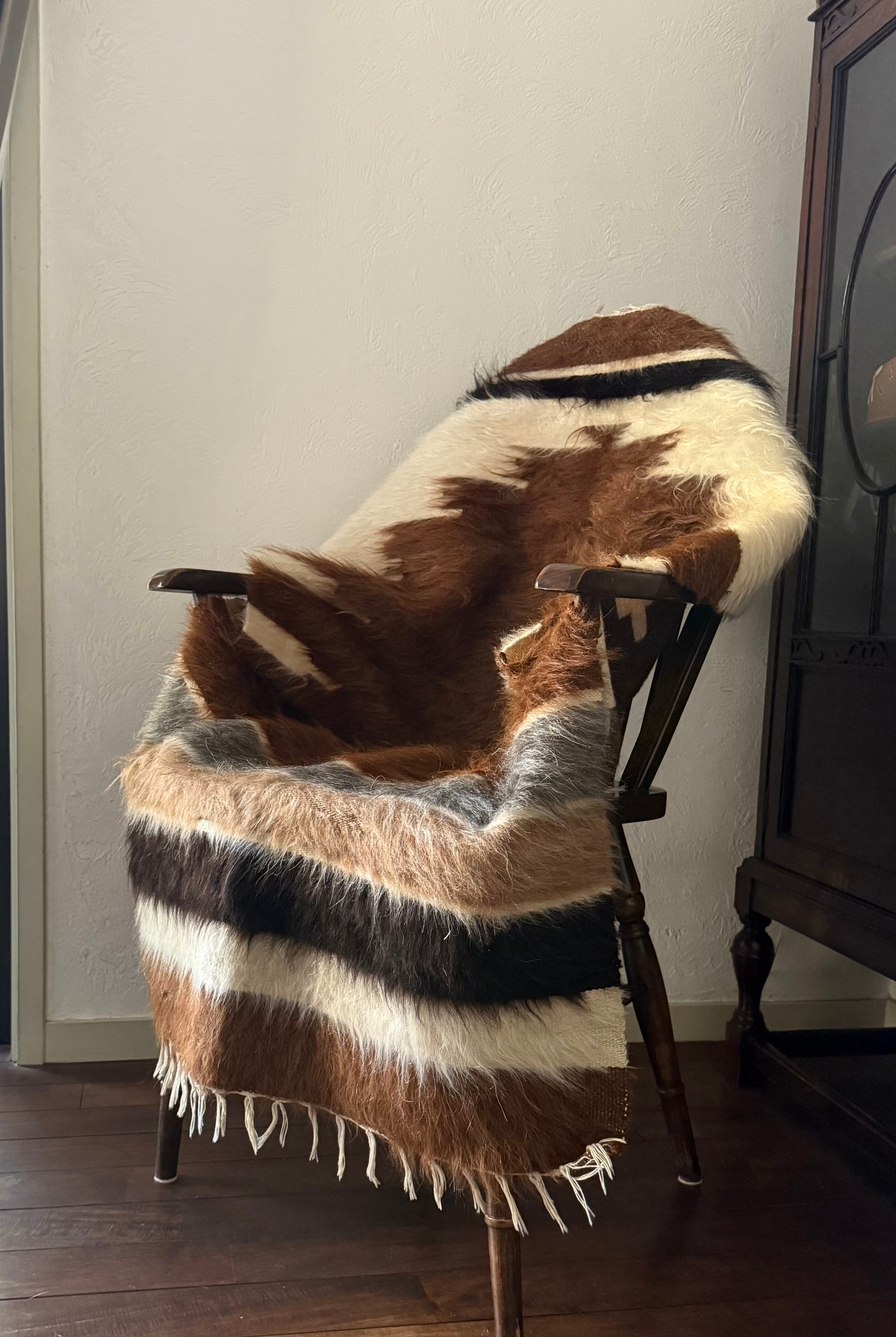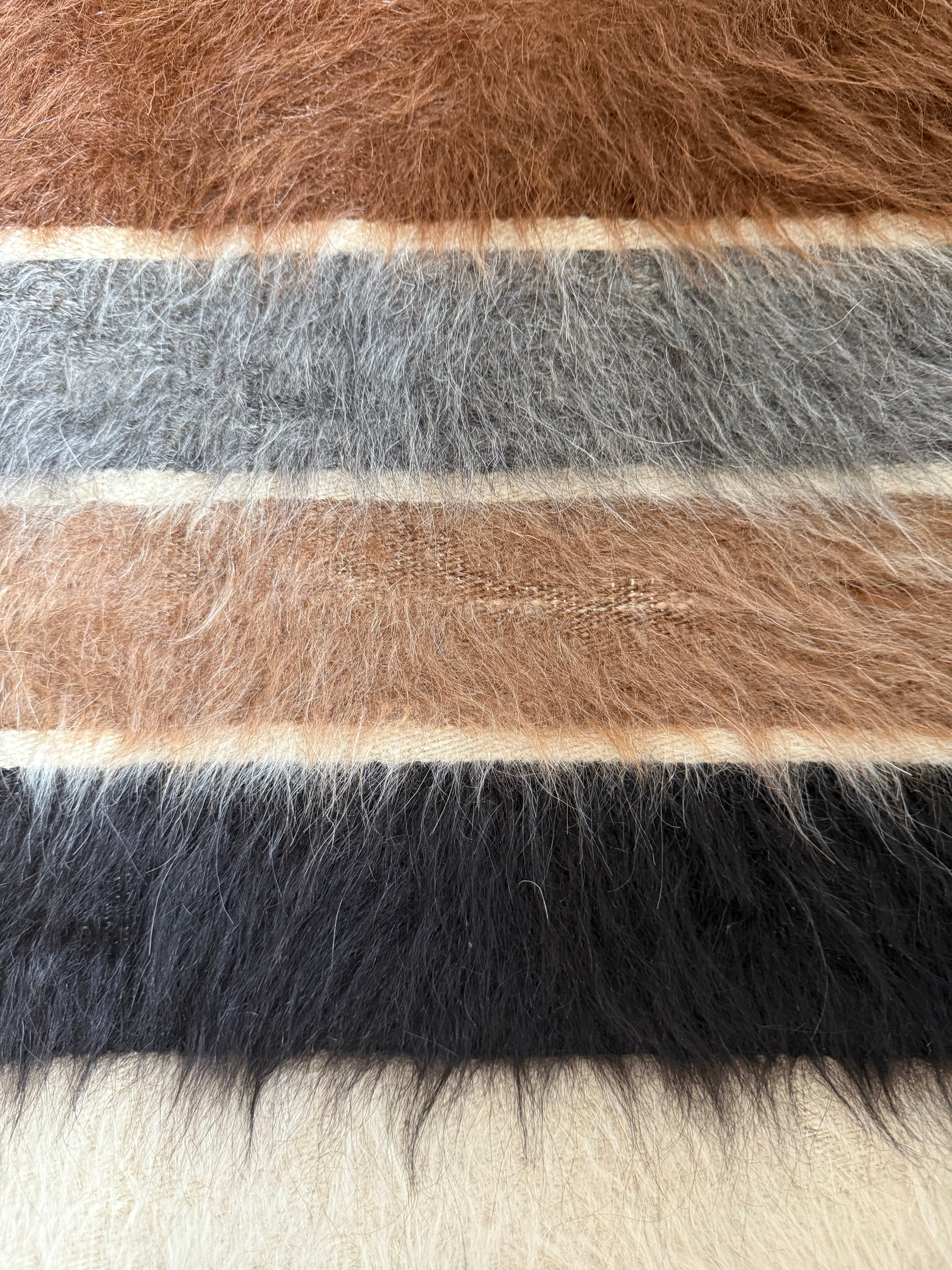山羊の毛そのままの色を生かし、一切染めずに織られているバッターニエは、クリーム、黒、茶色、キャメル、グレーがメインの色合いです。