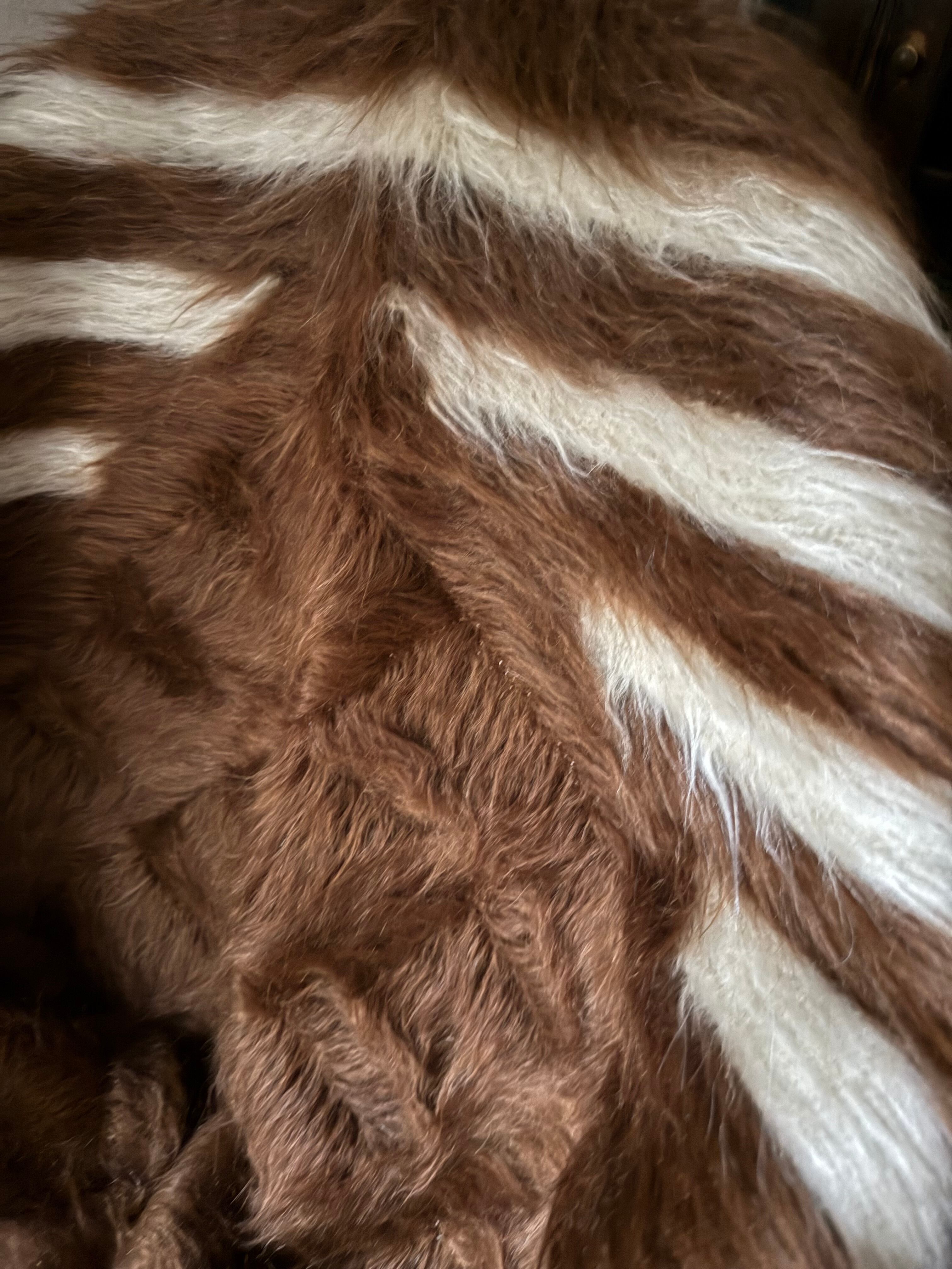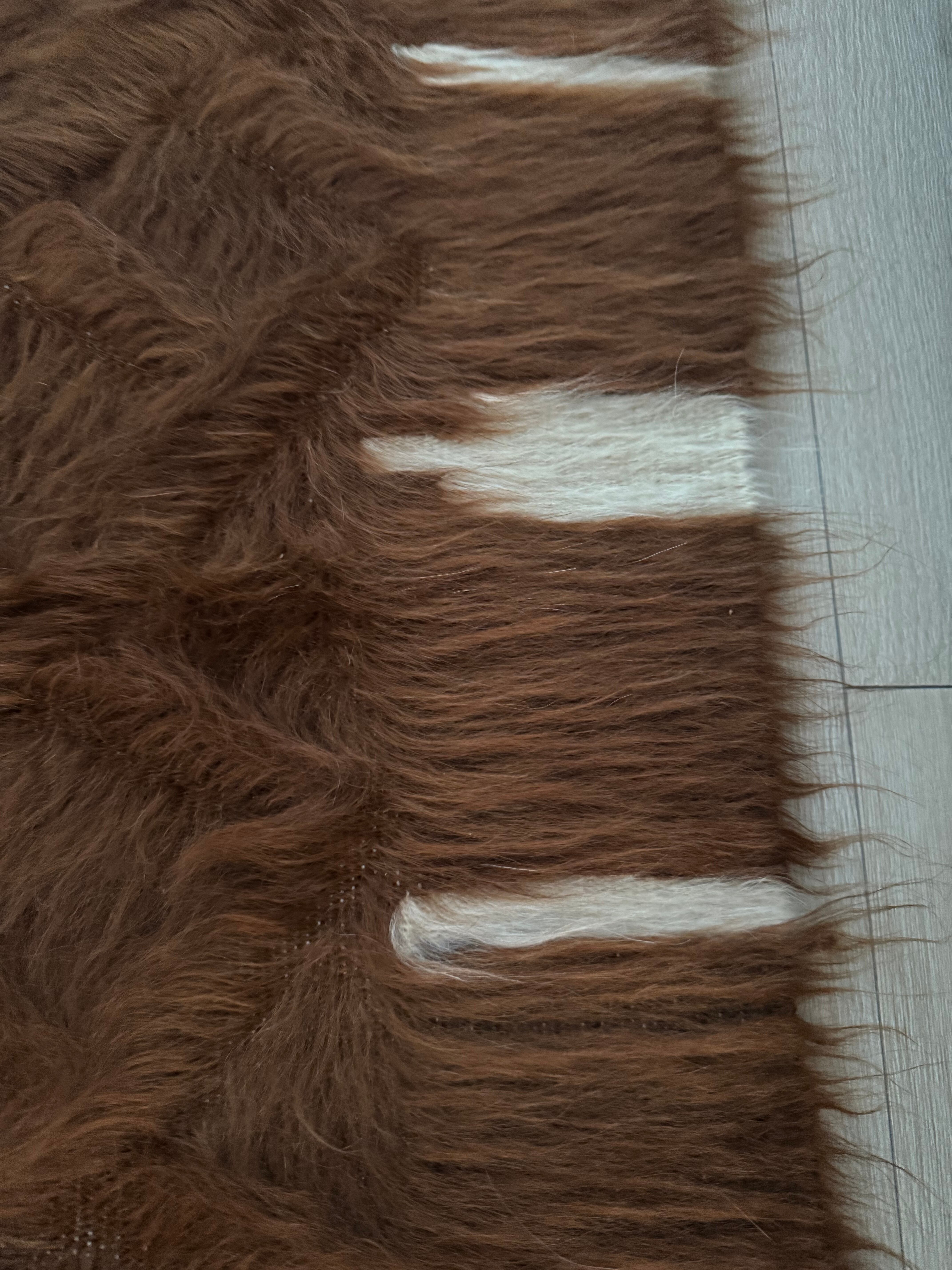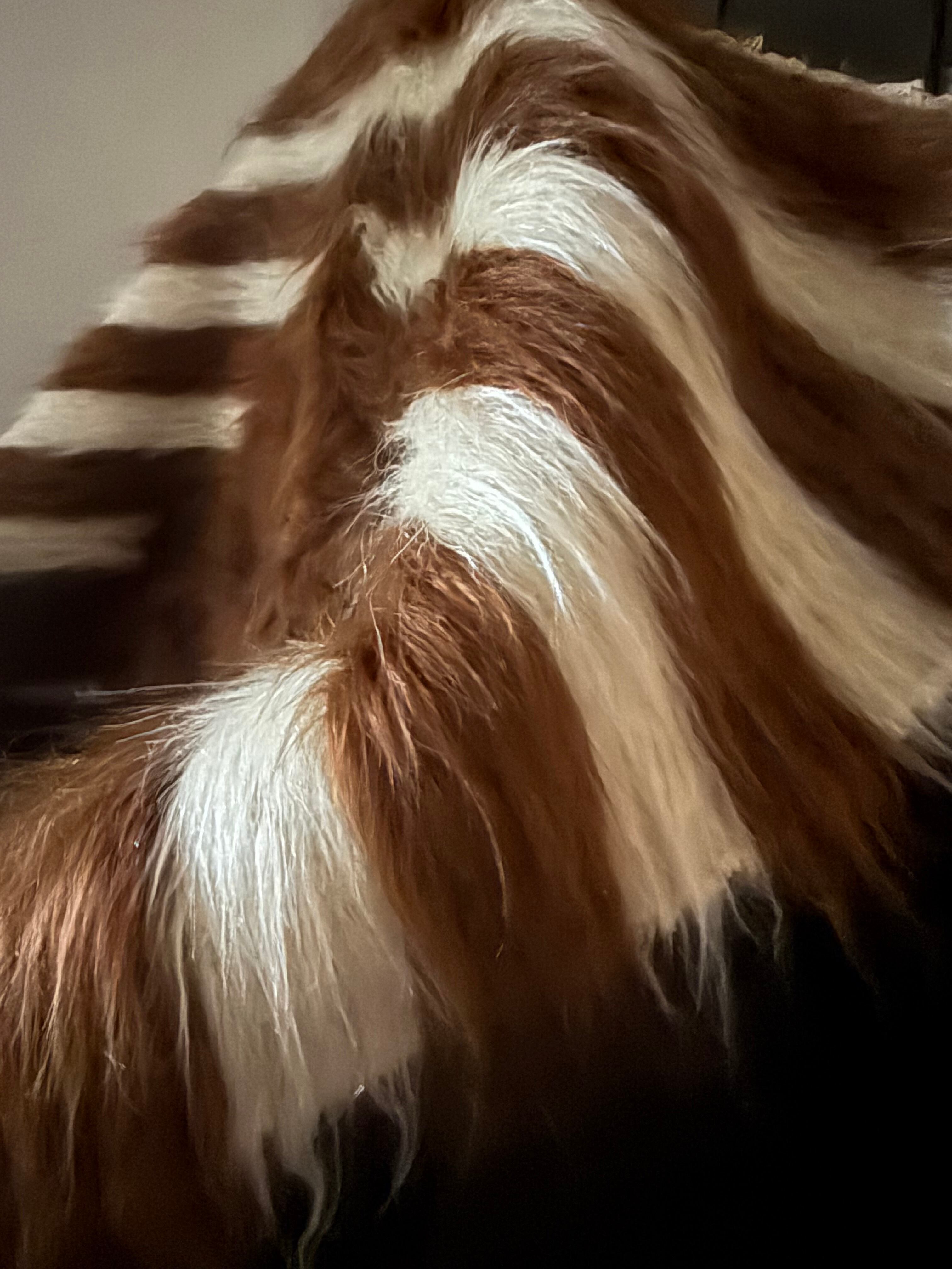 毛足も長く、波打つようにホワイトとブラウンの毛が外側に向かって流れています。