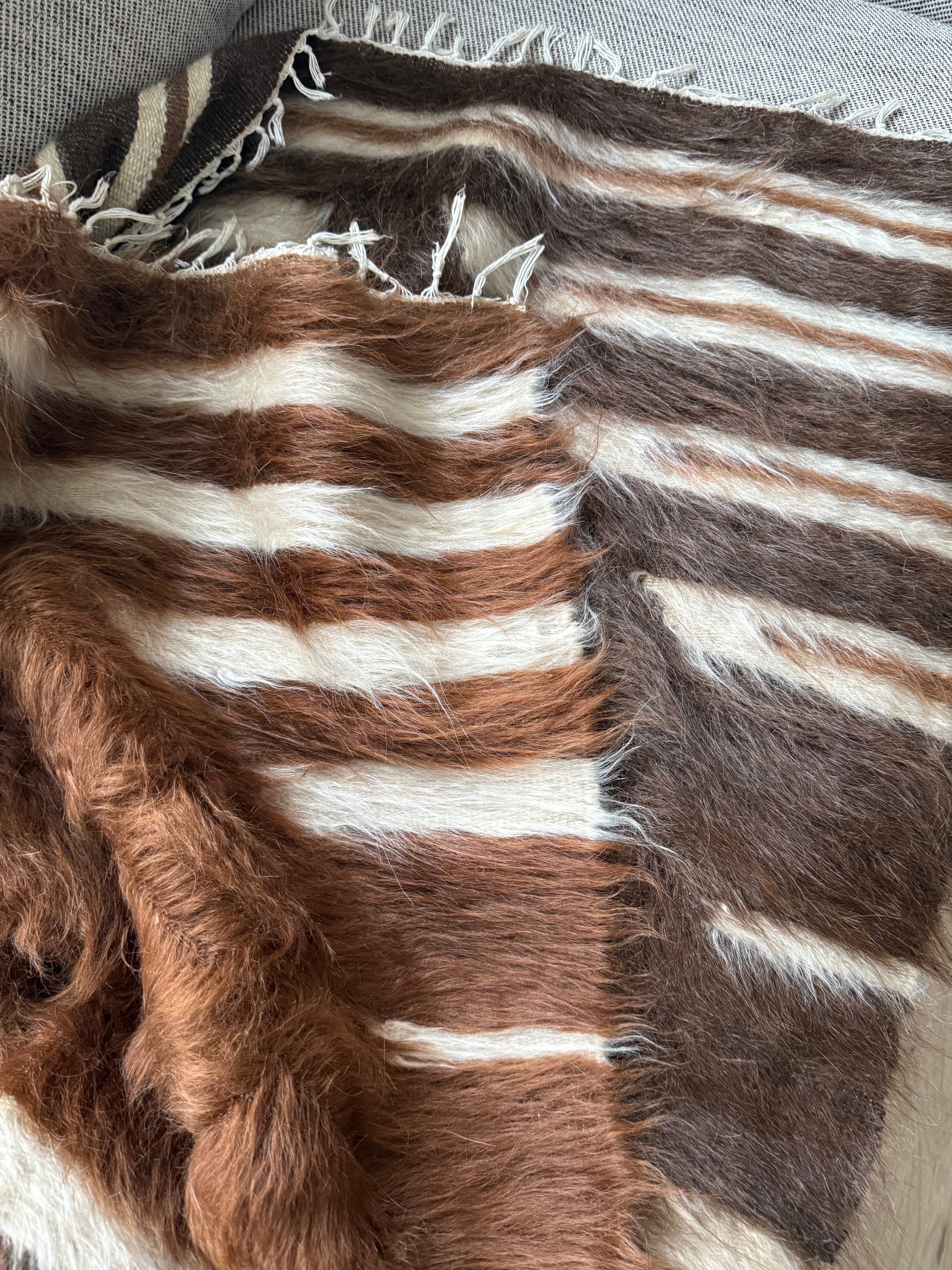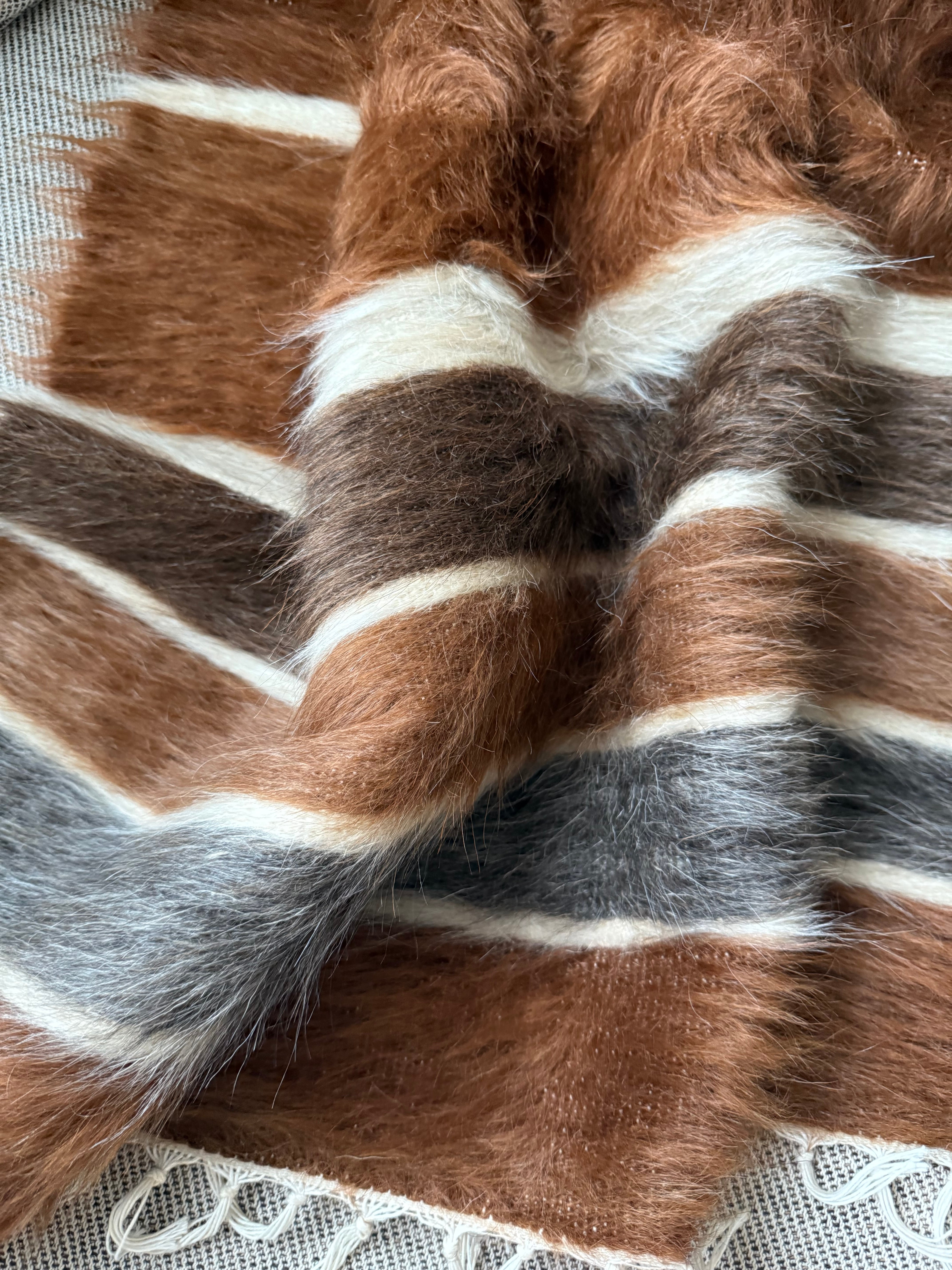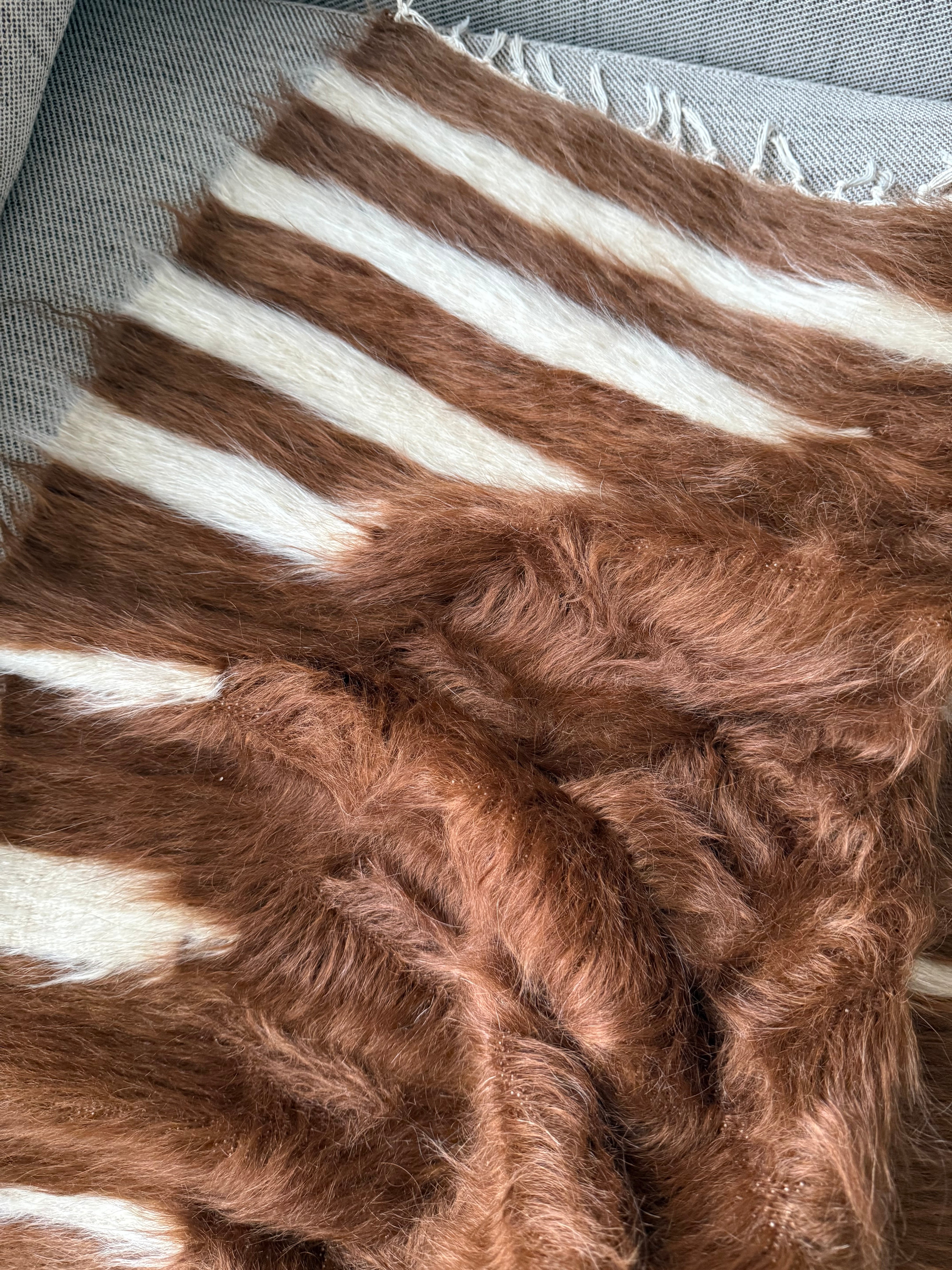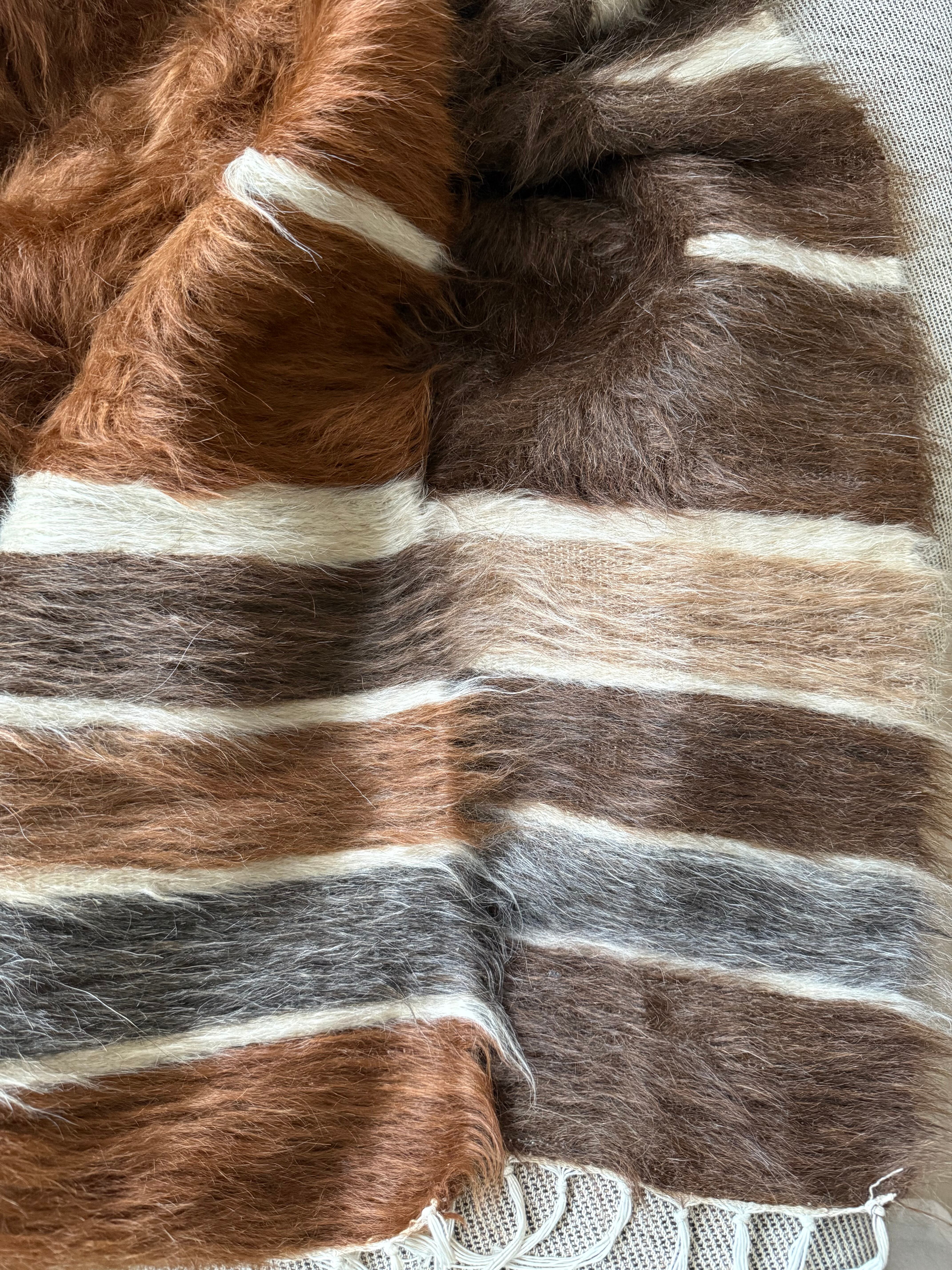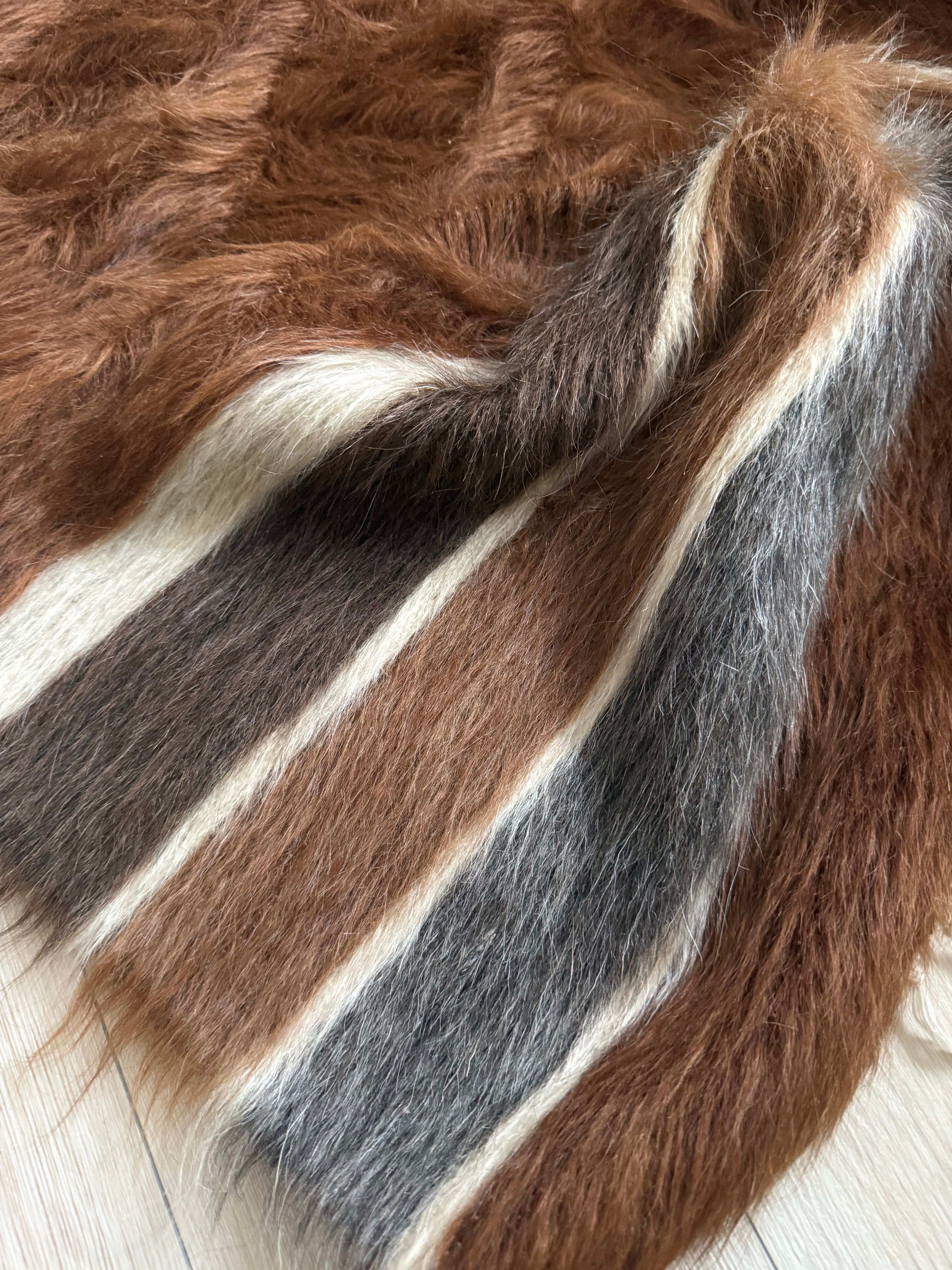 こちらは毛足が長く、厚みがありますが、非常にしなやかで、冬場などはこれを膝にかけてもとても心地よいと思います。