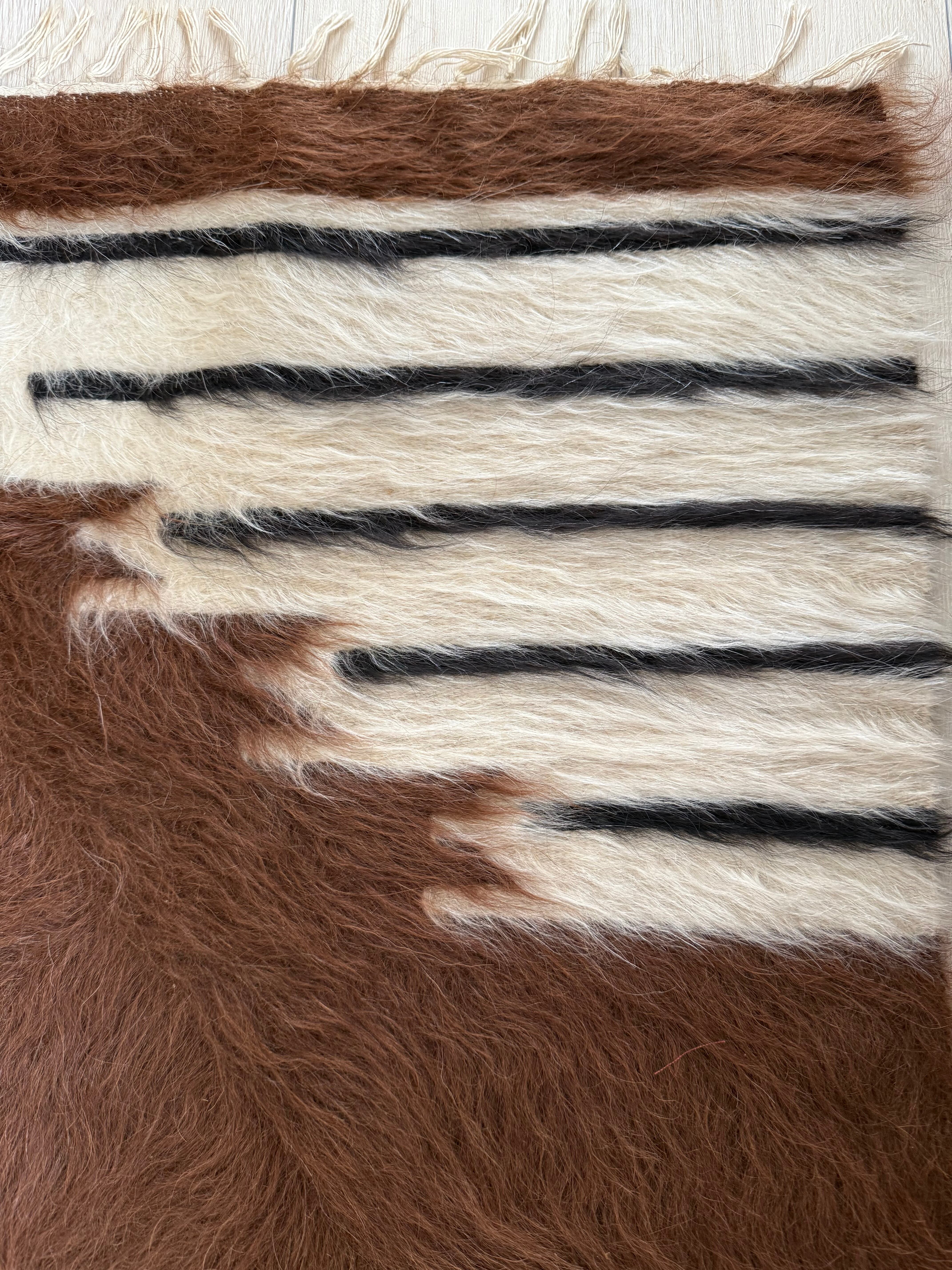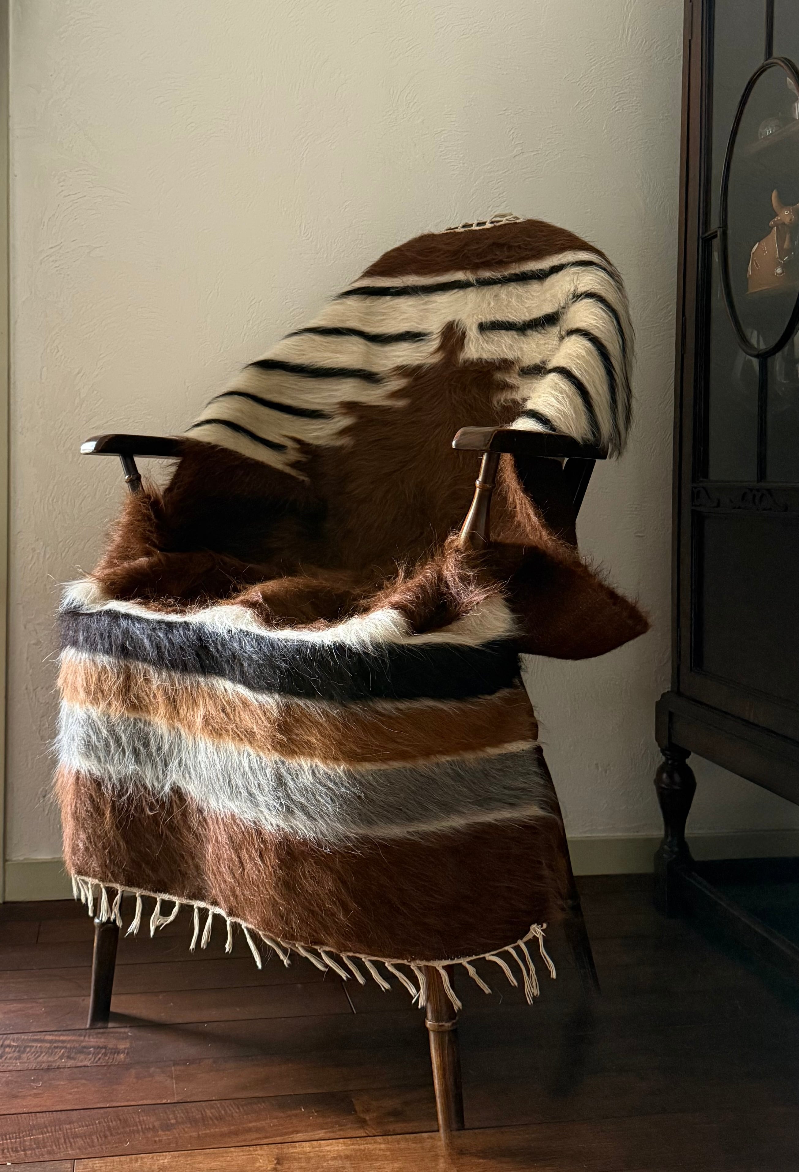 山羊の毛そのままの色を生かし、一切染めずに織られているバッターニエは、クリーム、黒、茶色、キャメル、グレーがメインの色合いです。
