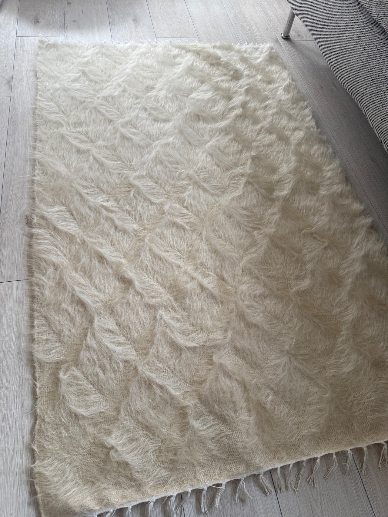 これをソファや椅子に敷くと艶々の美しい毛をついつい撫でてしまいそうです。