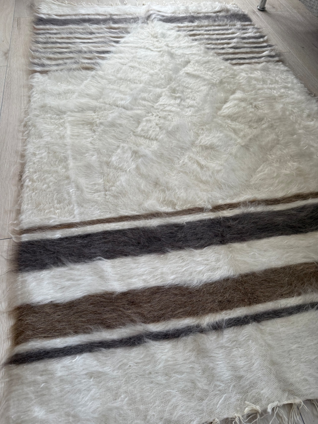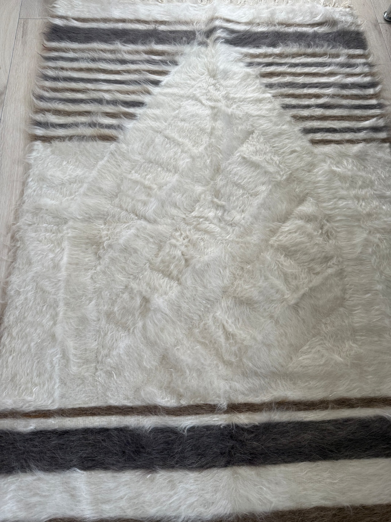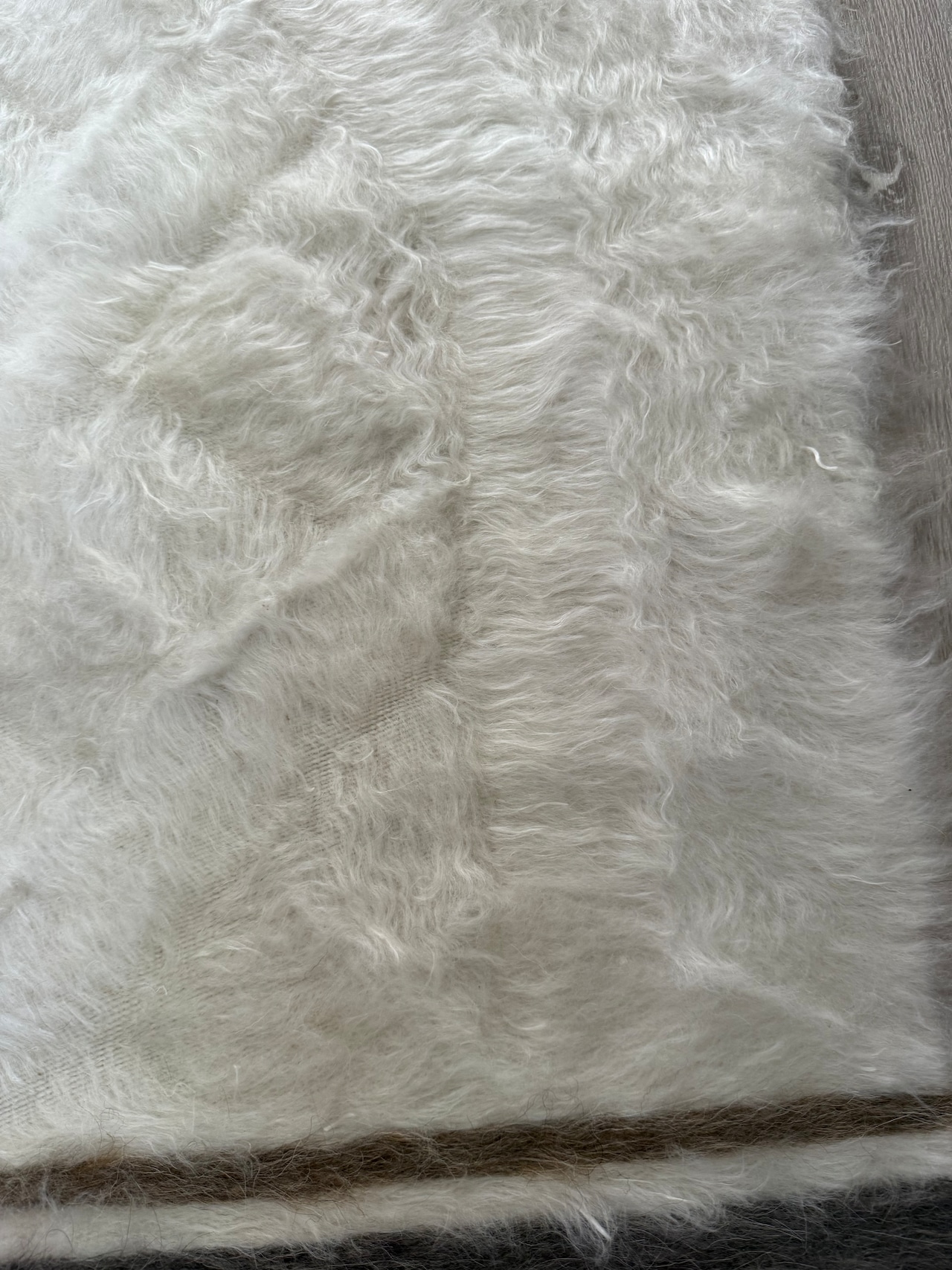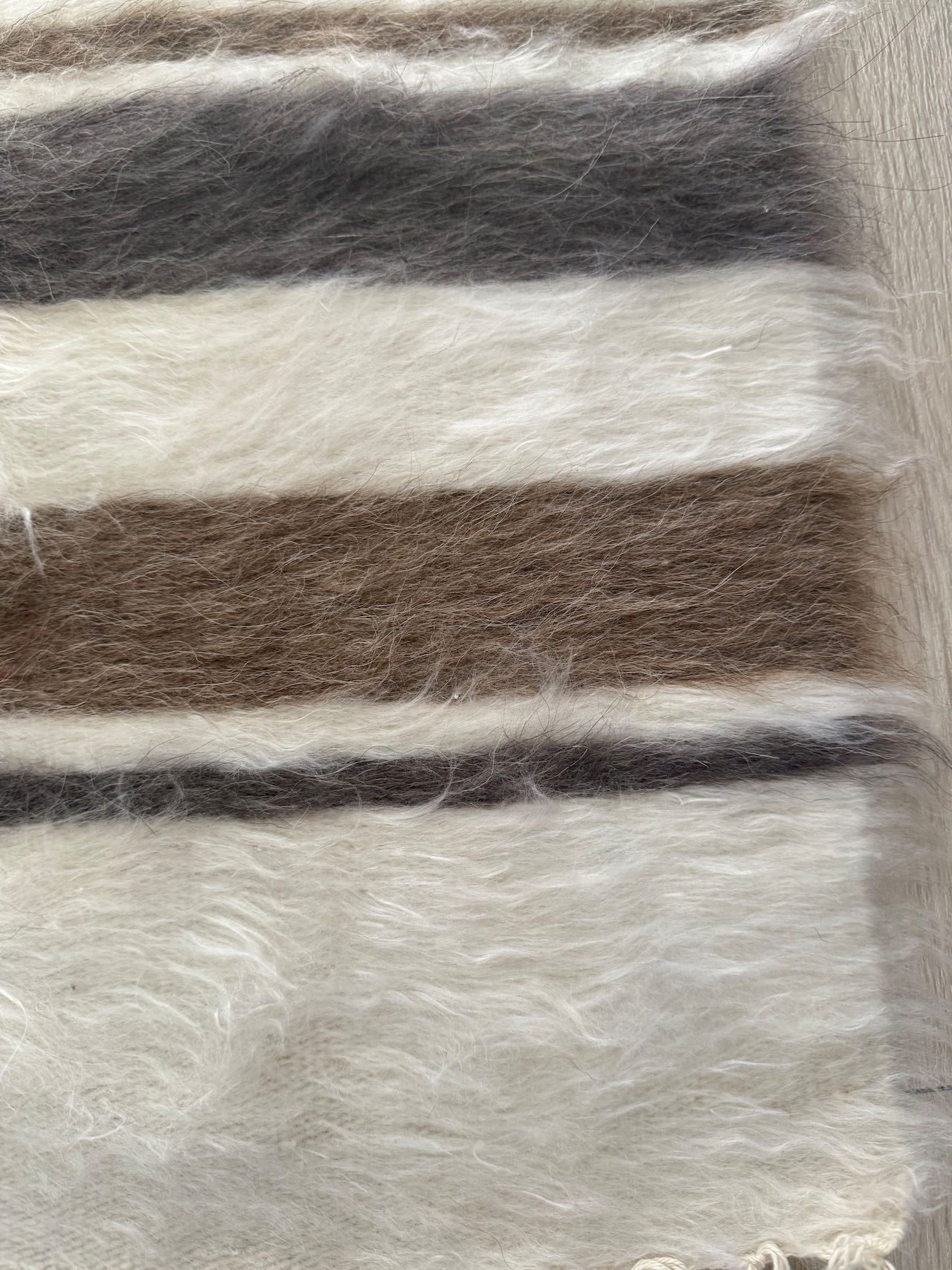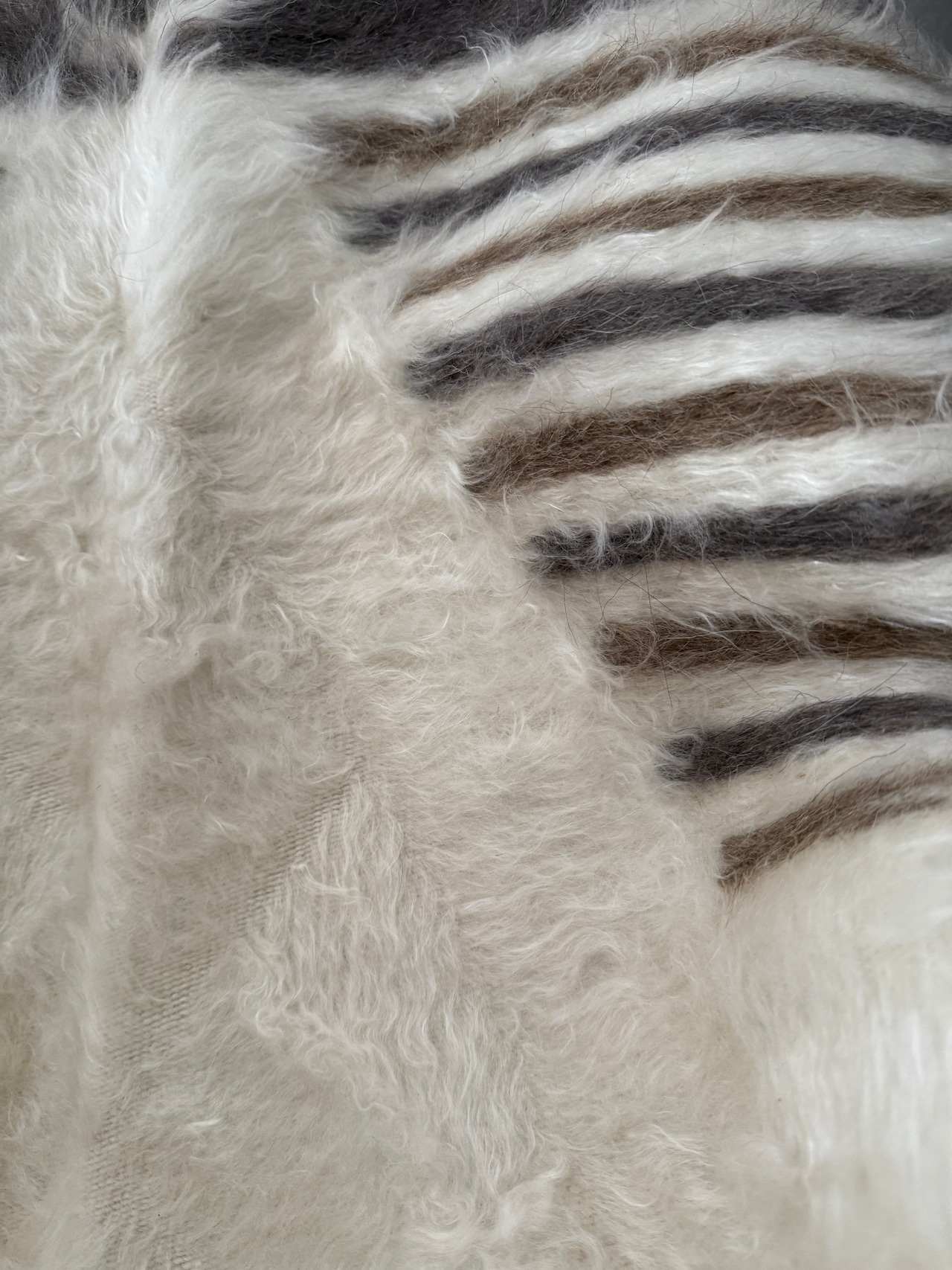 トップの部分は、2色のストライプに豊かなホワイトの毛が重なって波打つよう。ここが本当にきれいです。