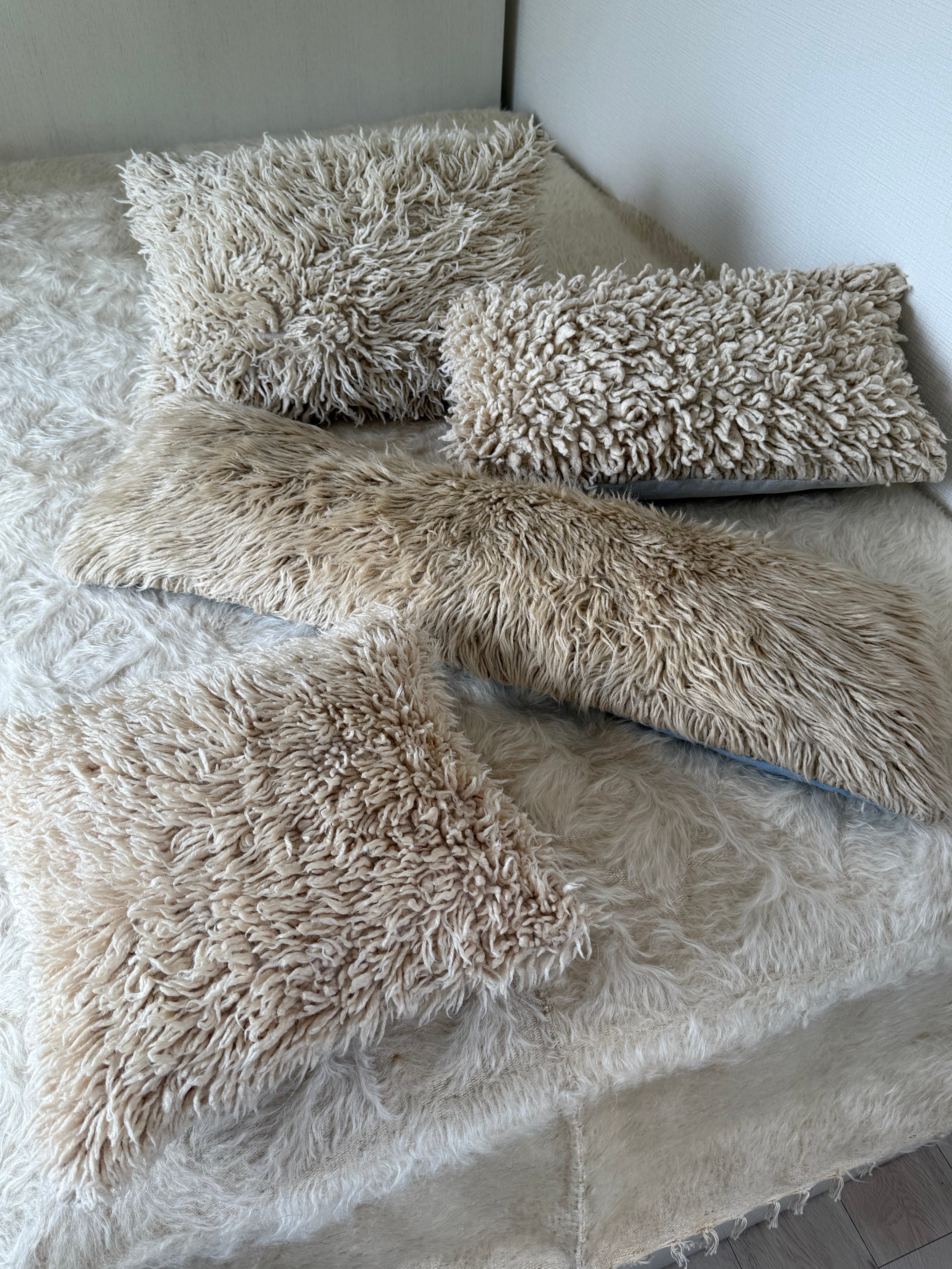 長い毛足のもしゃもしゃのTulu(トゥル)のクッションカバー。
