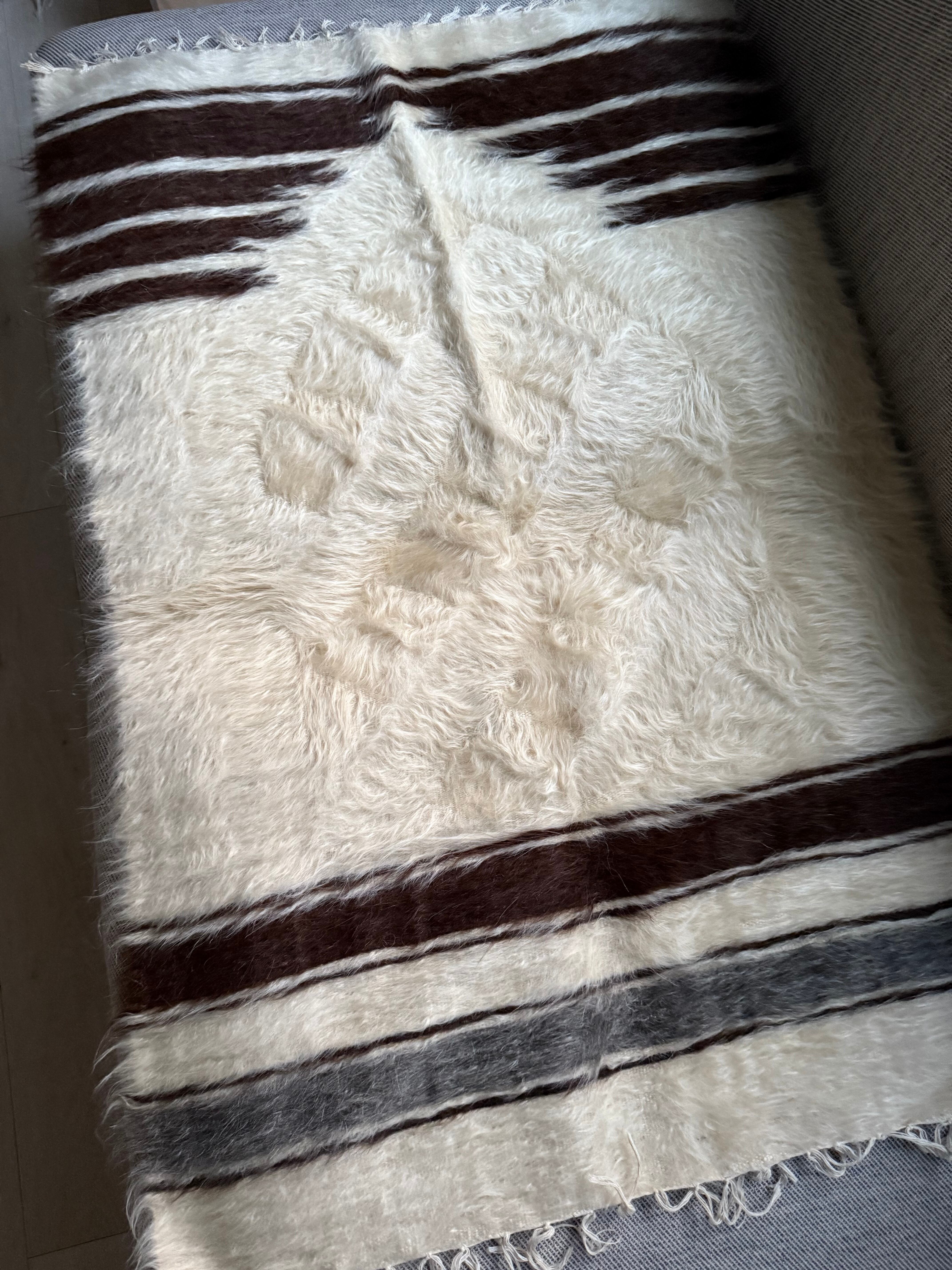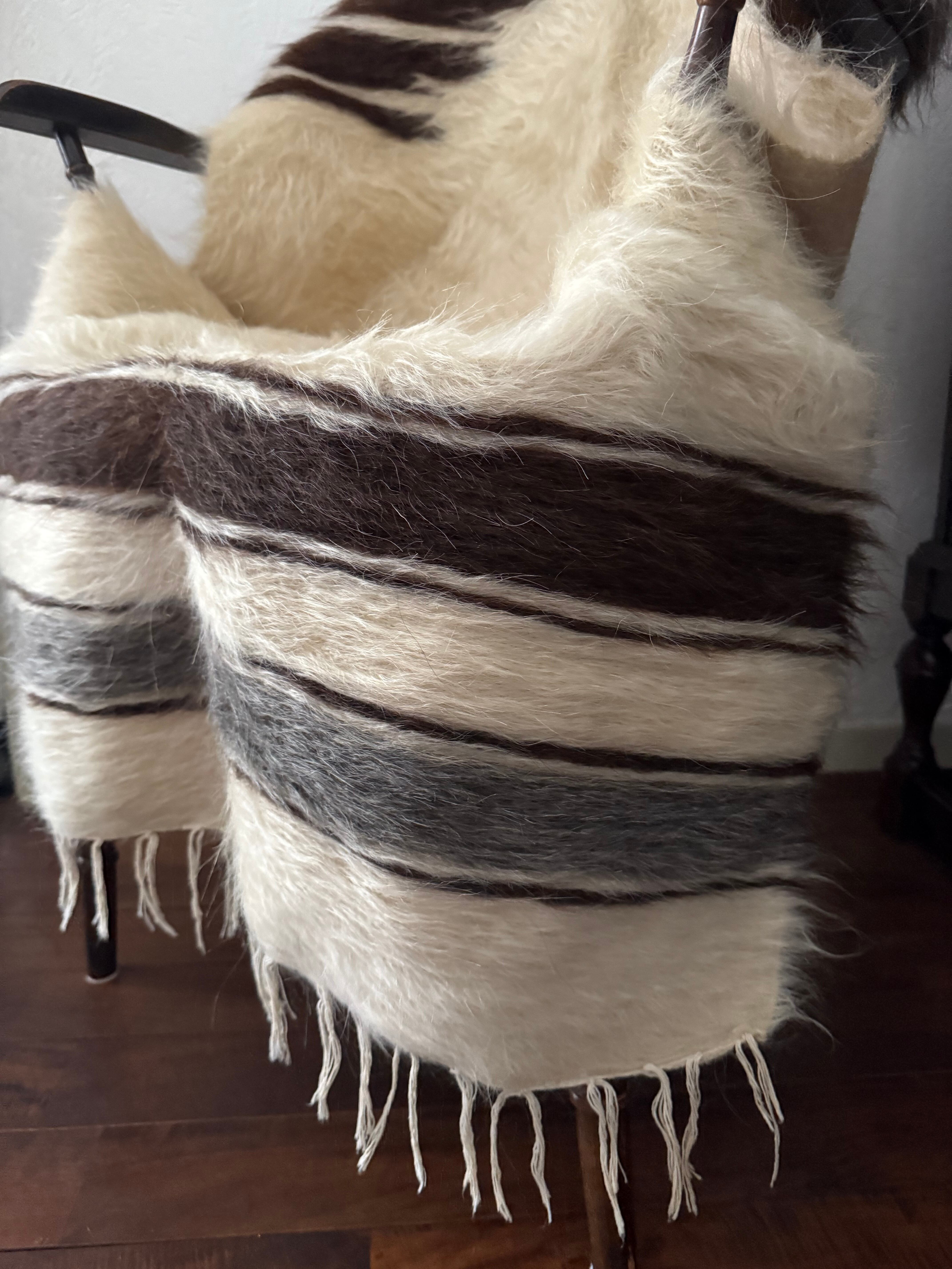 山羊の毛そのままの色を生かし、一切染めずに織られているバッターニエは、クリーム、黒、茶色、キャメル、グレーがメインの色合いです。