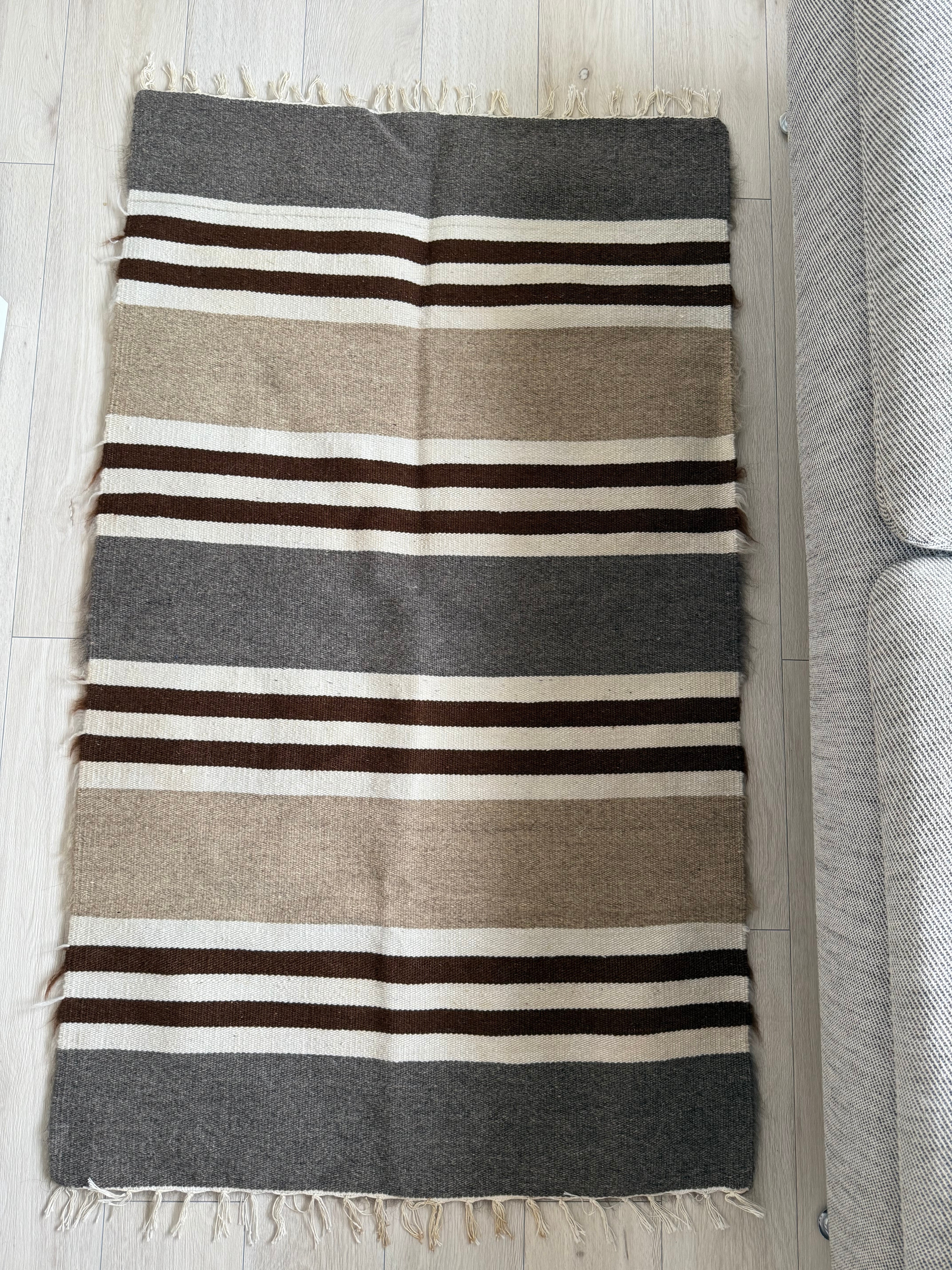 山羊の毛そのままの色を生かし、染めずに織られているバッターニエは、クリーム、黒、茶色、キャメル、グレーがメインの色合いです。