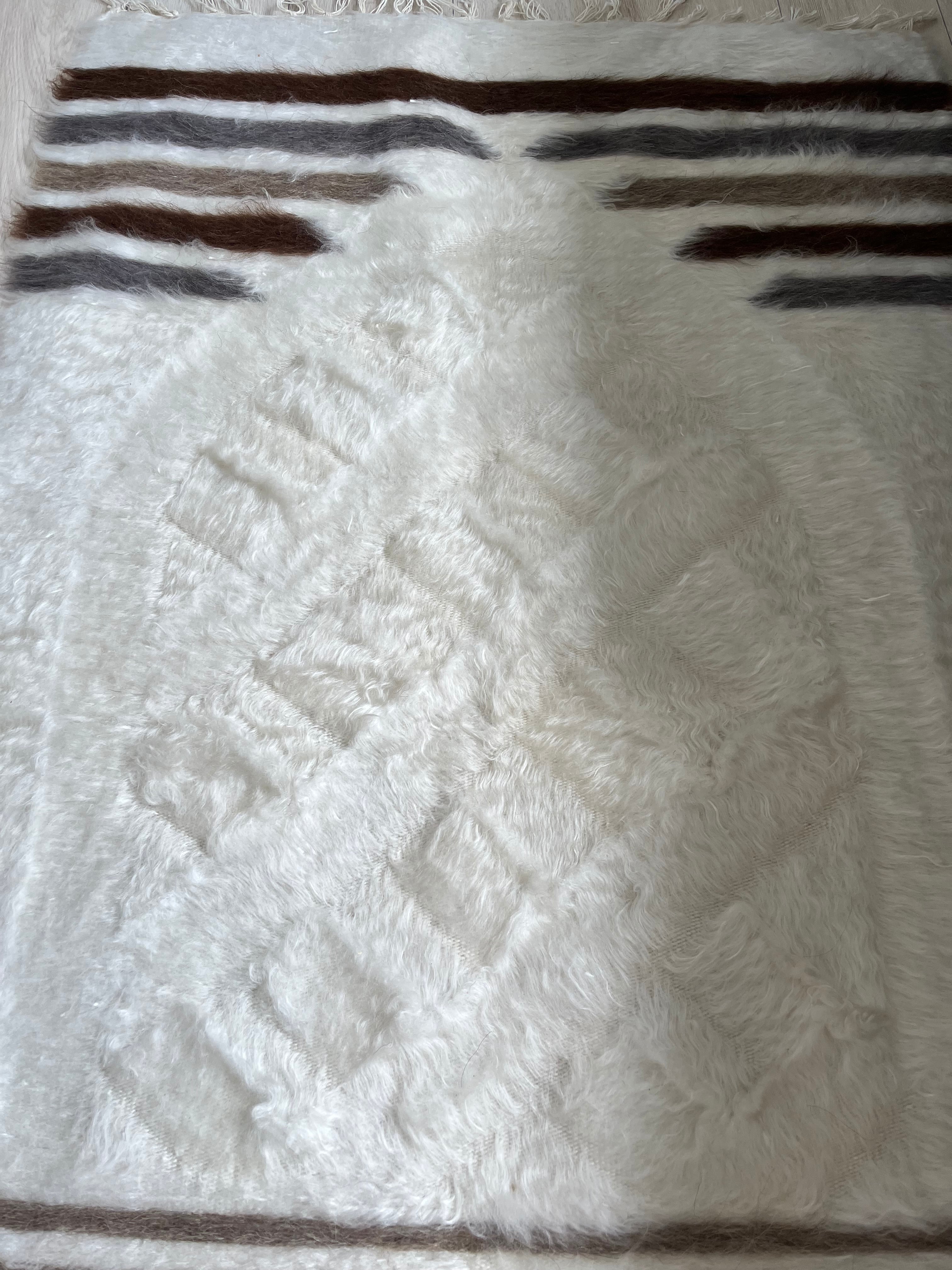 中央部分のミフラーブの織柄もしっかり出ています。白の毛に艶があるので、さらに際立って見えるようです。