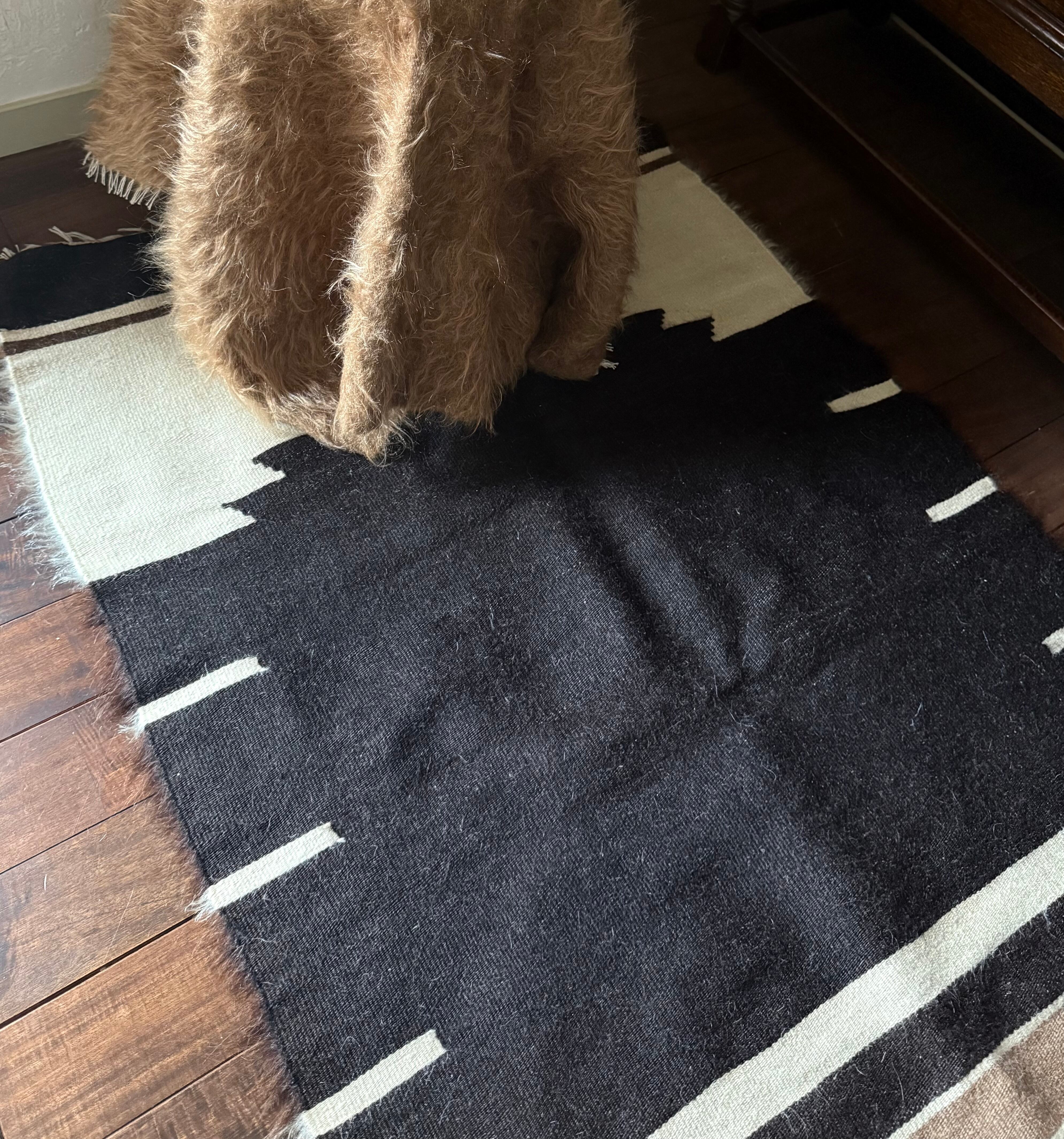 さらにこちらの特徴は裏側が完全にブラックのキリムで、リバーシブルにしても表側とは違った雰囲気で使えることです。