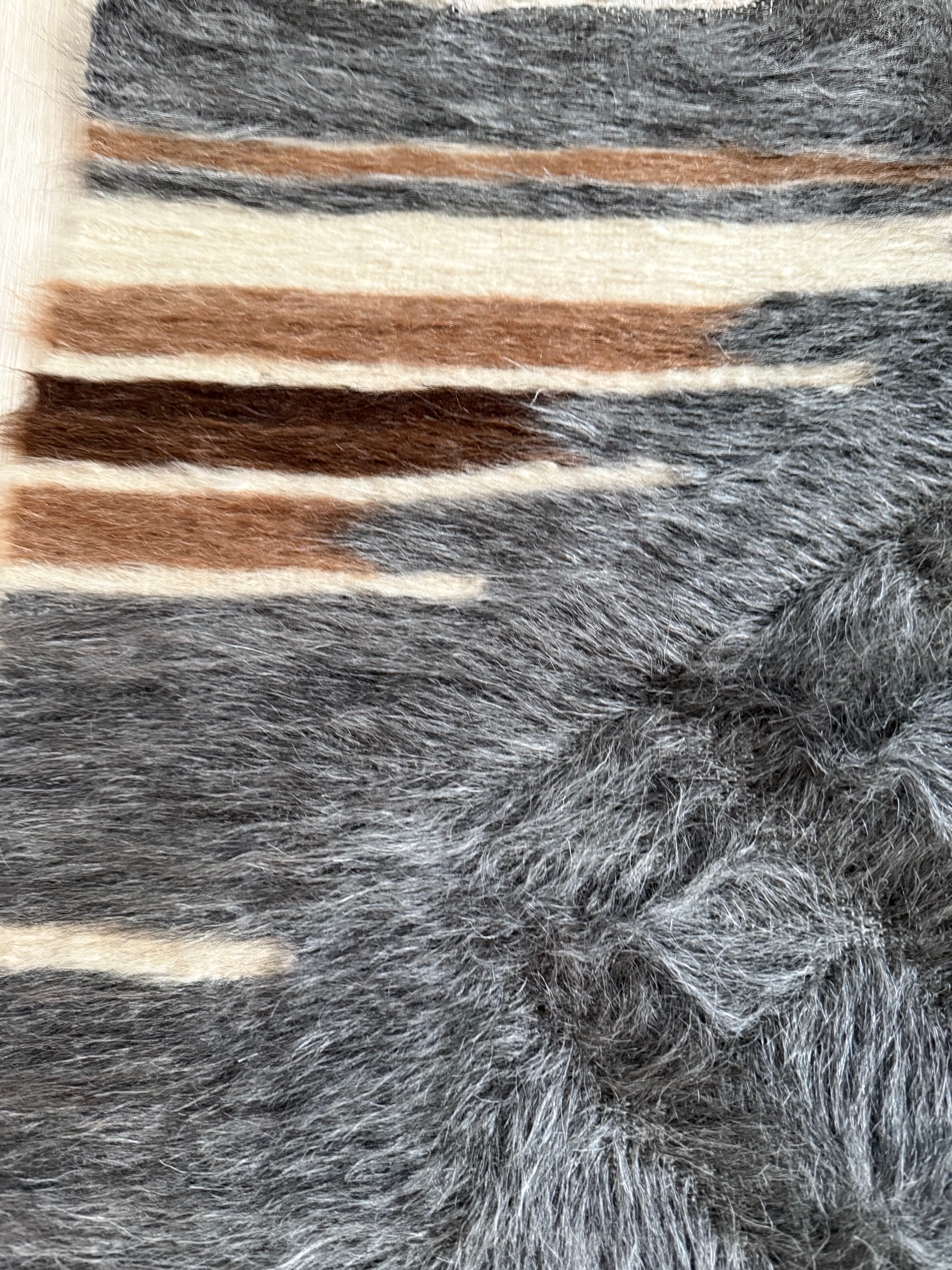 山羊の毛そのままの色を生かし、染めずに織られているバッターニエは、クリーム、黒、茶色、キャメル、グレーがメインの色合いです。