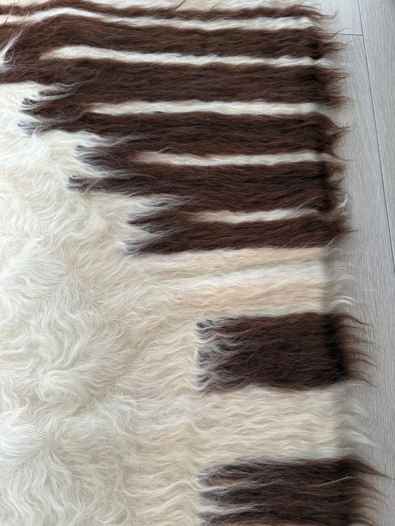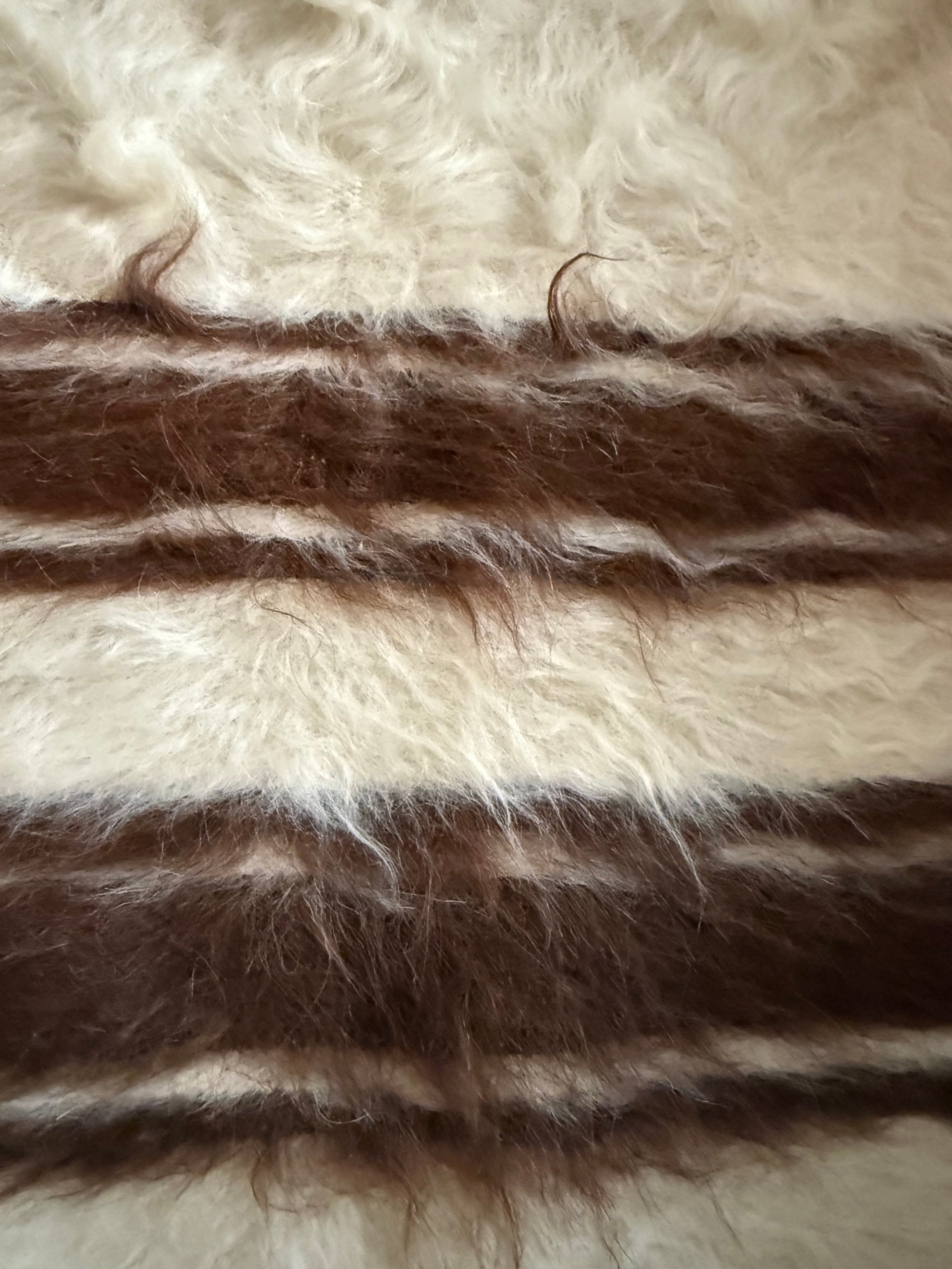 非常に人気のある、豊かな毛質のオフホワイトとブラウンのタイプ。