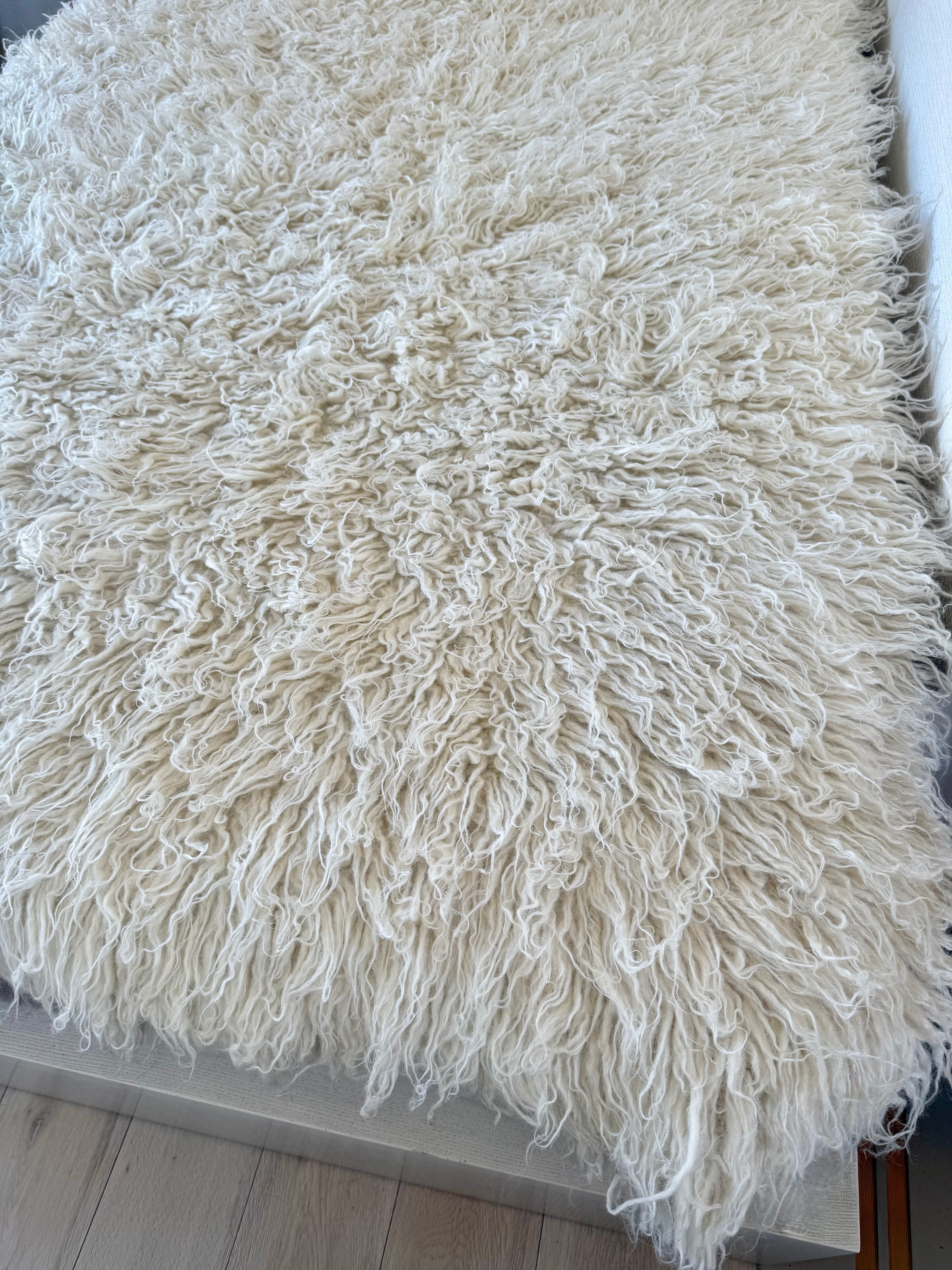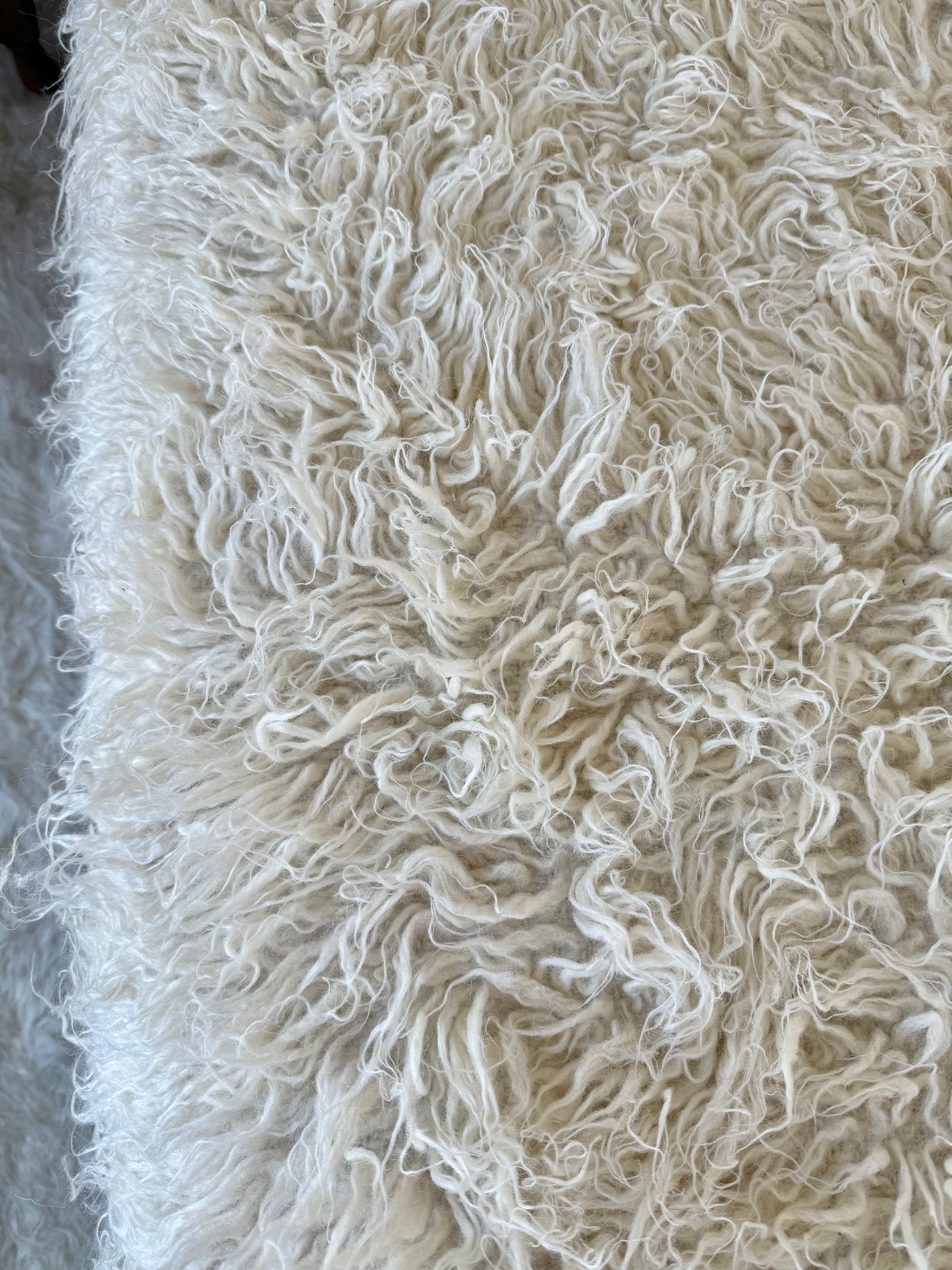 変色やシミなど見当たらない質の良い毛ですが、古いもので手作りです。
