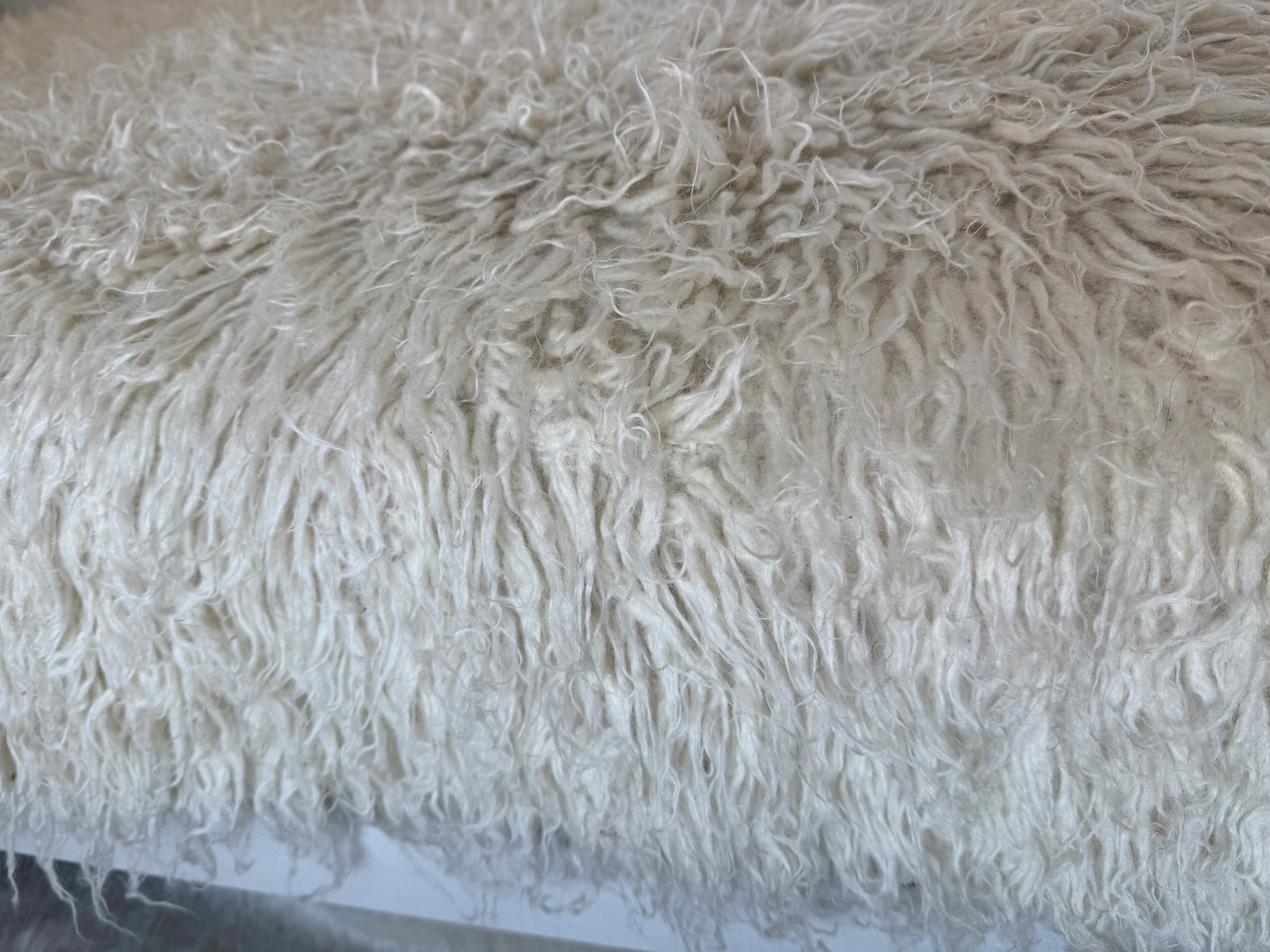 くりくりとした毛は一年通じてとても心地よく、ちくちく感もありません(羊毛なので、セーターの上に座ったような感覚です。感じ方には個人差があるかと思いますので、ご了承ください)。