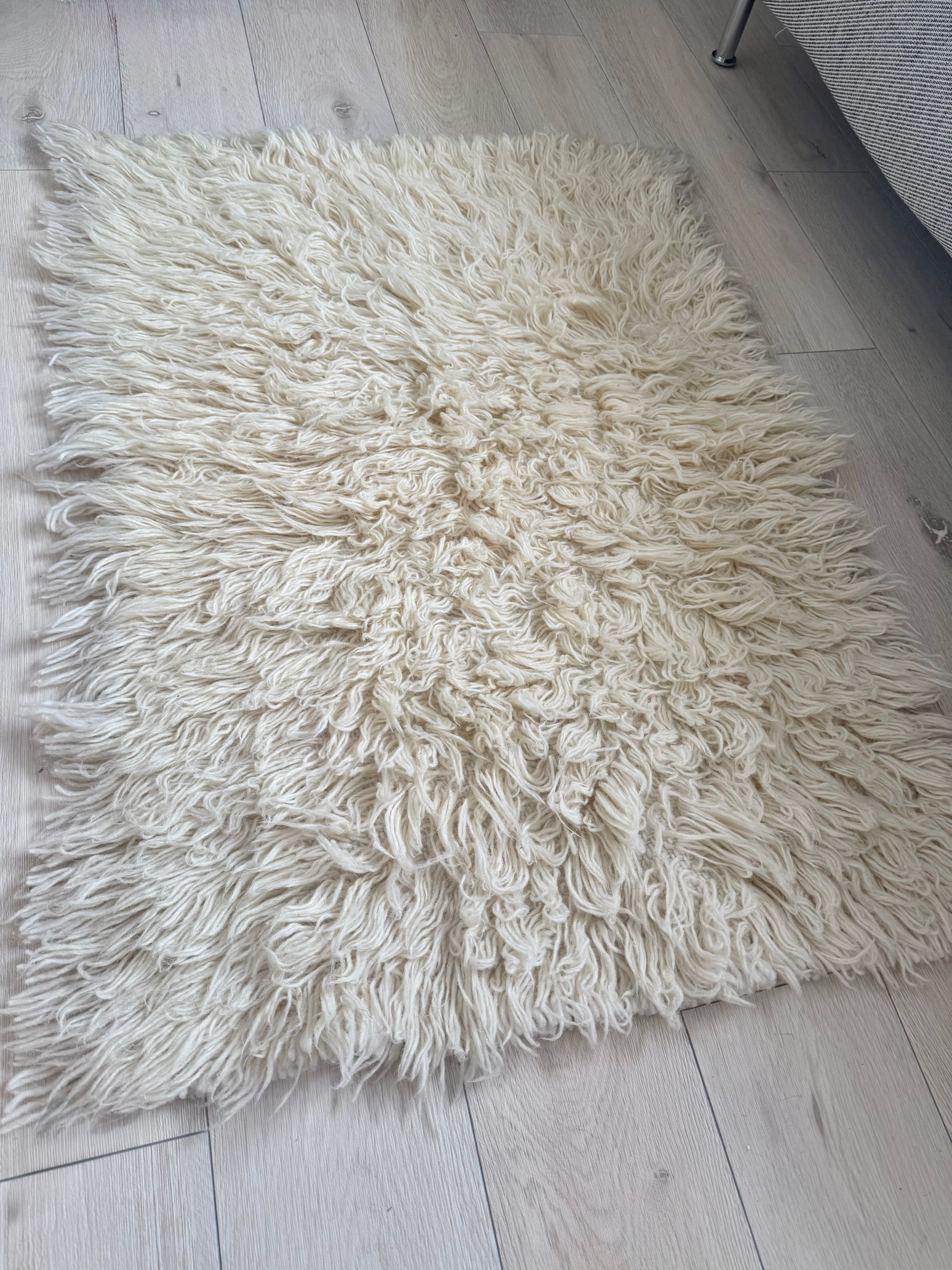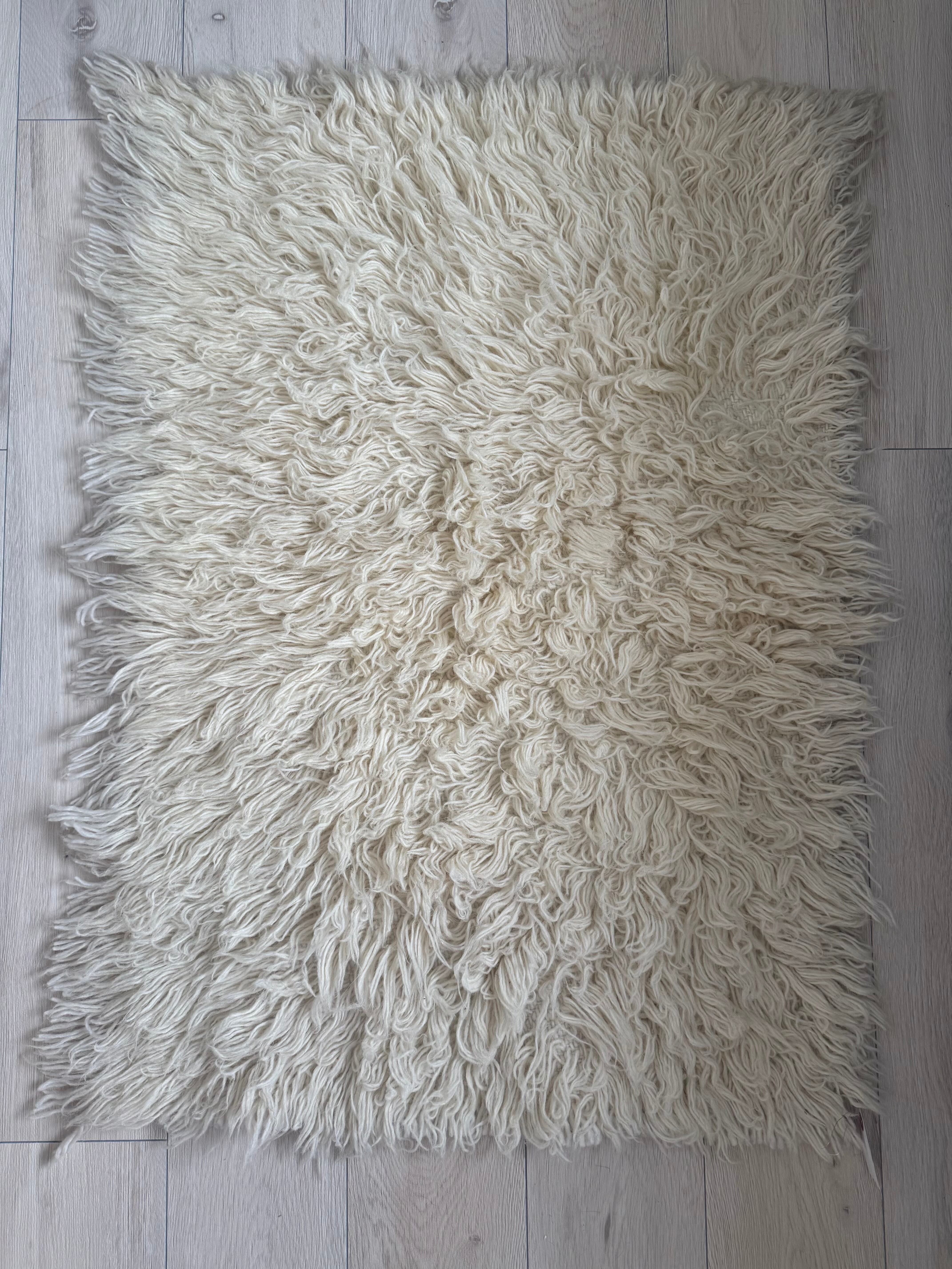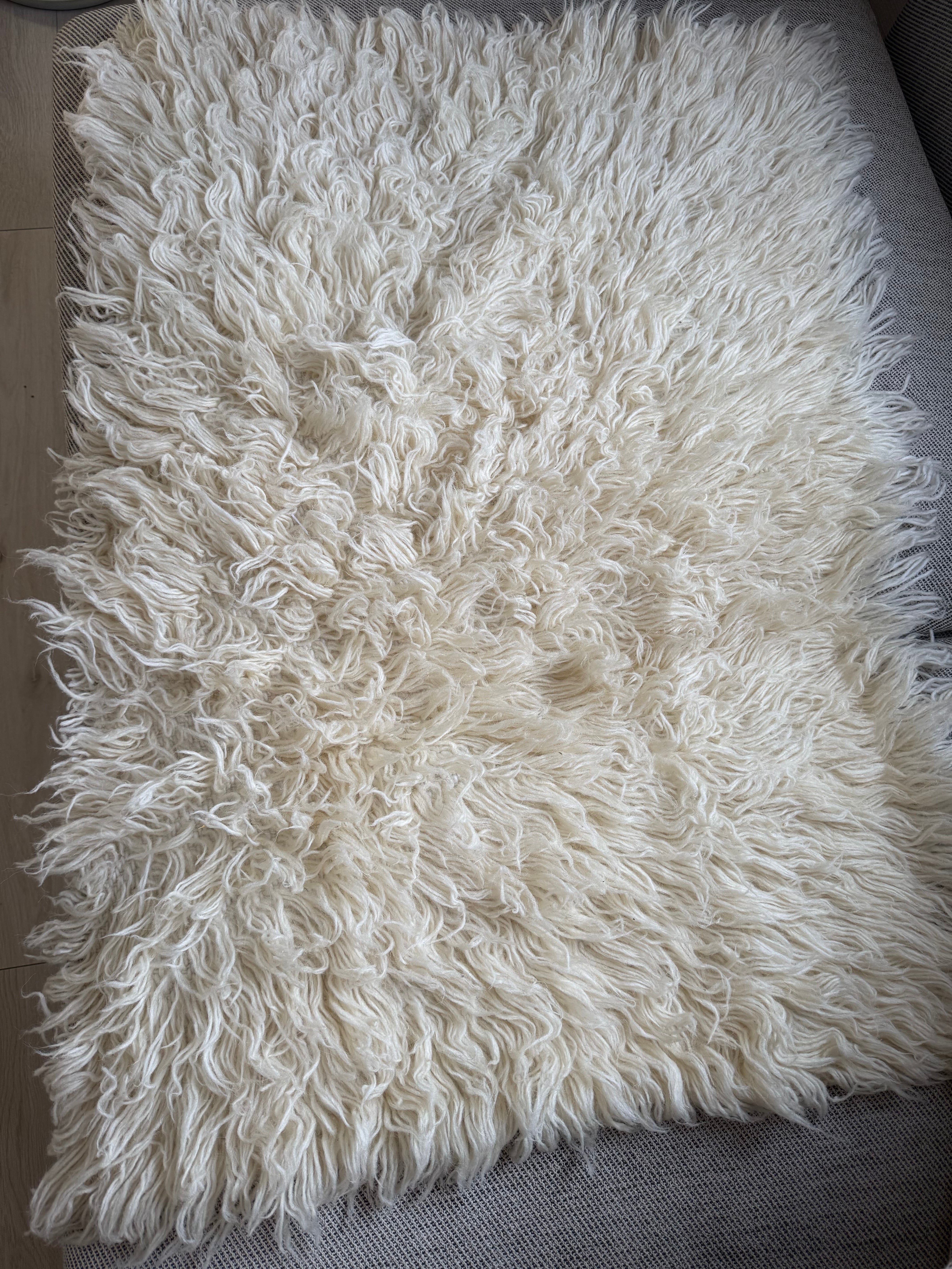 山岳地帯で暮らす遊牧民たちが自らの暮らしのために織ってきたもので、寒さを凌ぐためにこのように毛足が長い織物を作るようになったようです。