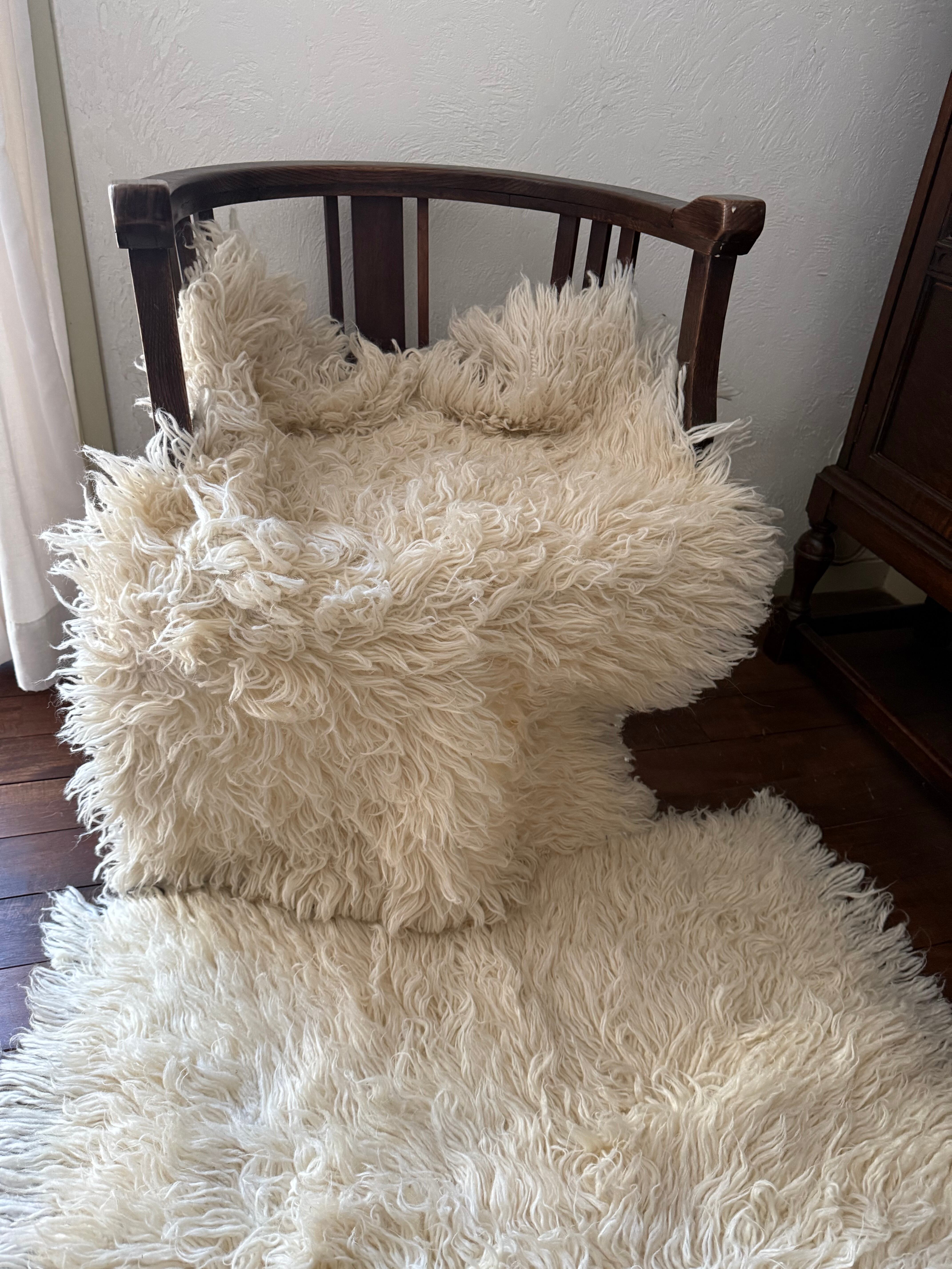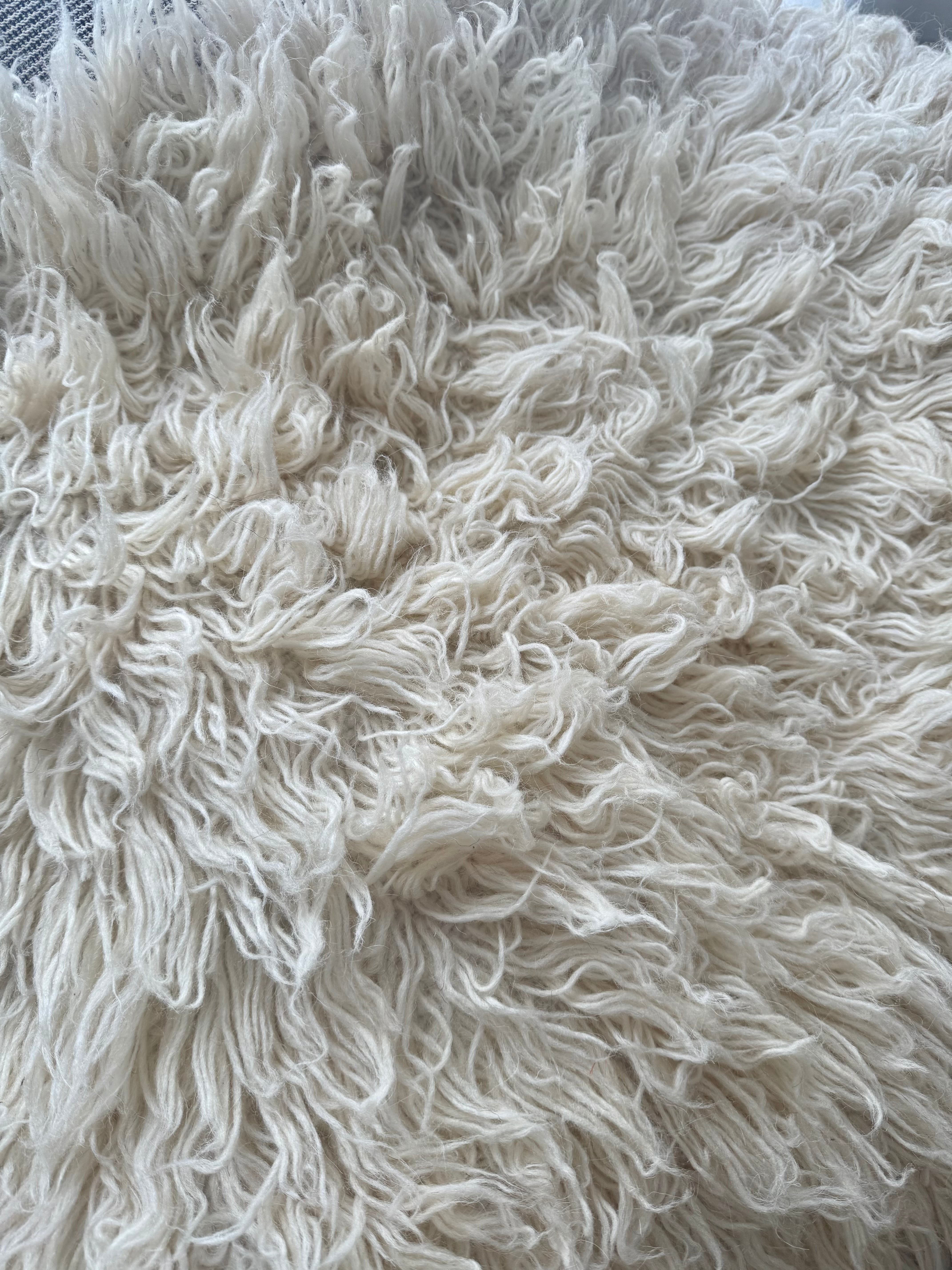 くりくりとした毛は一年通じてとても心地よく、ちくちく感もありません(羊毛なので、セーターの上に座ったような感覚です。感じ方には個人差があるかと思いますので、ご了承ください)。