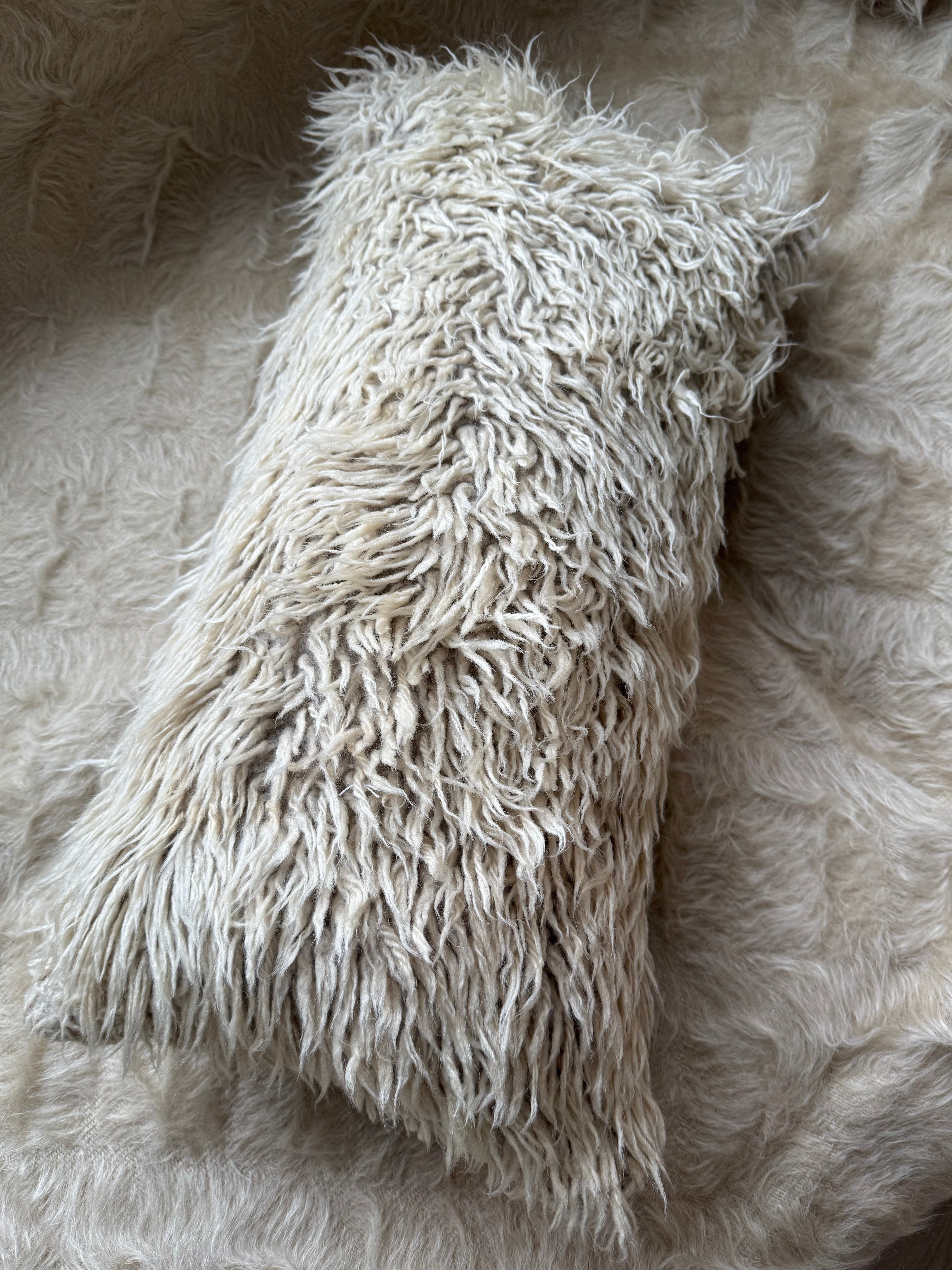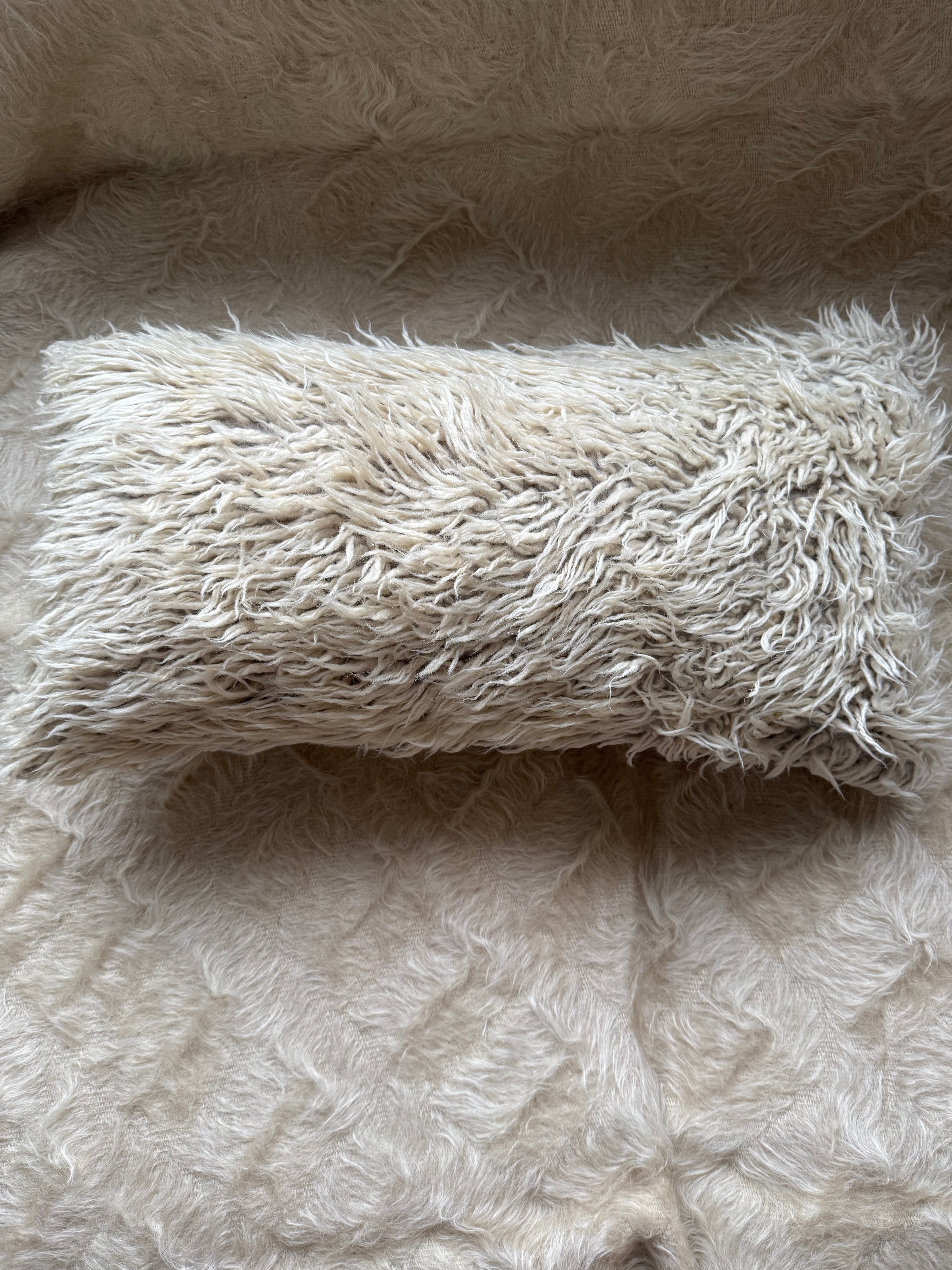 長い毛足のもしゃもしゃのTulu(トゥル)のクッションカバー。