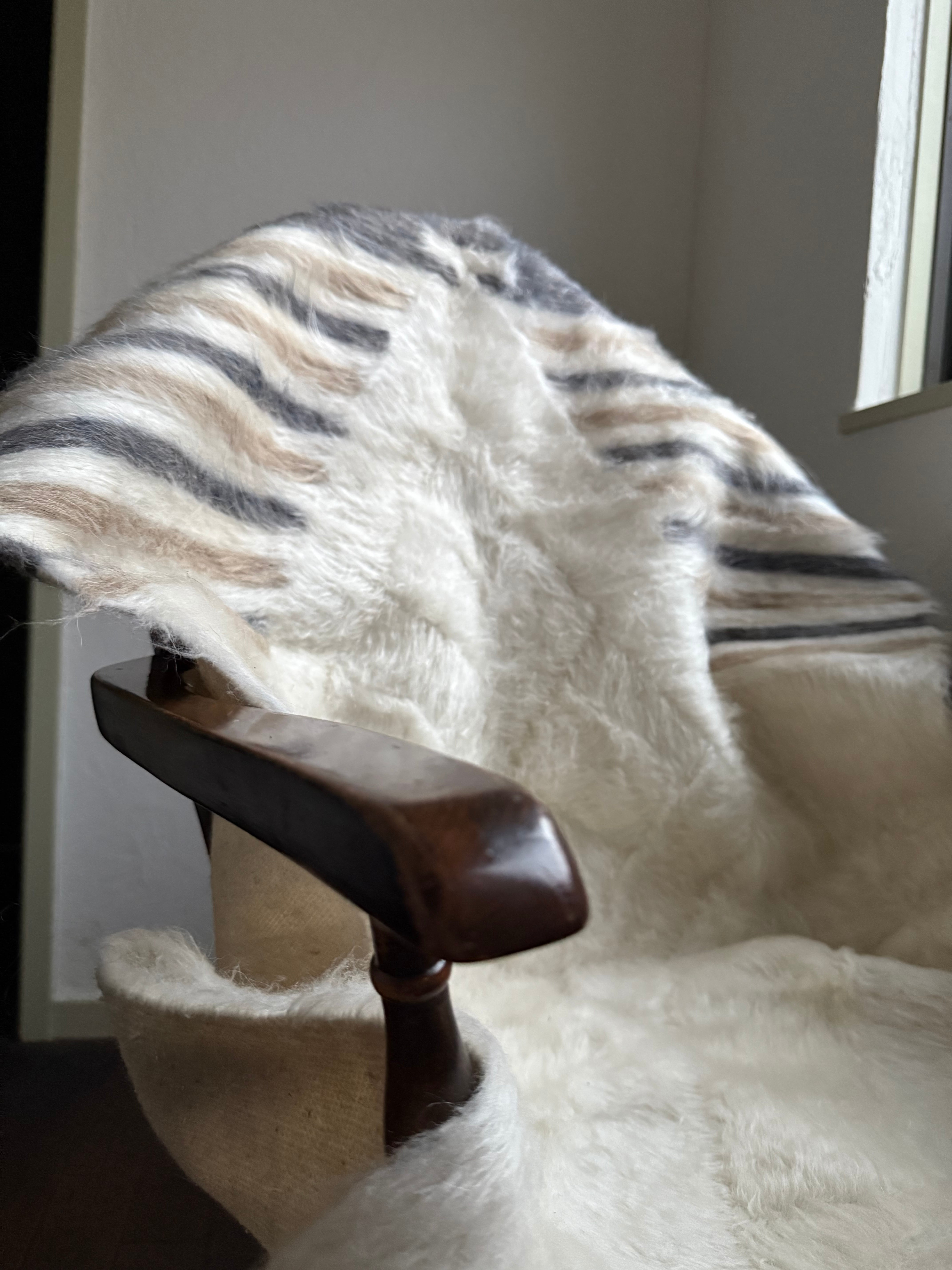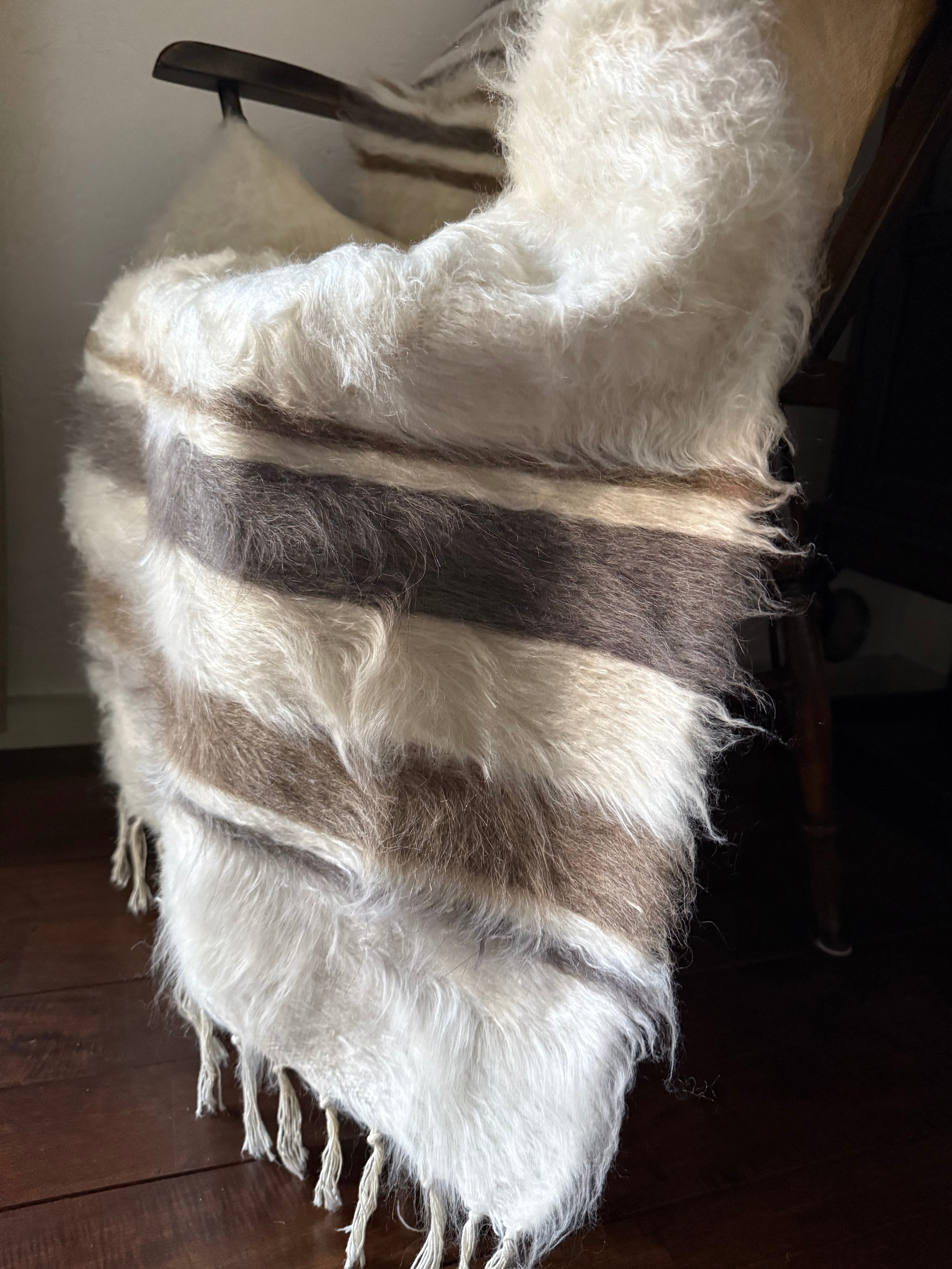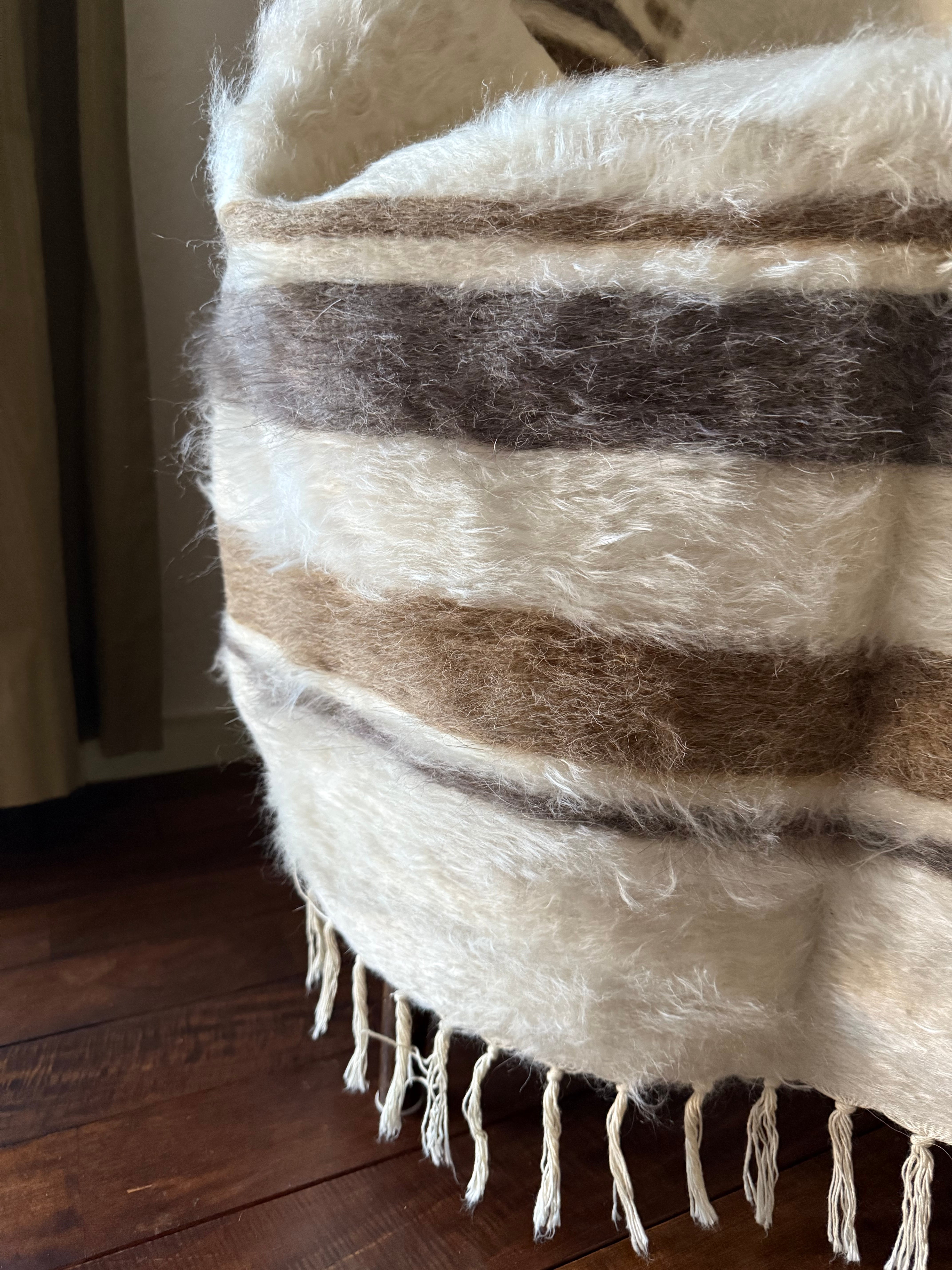 山羊の毛そのままの色を生かし、一切染めずに織られているバッターニエは、クリーム、黒、茶色、キャメル、グレーがメインの色合いです。