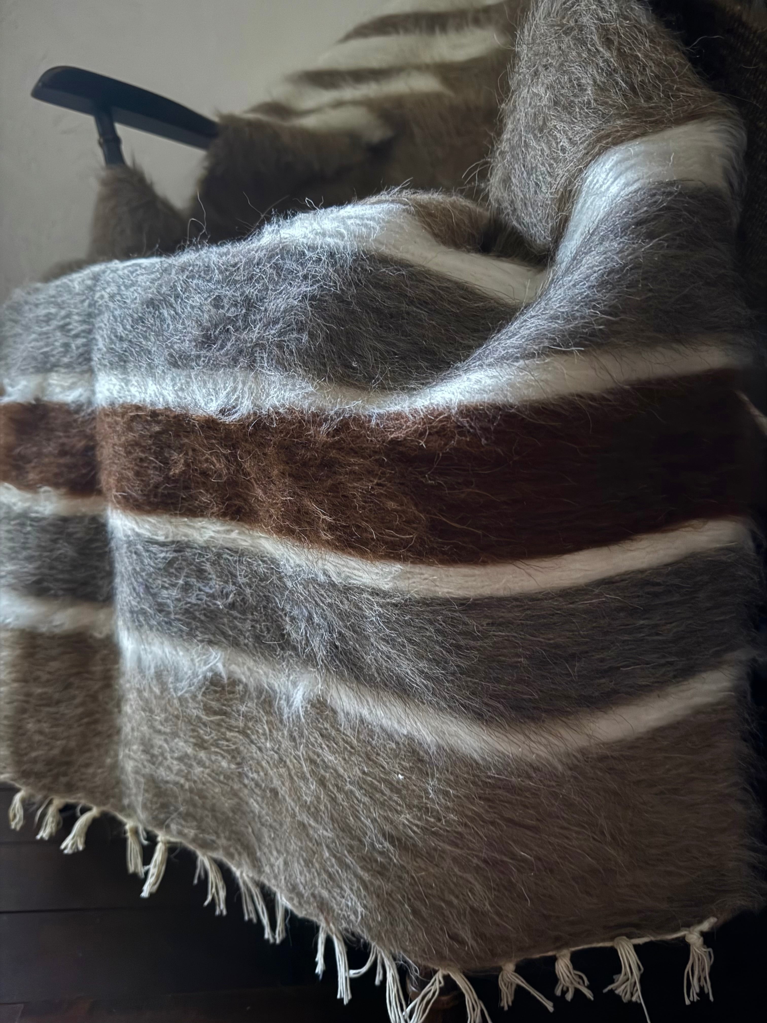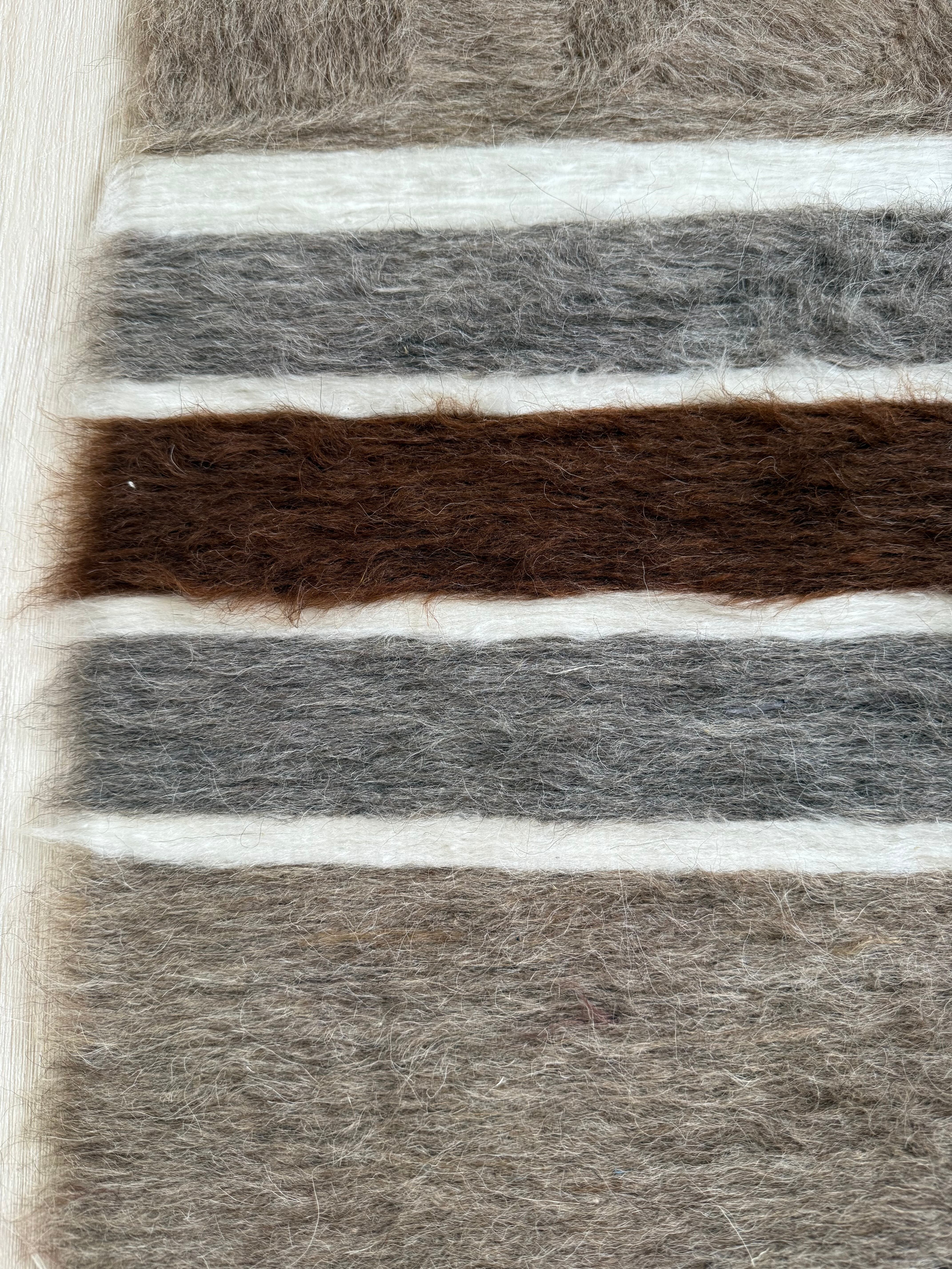 山羊の毛そのままの色を生かし、染めずに織られているバッターニエは、クリーム、黒、茶色、キャメル、グレーがメインの色合いです。