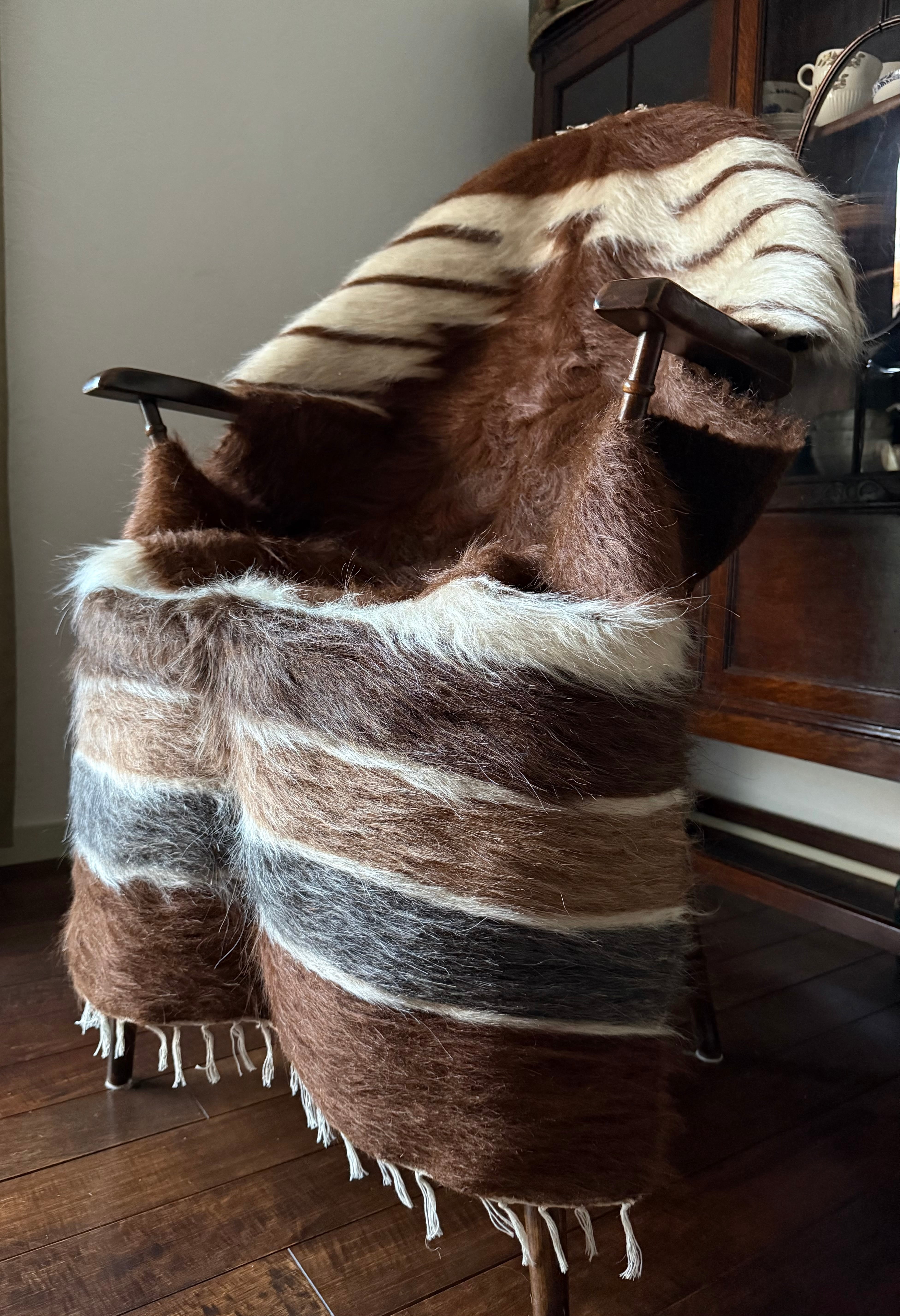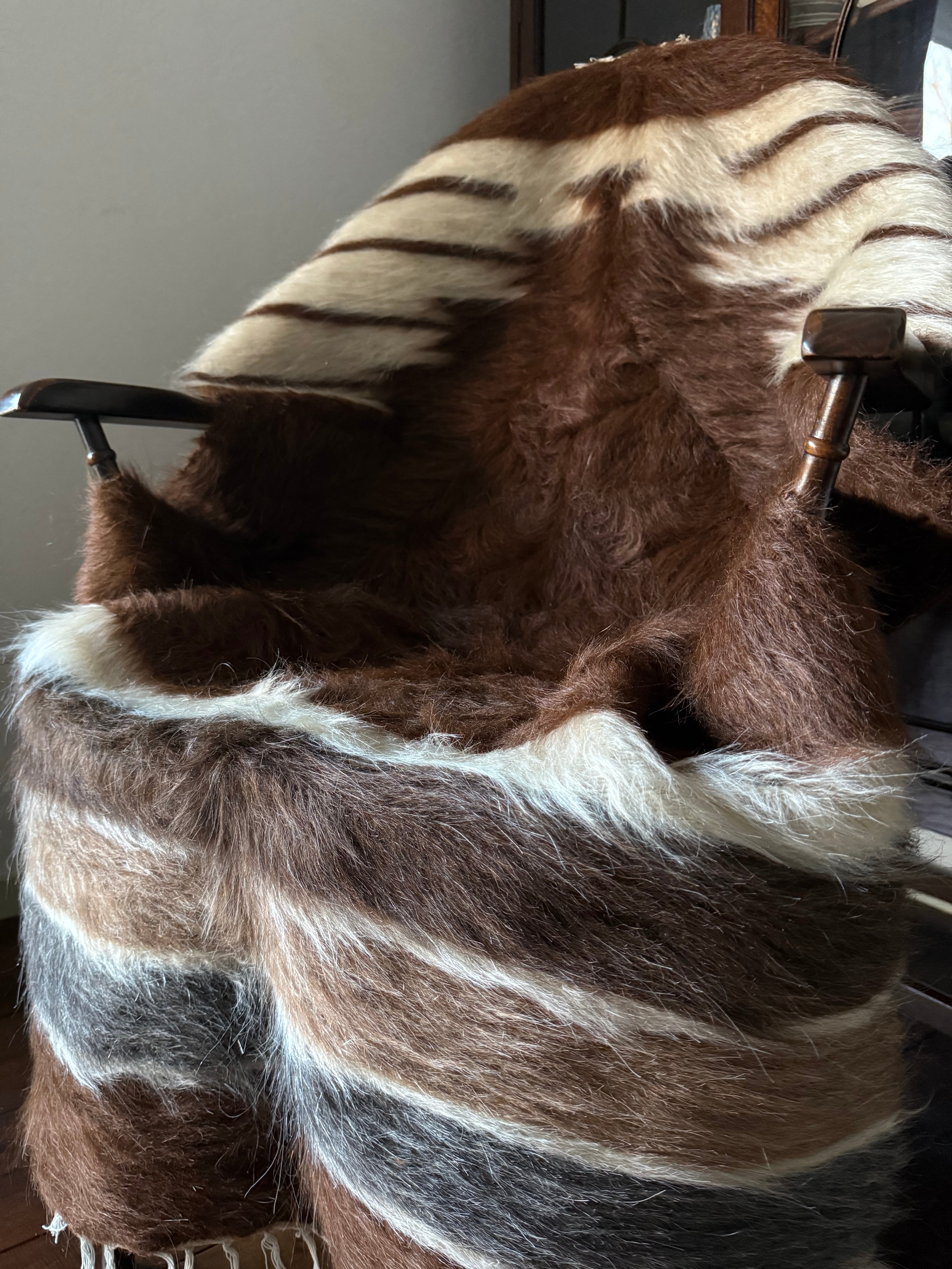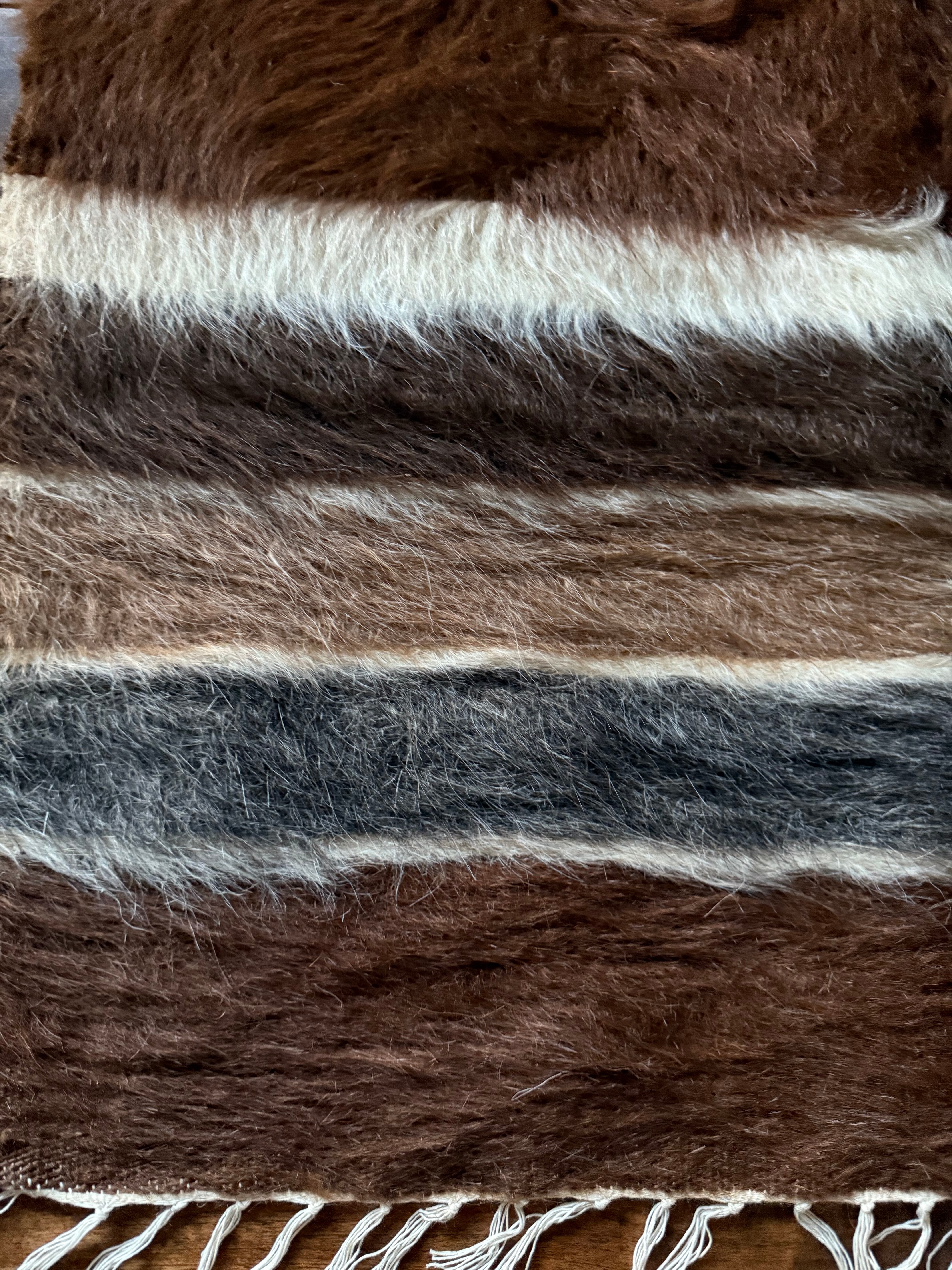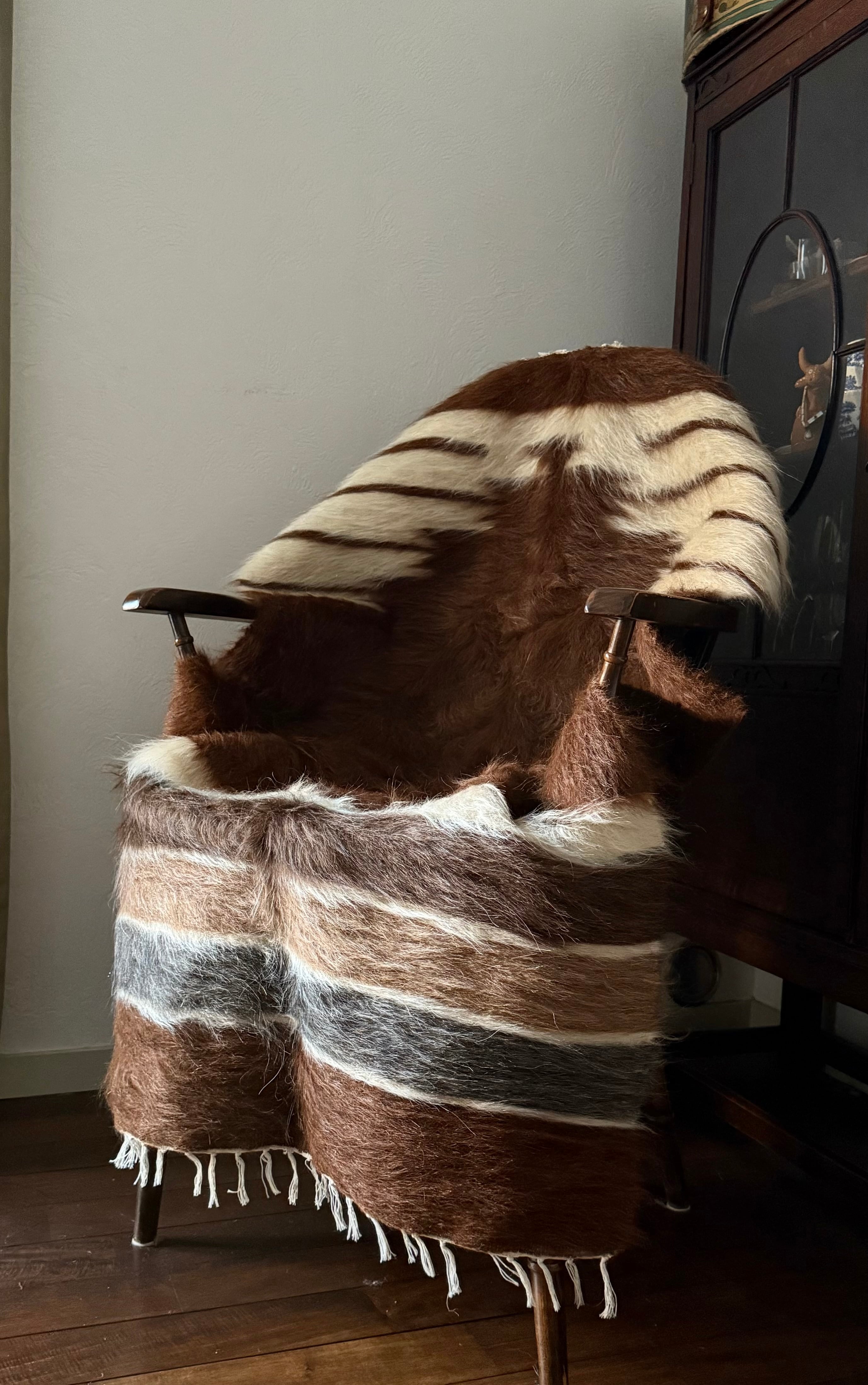 山羊の毛そのままの色を生かし、染めずに織られているバッターニエは、クリーム、黒、茶色、キャメル、グレーがメインの色合いです。