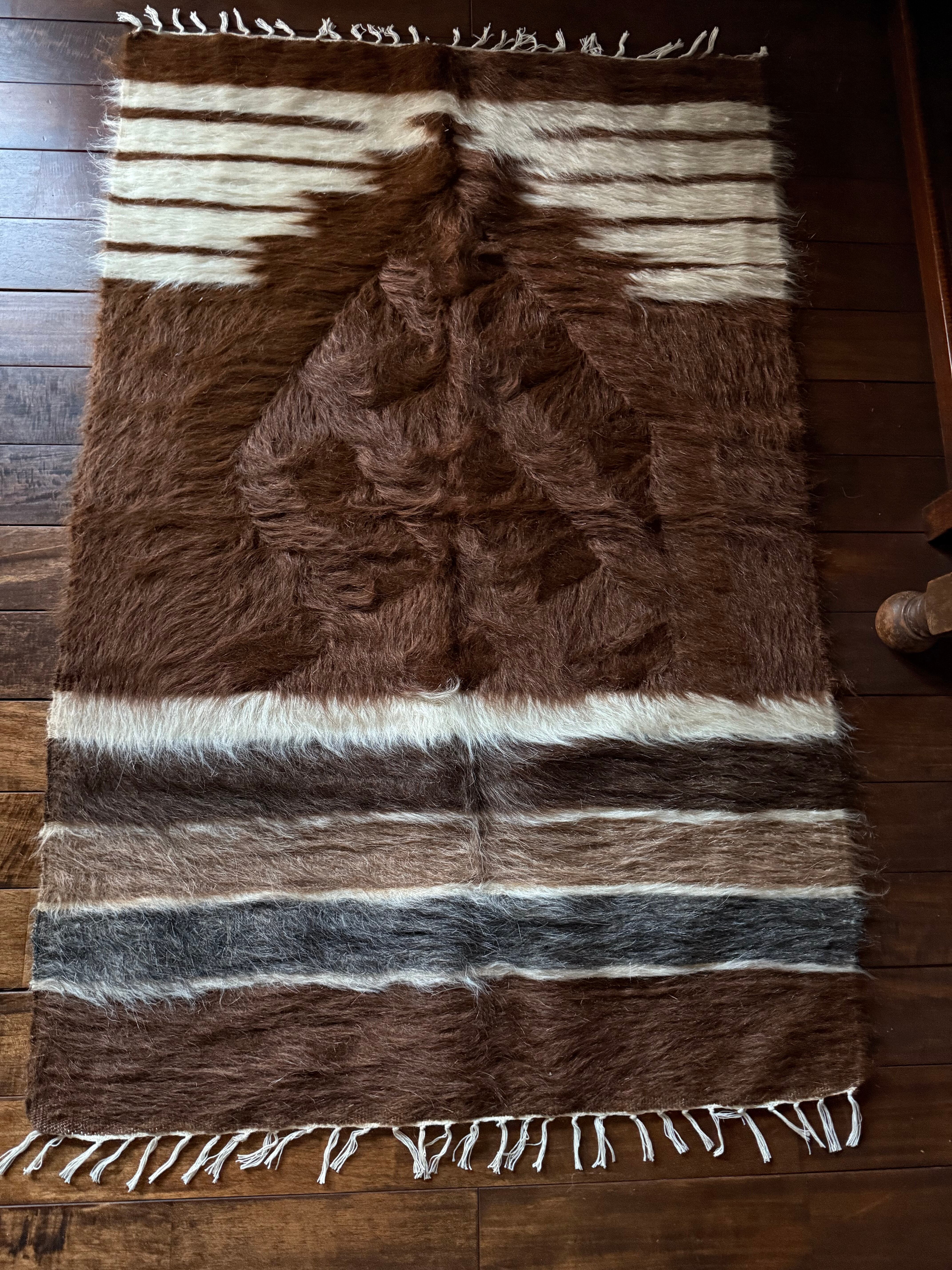 毛足はとても豊かで長め、中央にダイヤ柄もはっきり出ています。