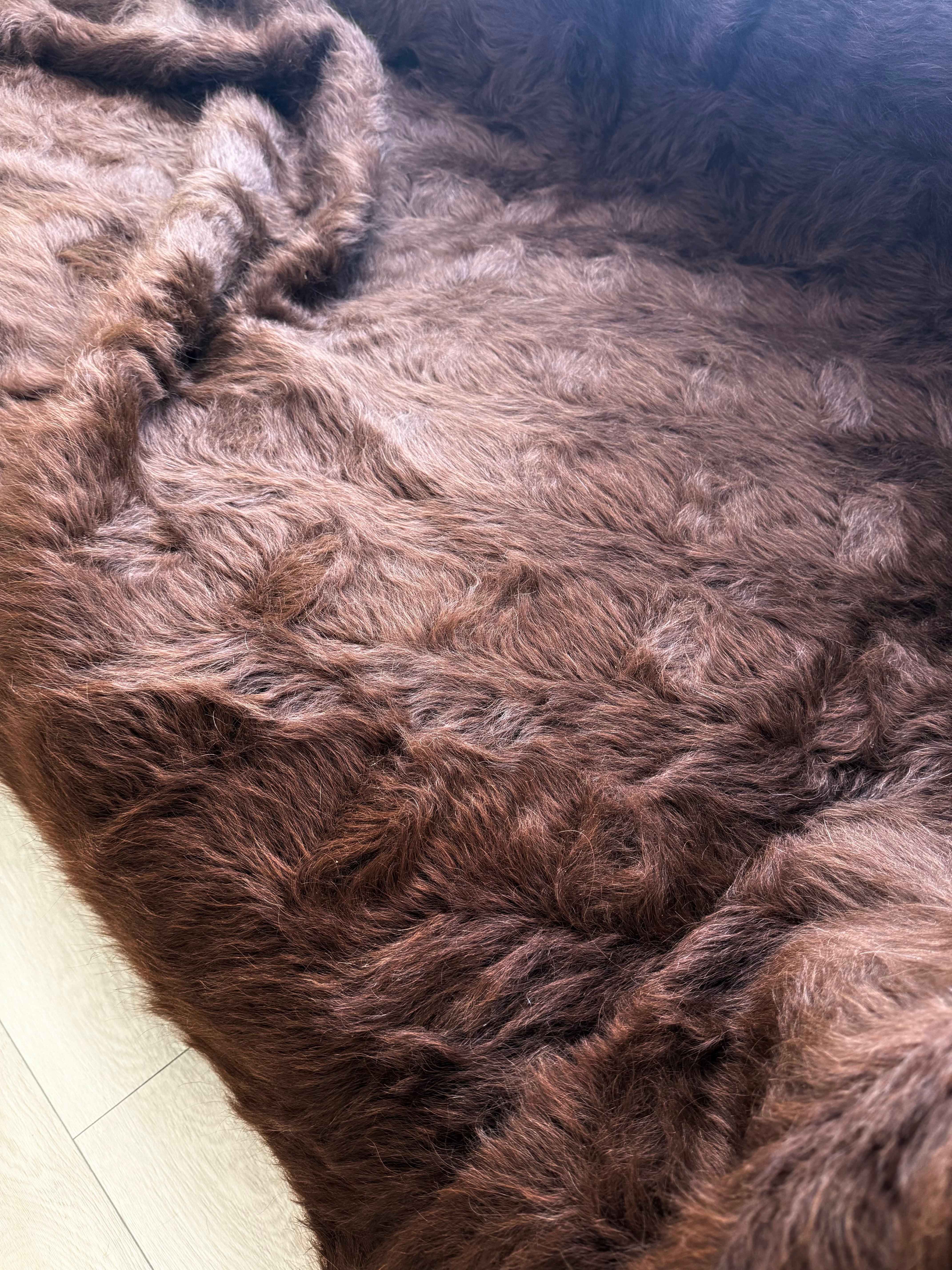 これは非常に美しく艶やかな毛質のブラウンの無地。毛は長くしなやかで、これ以上ないほどつやつやです。