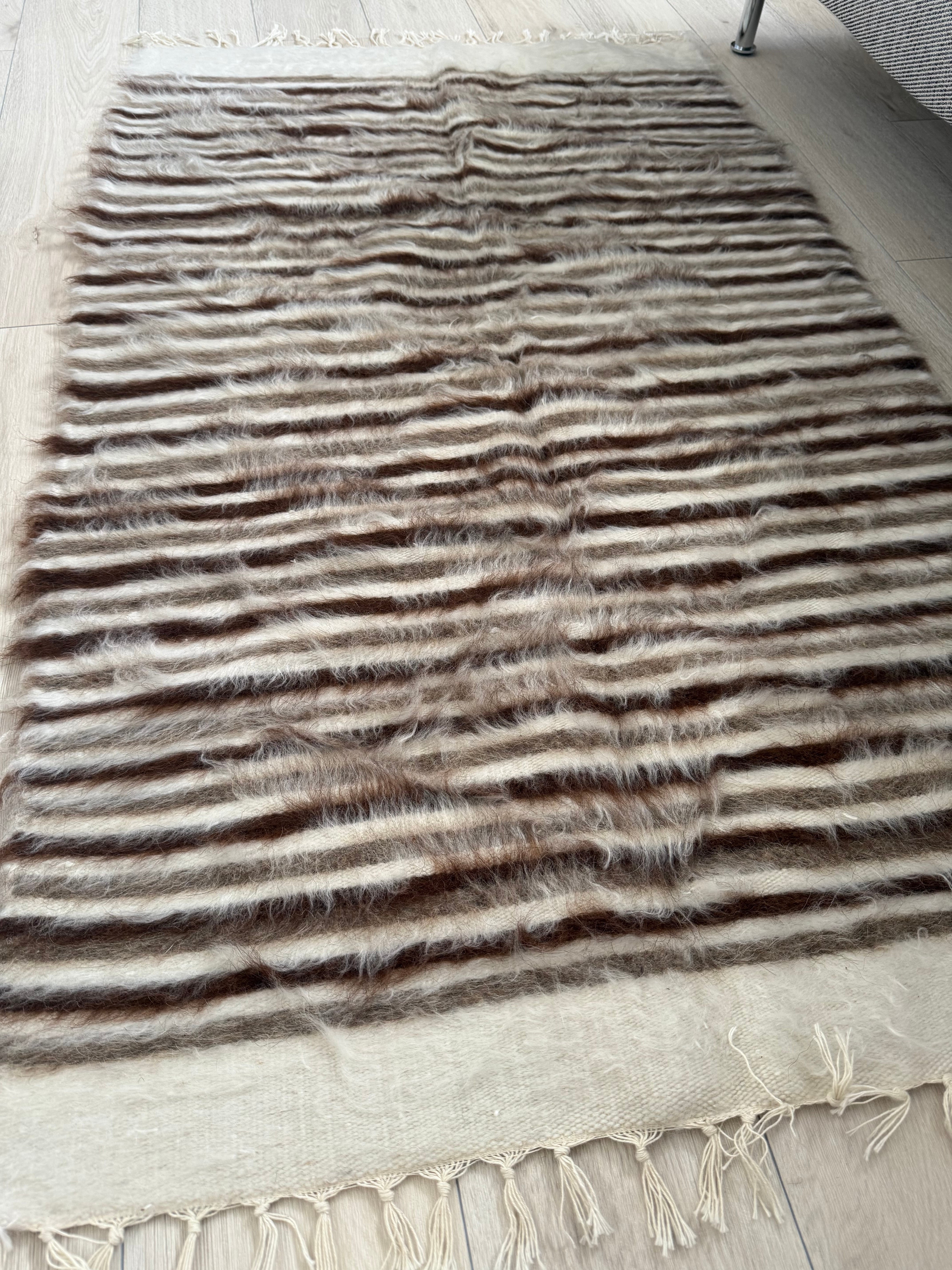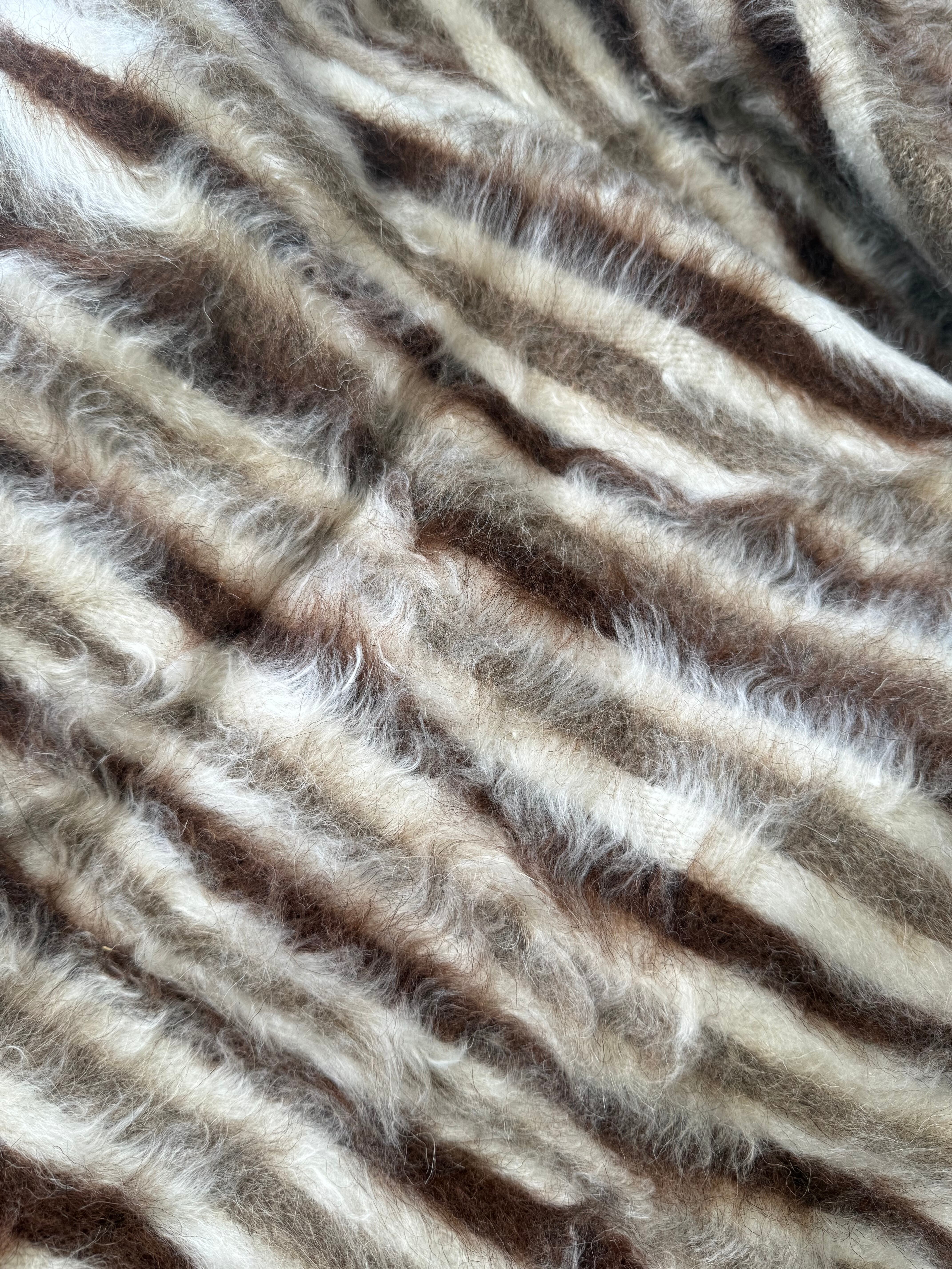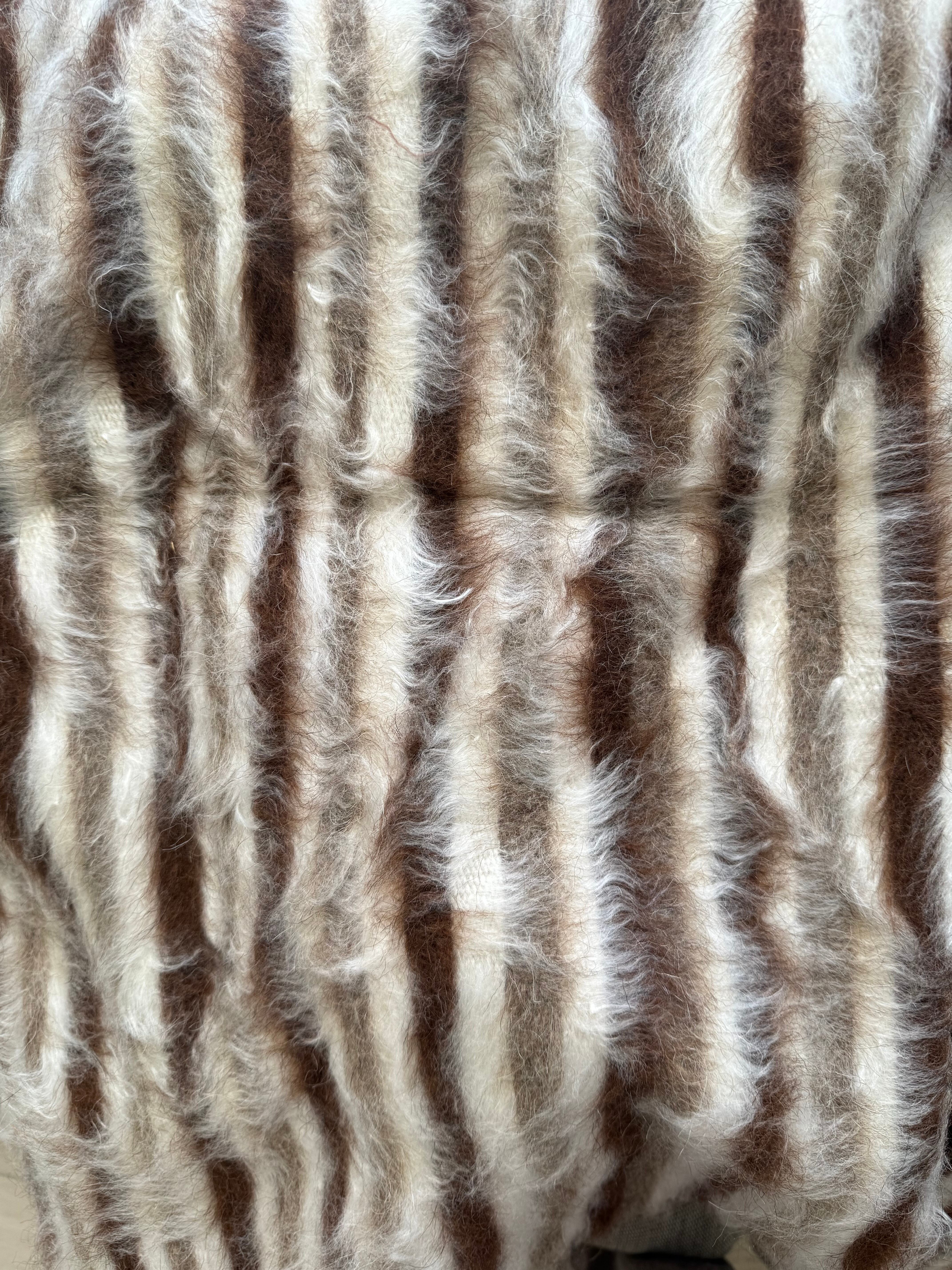 シックな色目のストライプなので、家具や空間にもなじみ、柔らかな毛の雰囲気が程よいアクセントをプラスしてくれます。