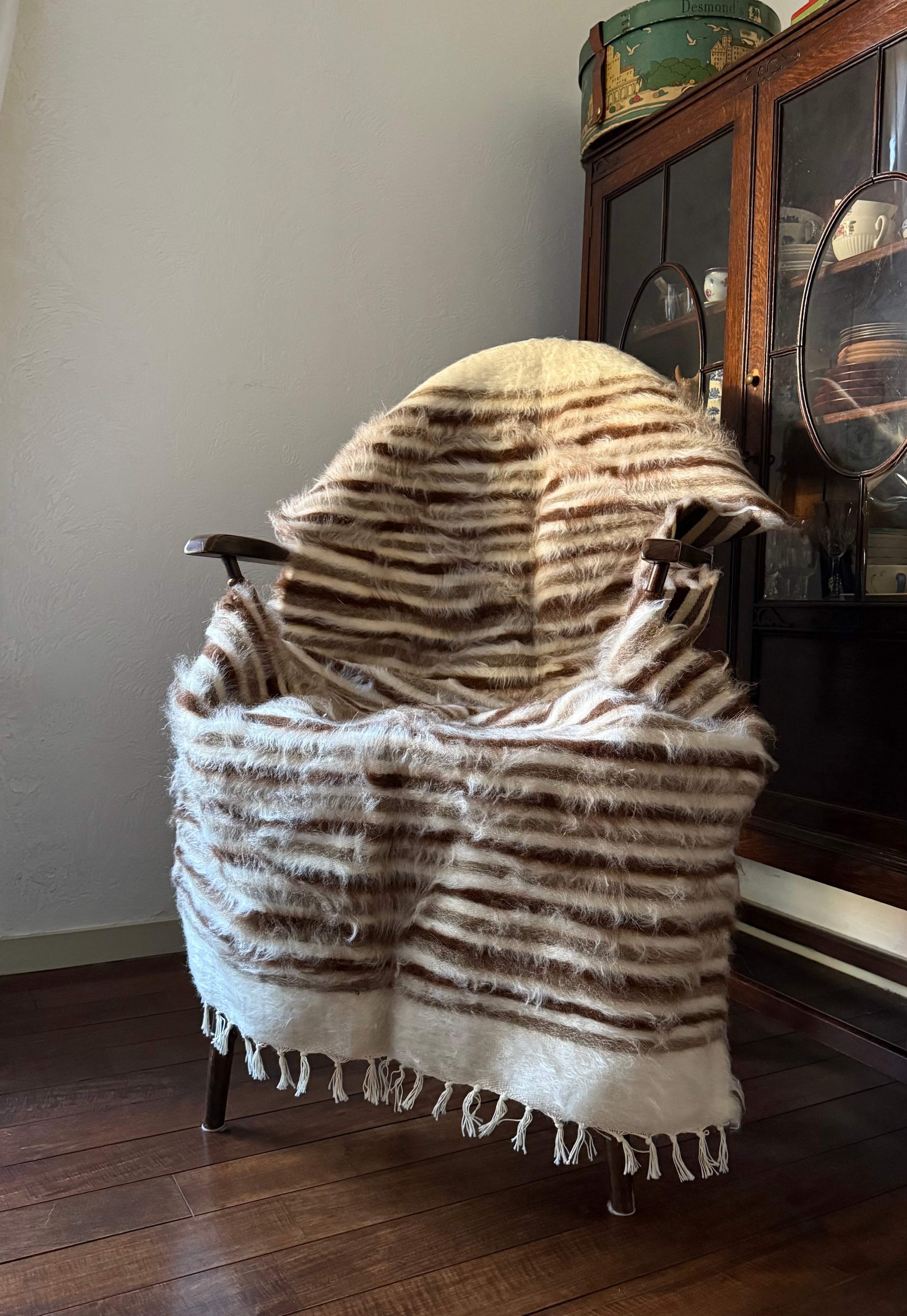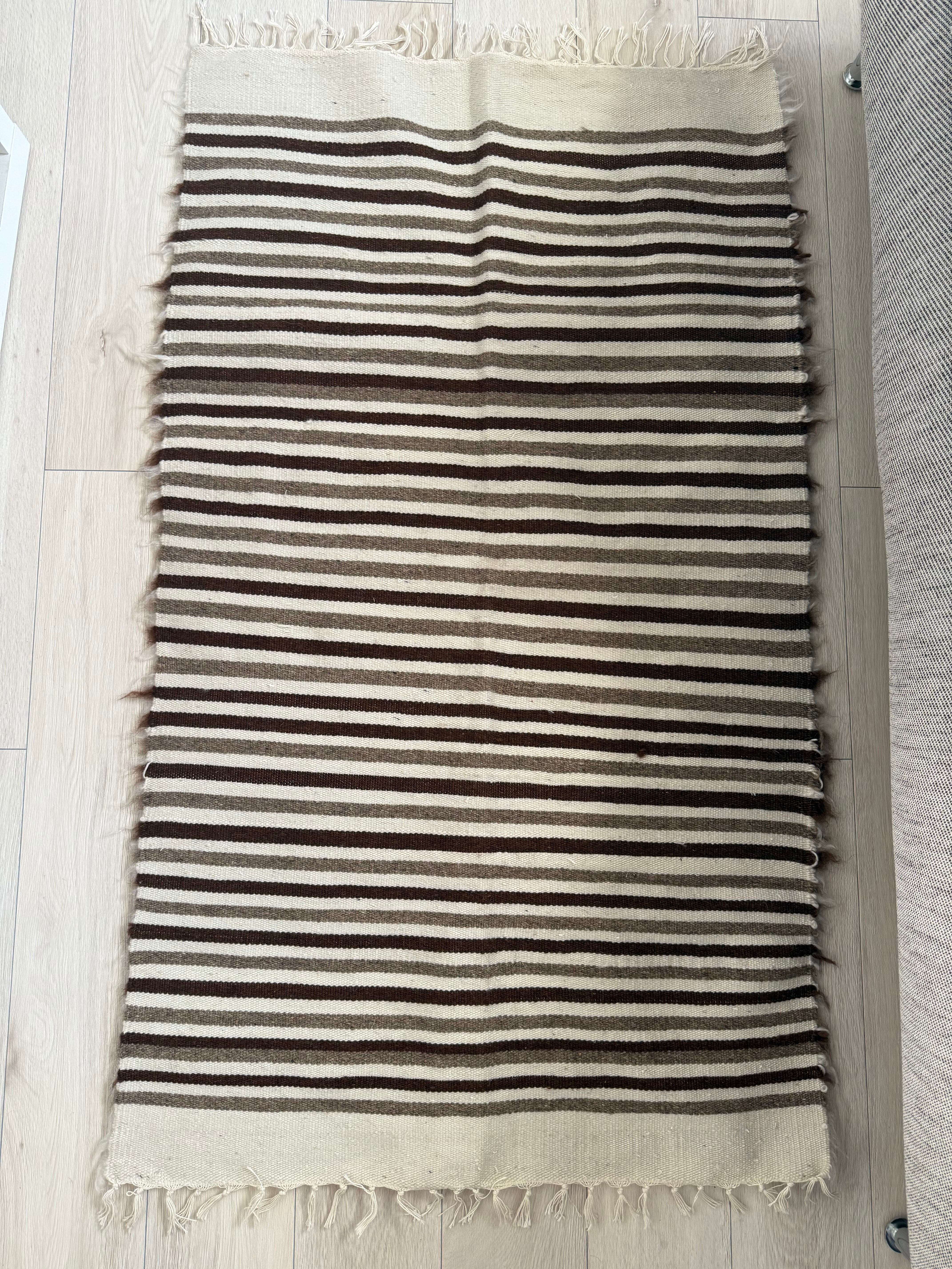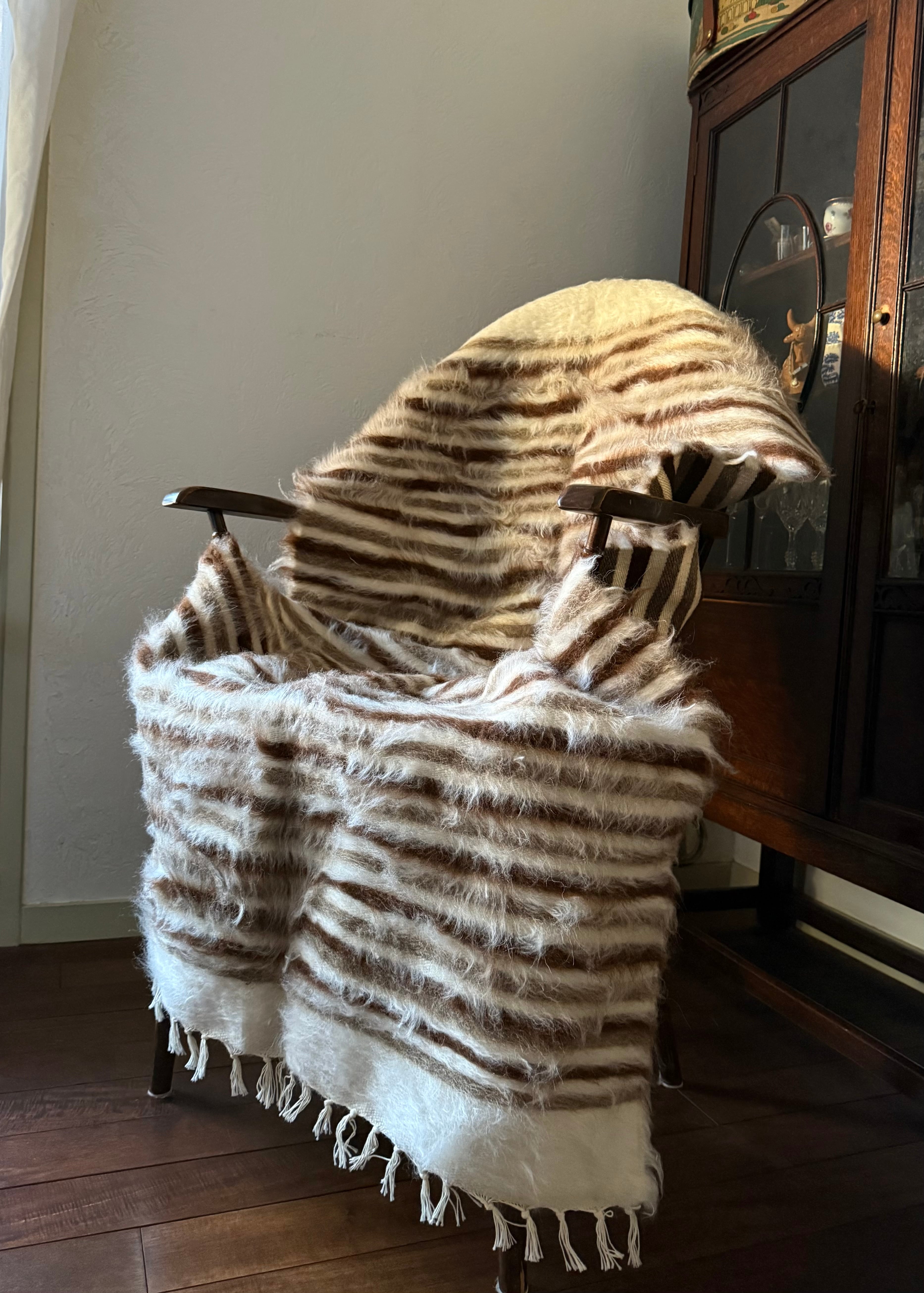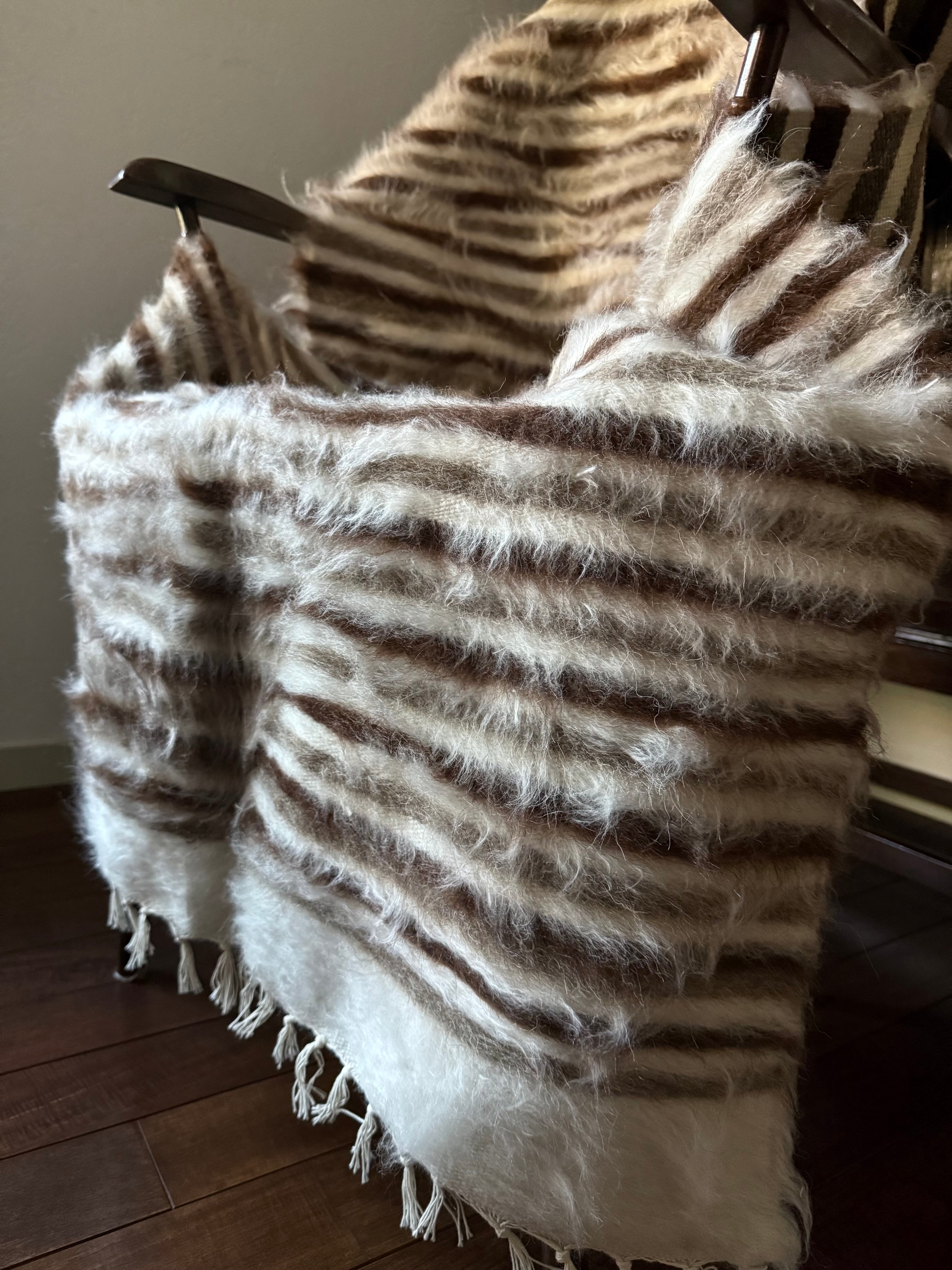 シックな色目のストライプなので、家具や空間にもなじみ、柔らかな毛の雰囲気が程よいアクセントをプラスしてくれます。