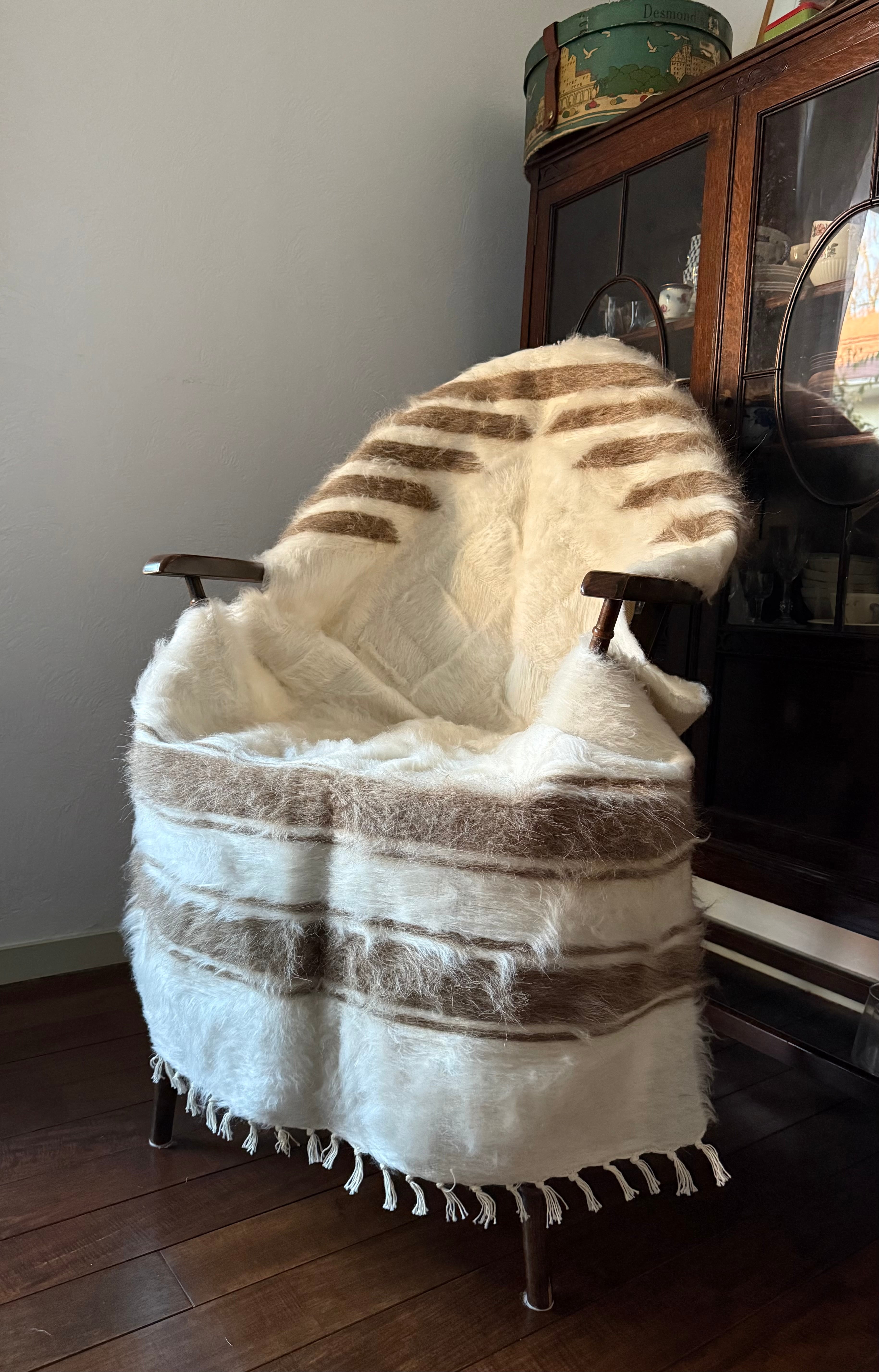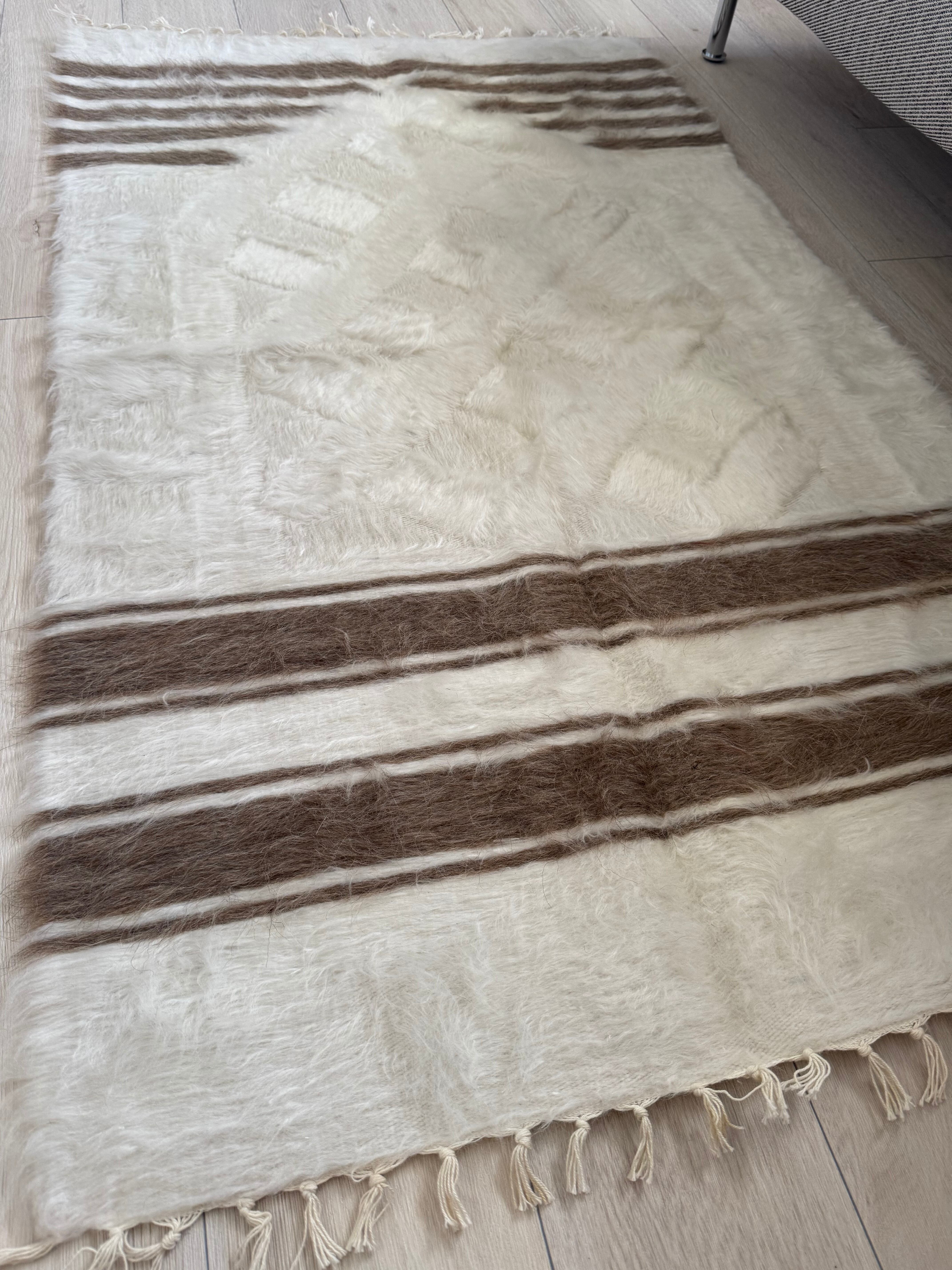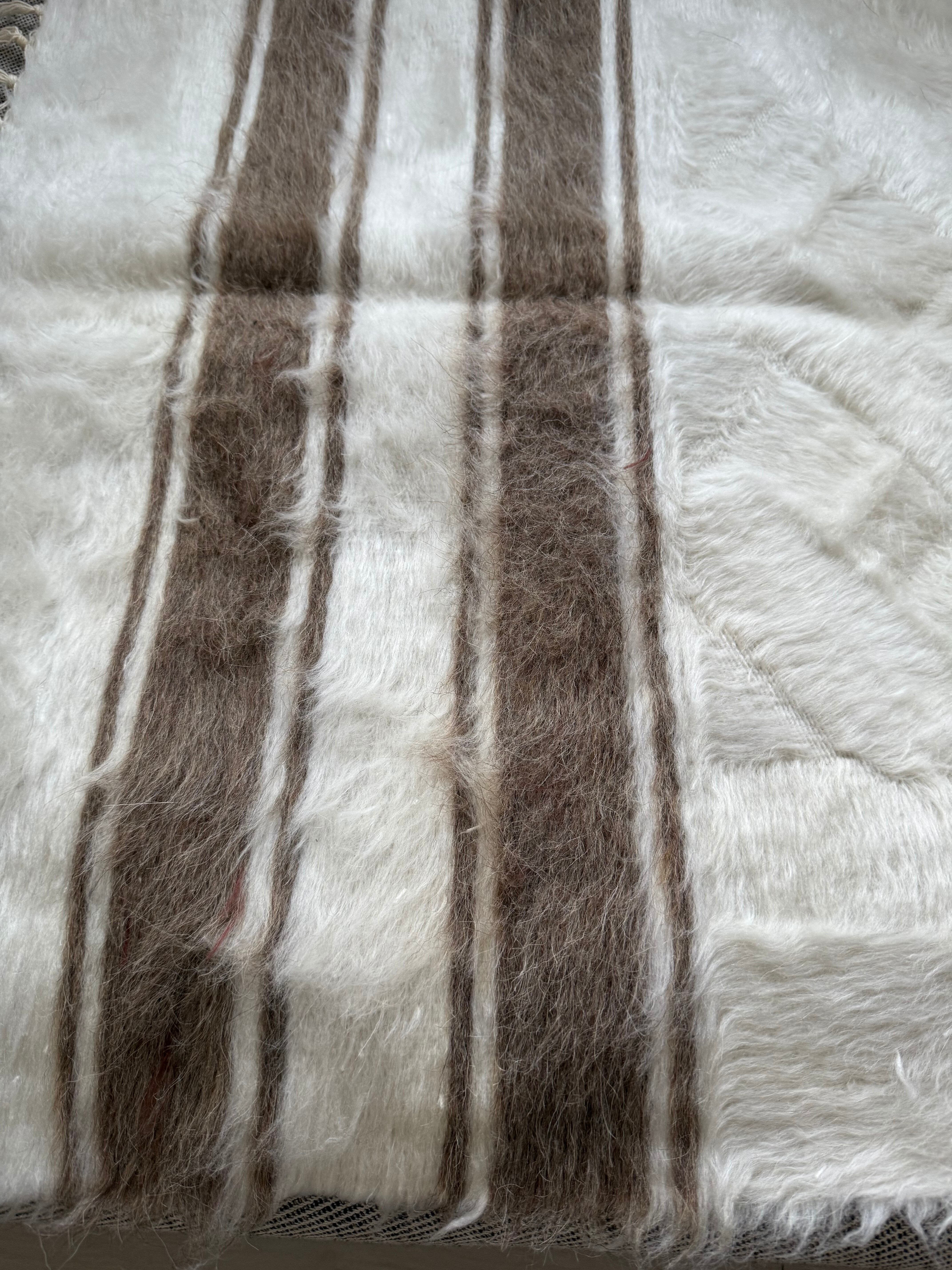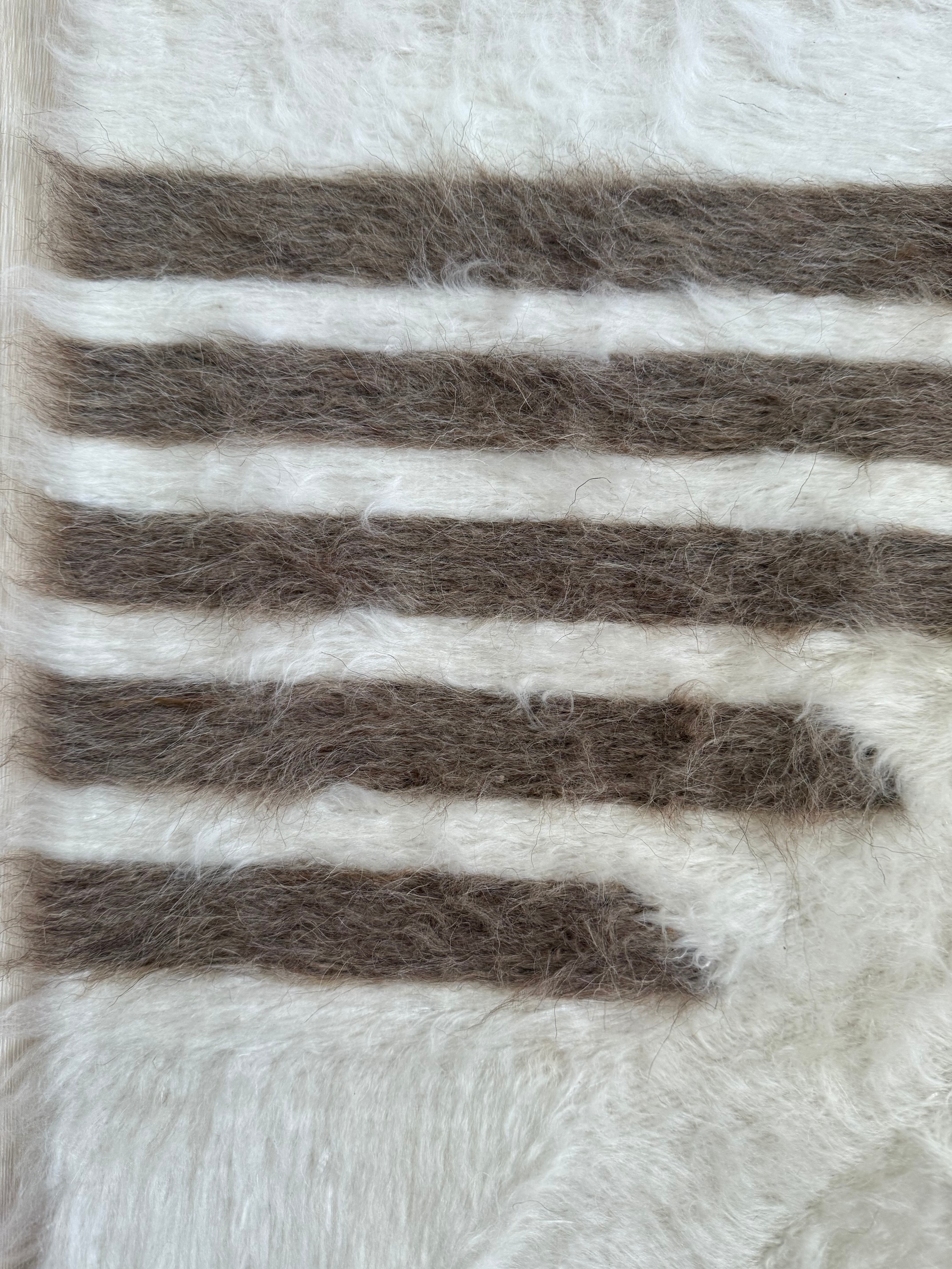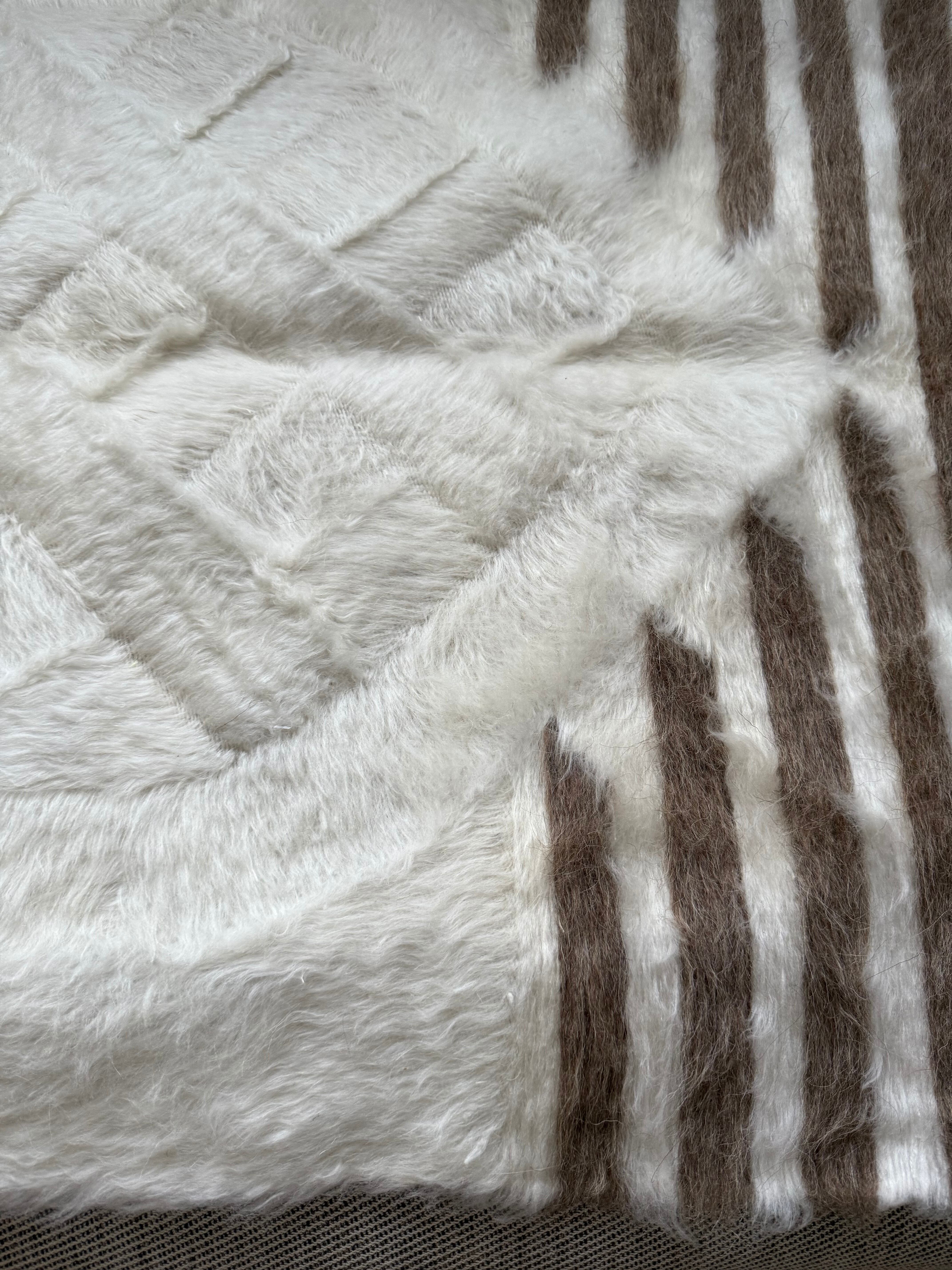 アンゴラ山羊の毛量はヴィンテージに比べて少ないのですが、布自体がしっかりとしていて、ラグとして気軽にどこにでも使いやすいものになります。