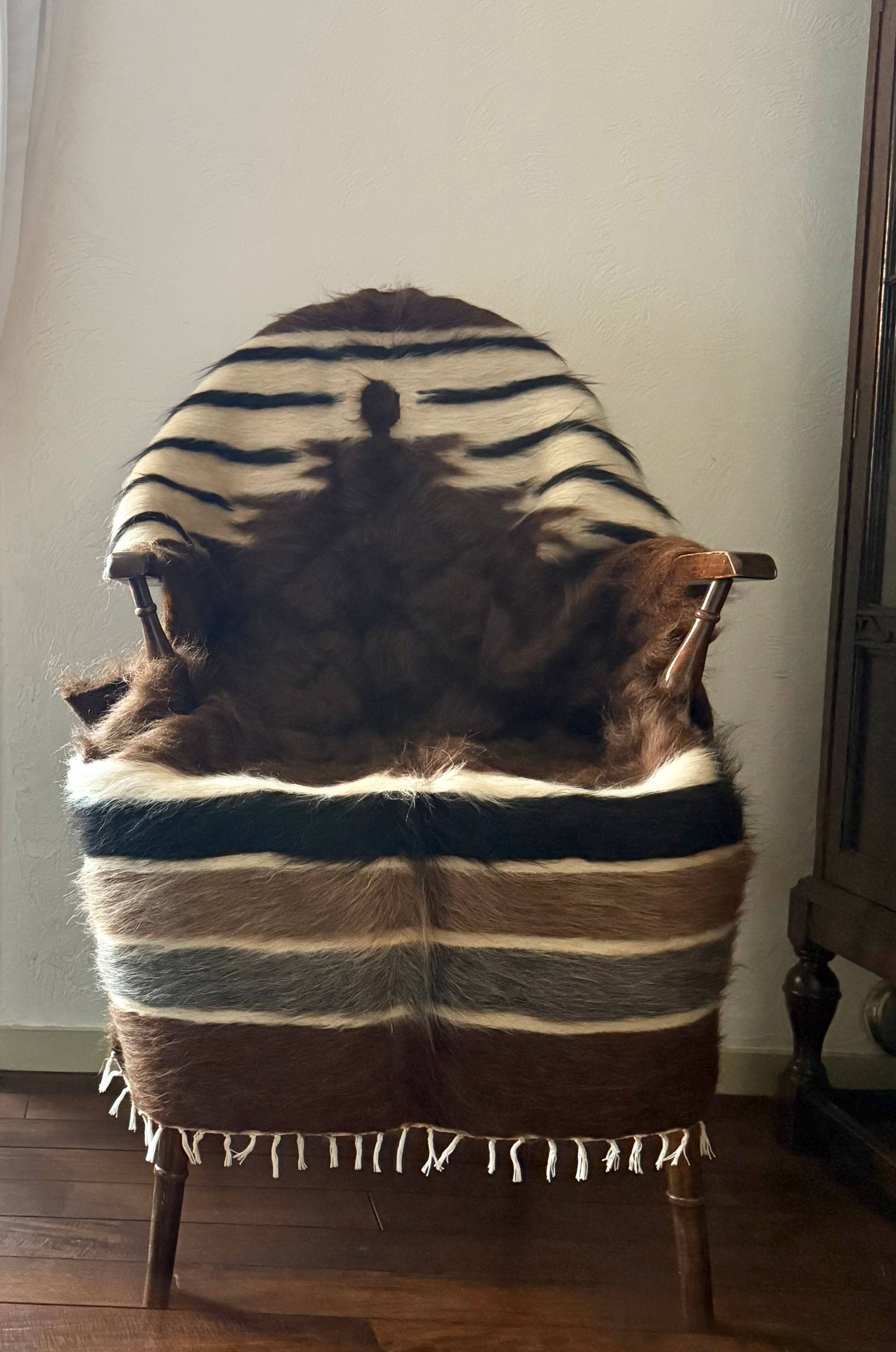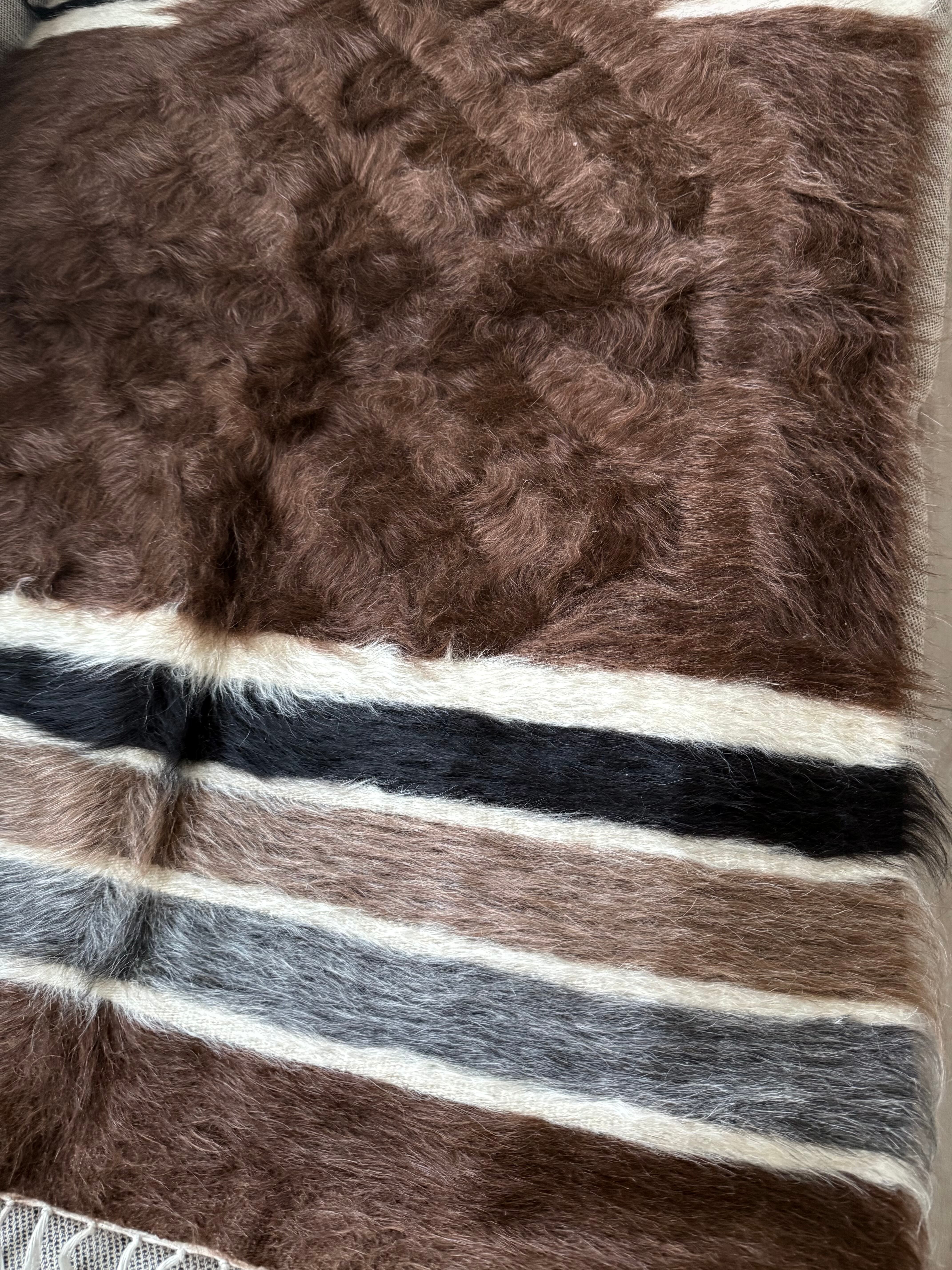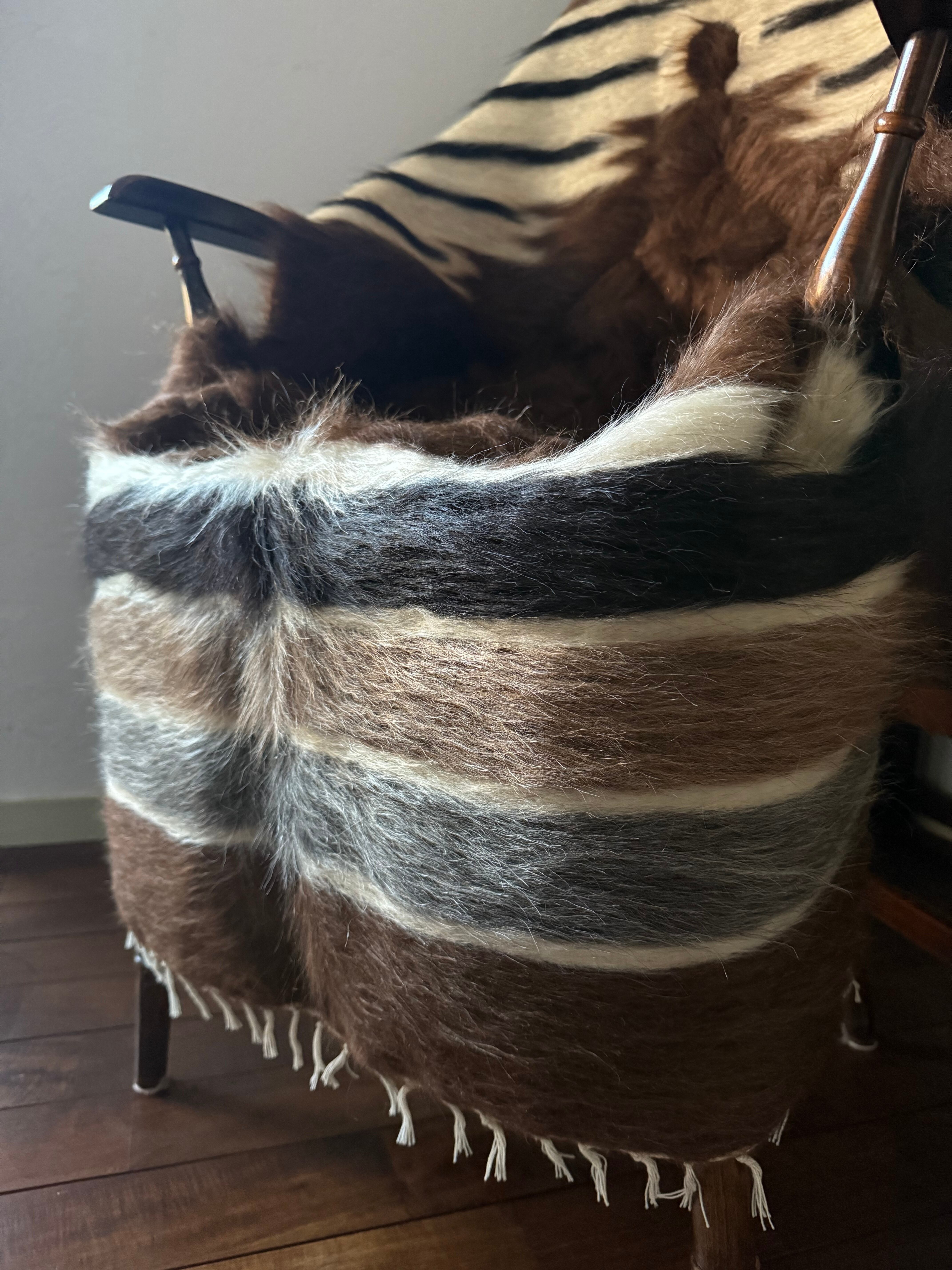 山羊の毛そのままの色を生かし、染めずに織られているバッターニエは、クリーム、黒、茶色、キャメル、グレーがメインの色合いです。