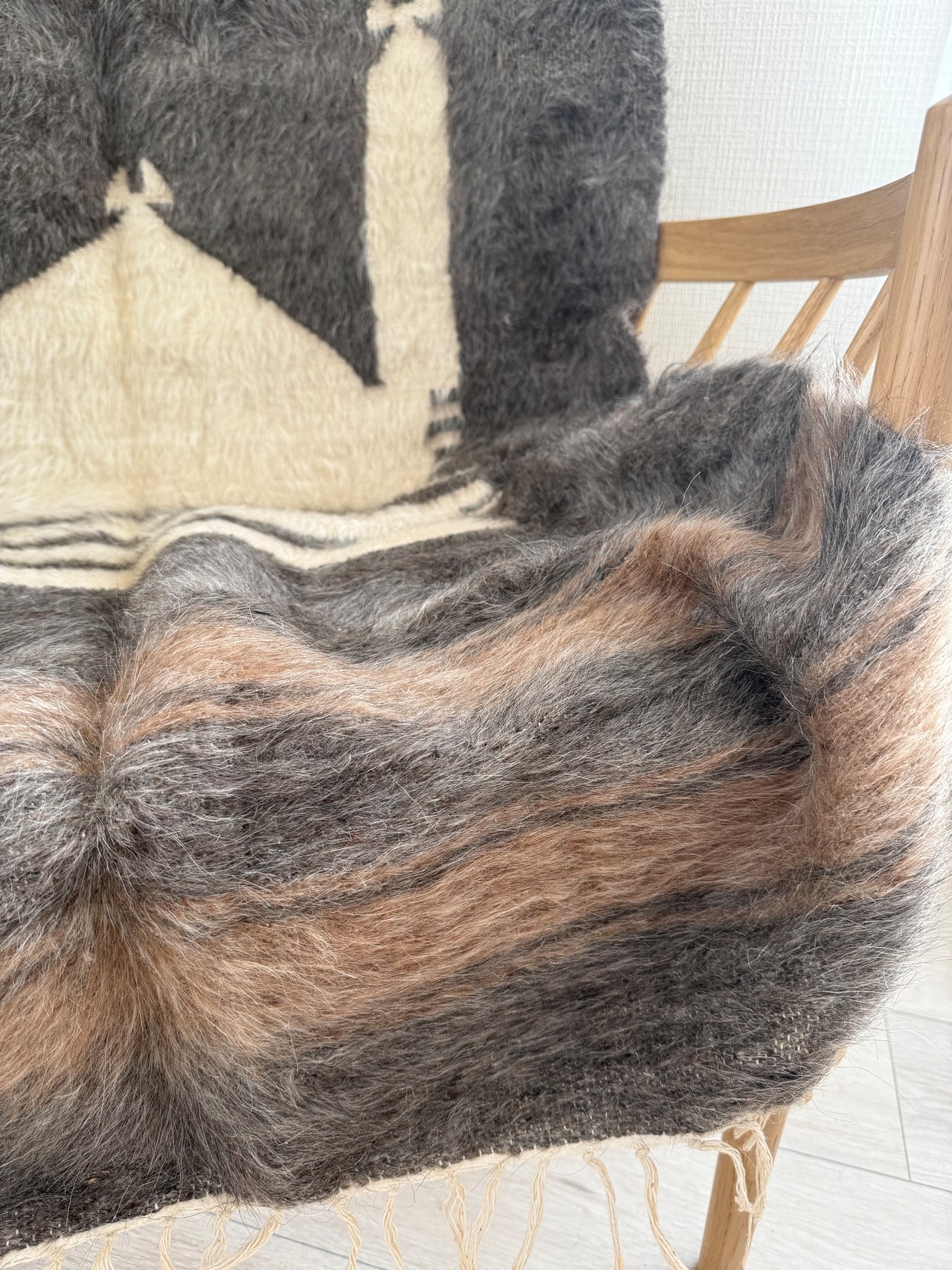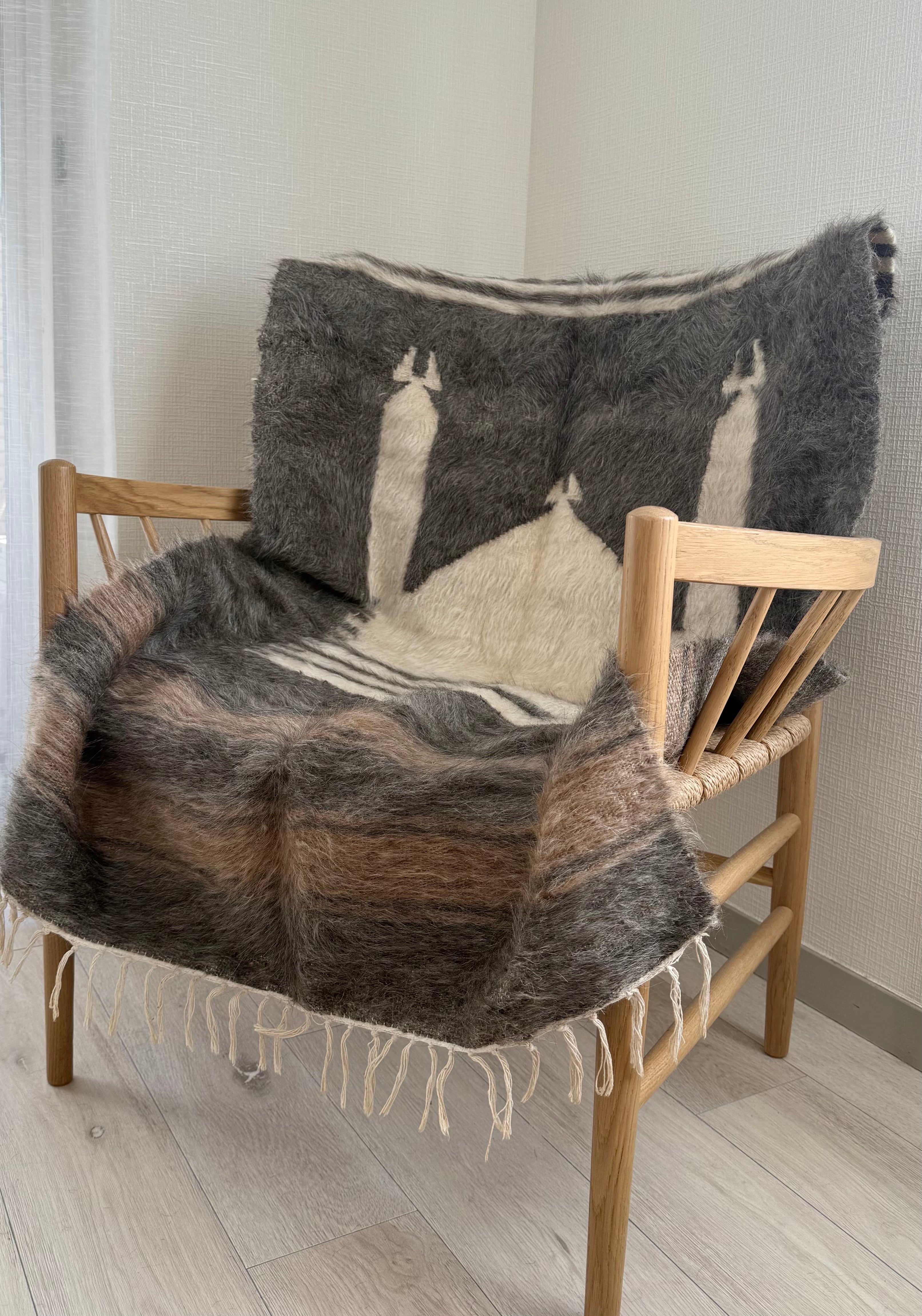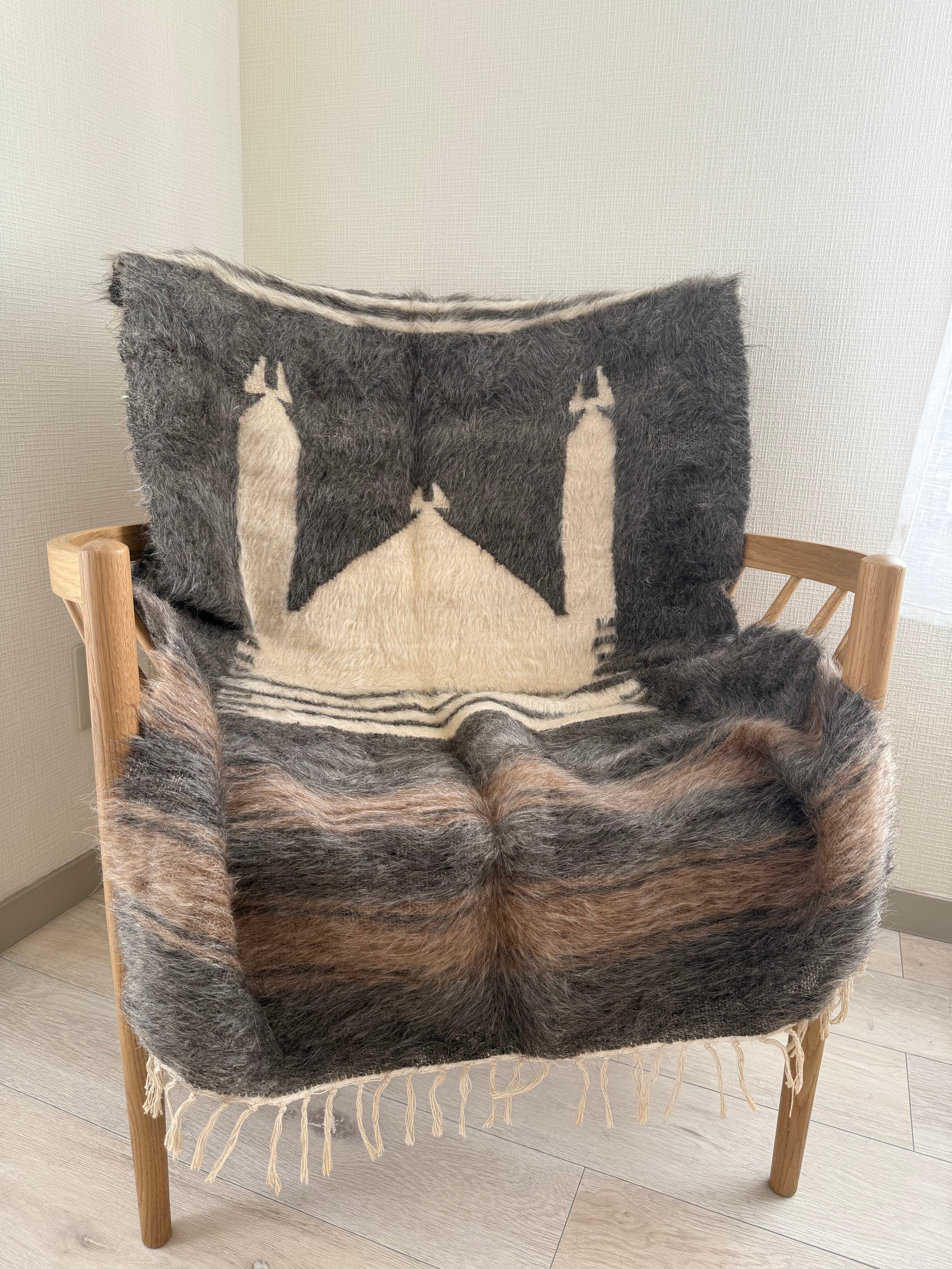 山羊の毛そのままの色を生かし、一切染めずに織られているバッターニエは、クリーム、黒、茶色、キャメル、グレーがメインの色合いです。