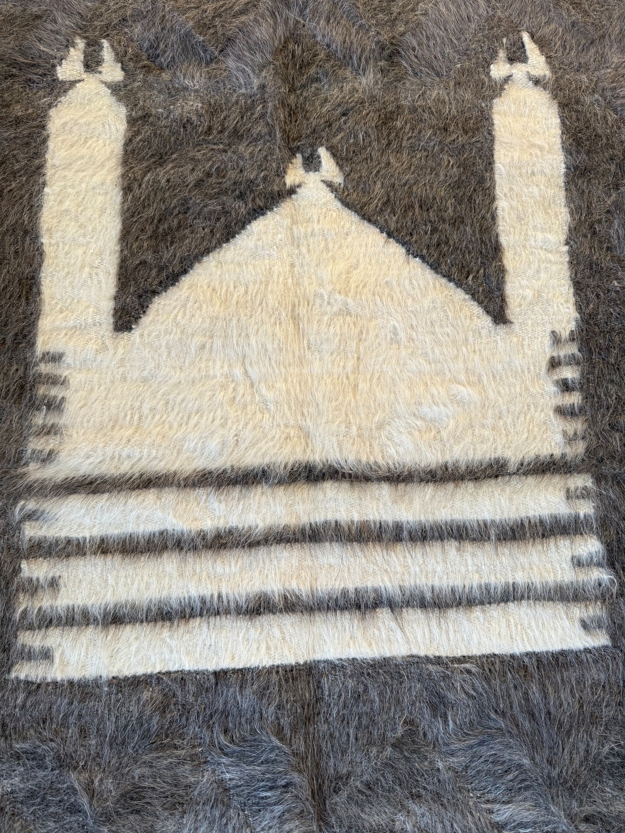 ミナレットといわれる塔(ここから鐘が鳴ります)も2本描かれており、ホワイトの毛の艶も相まって、荘厳な美しさもありながら、柄はシンプルで、白い家のよう。イラストのような可愛らしさも感じます。