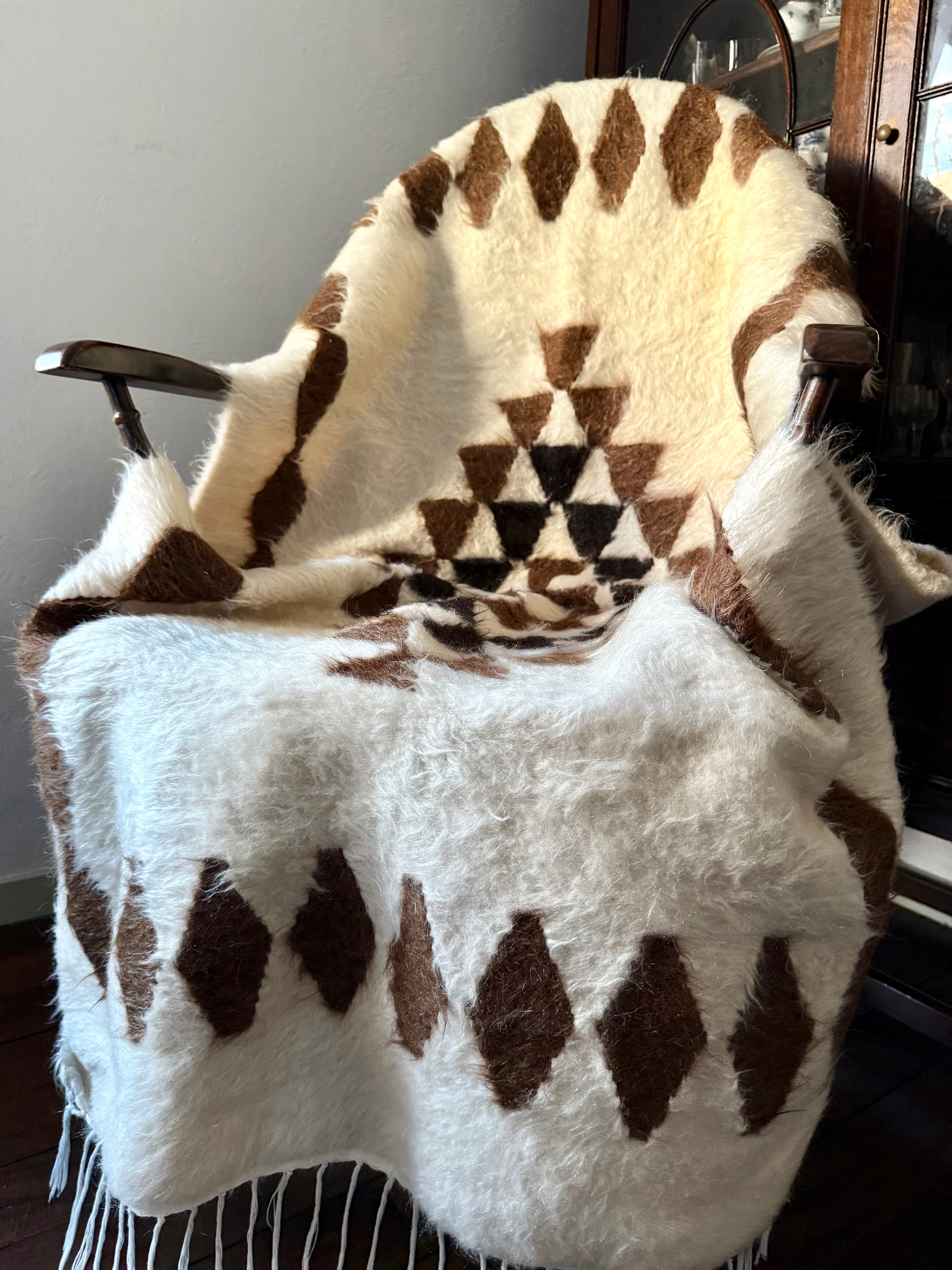 山羊の毛そのままの色を生かし、染めずに織られているバッターニエは、クリーム、黒、茶色、キャメル、グレーがメインの色合いです。