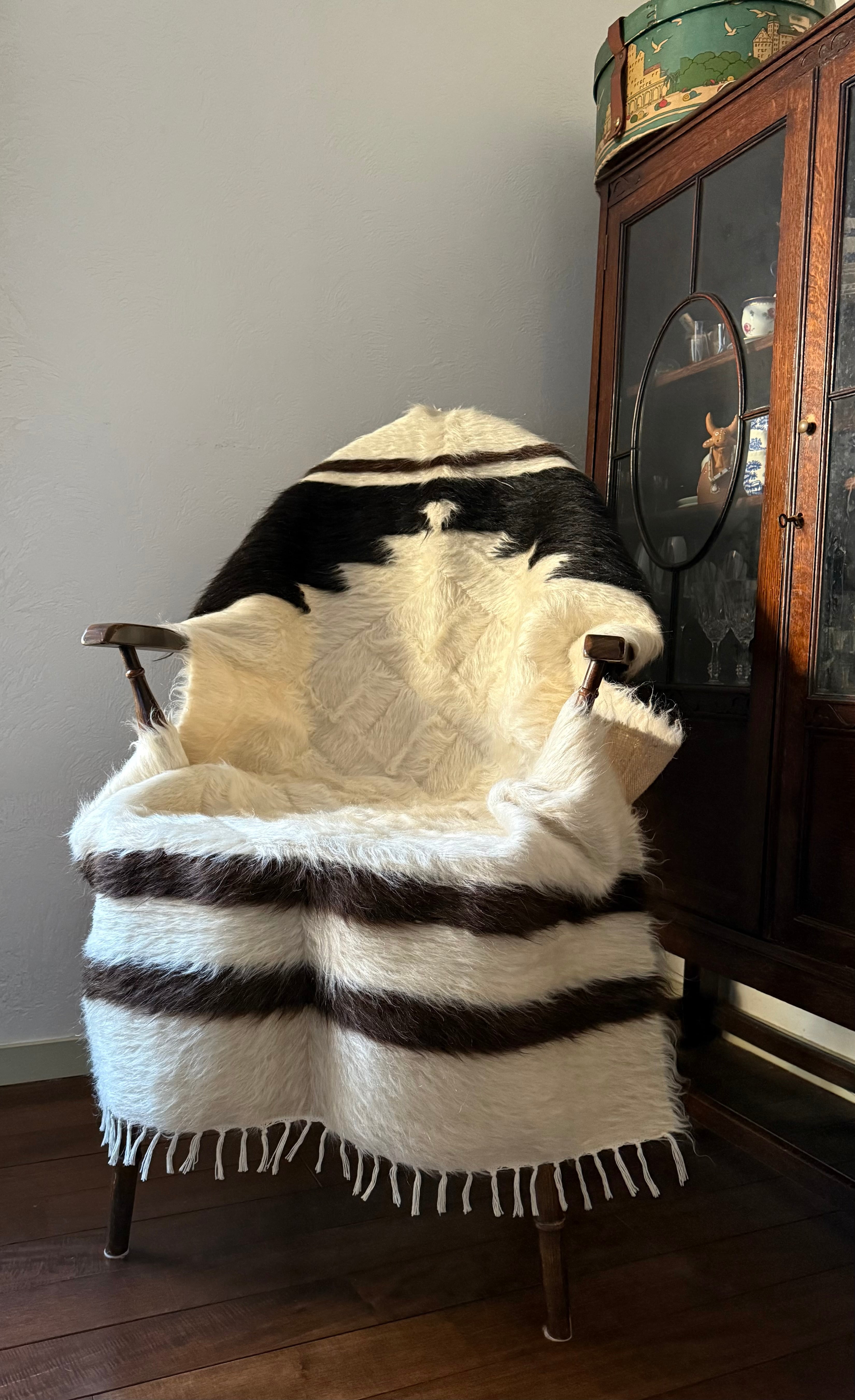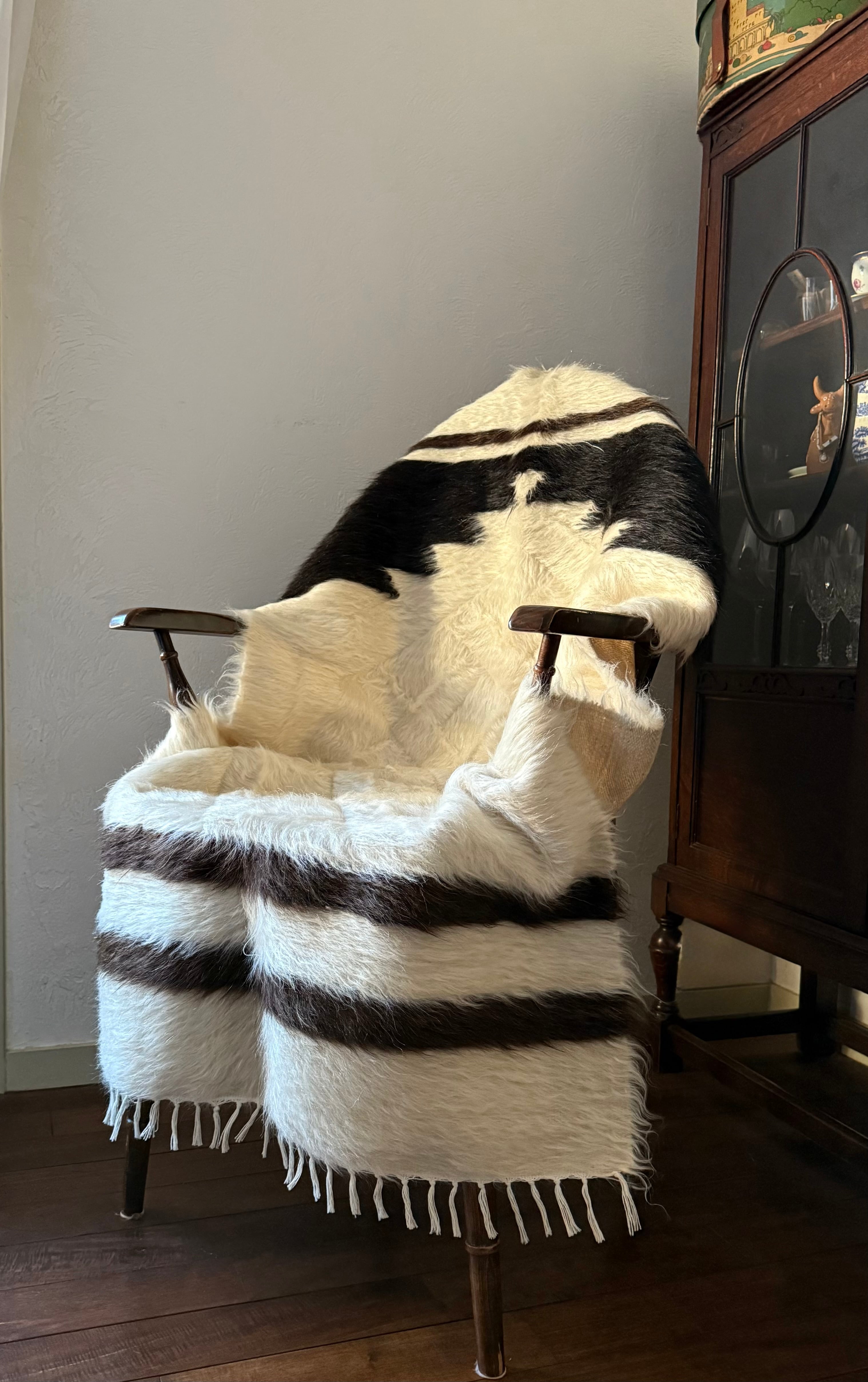山羊の毛の色を生かし、染めずに織られているヴィンテージバッターニエは、クリーム、黒、茶色、キャメル、グレーがメインの色合いです。