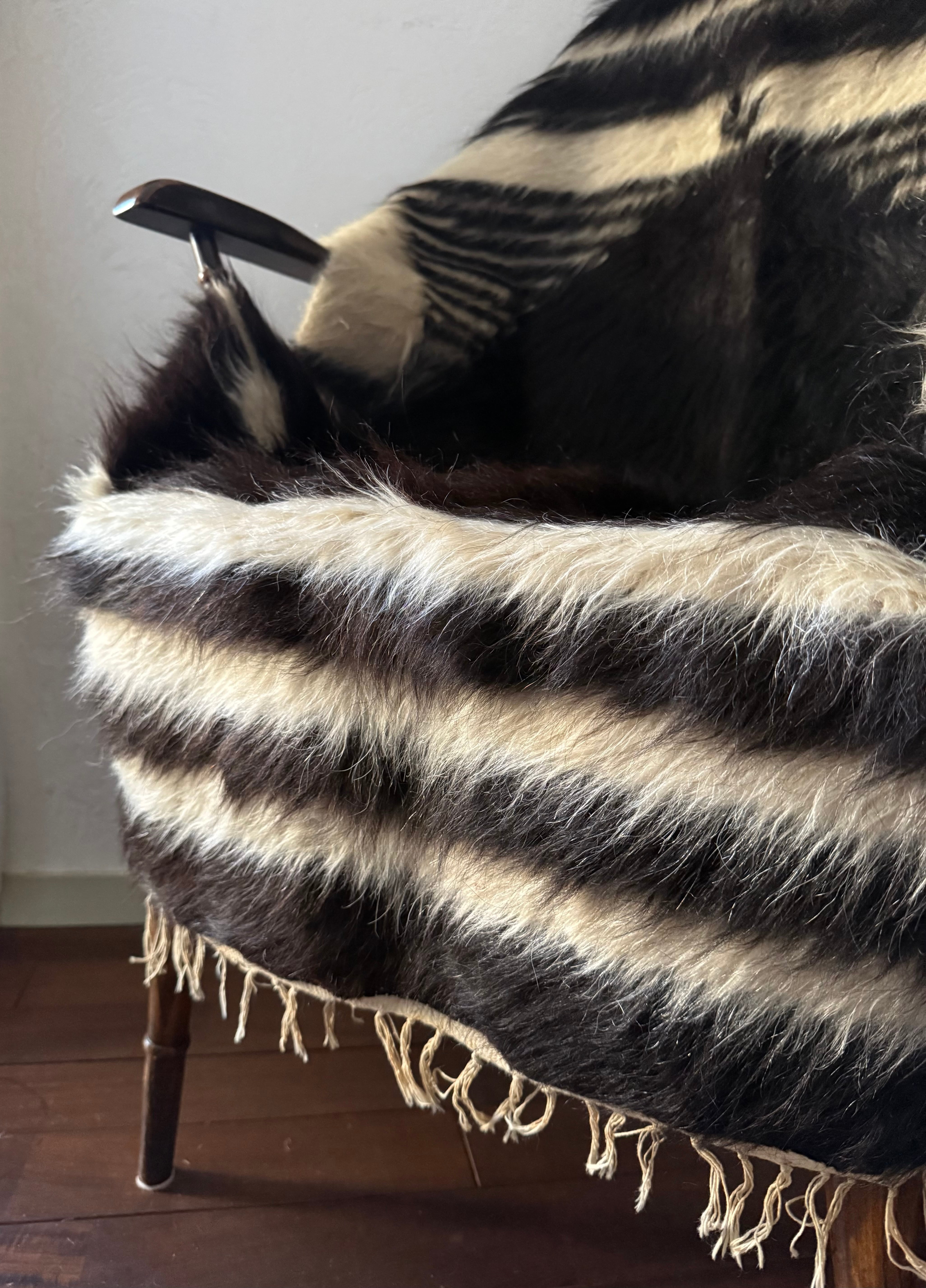 山羊の毛そのままの色を生かし、染めずに織られているバッターニエは、クリーム、黒、茶色、キャメル、グレーがメインの色合いです。