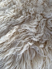 織り方はざっくりとしていて、いかにも家庭で織られてきた手織りの織り物。紡いだ長い羊の毛を織り込んでいます。