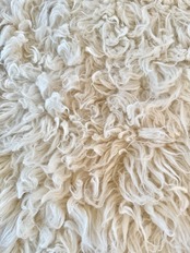 織り方はざっくりとしていて、いかにも家庭で織られてきた手織りの織り物。紡いだ長い羊の毛を織り込んでいます。