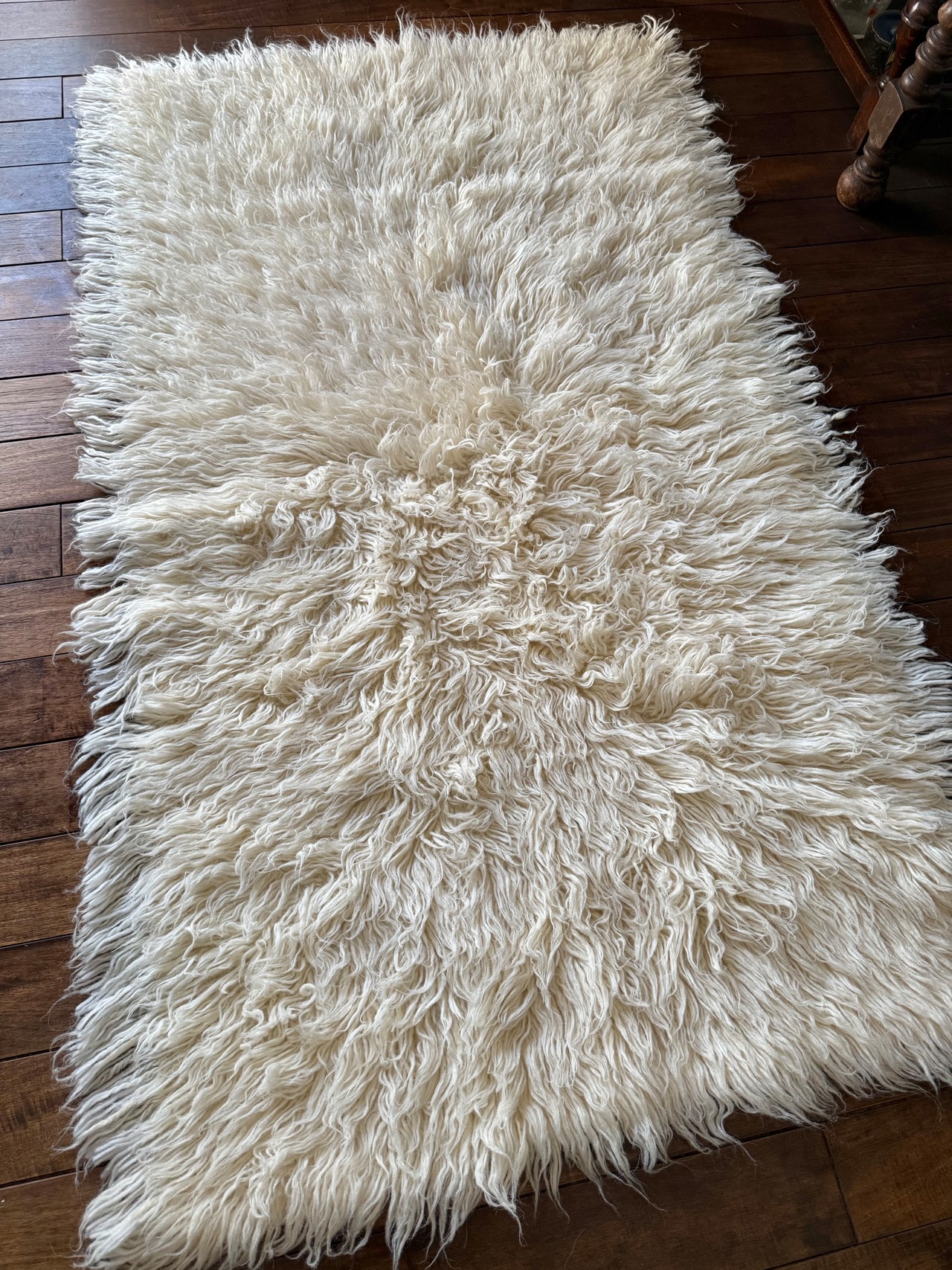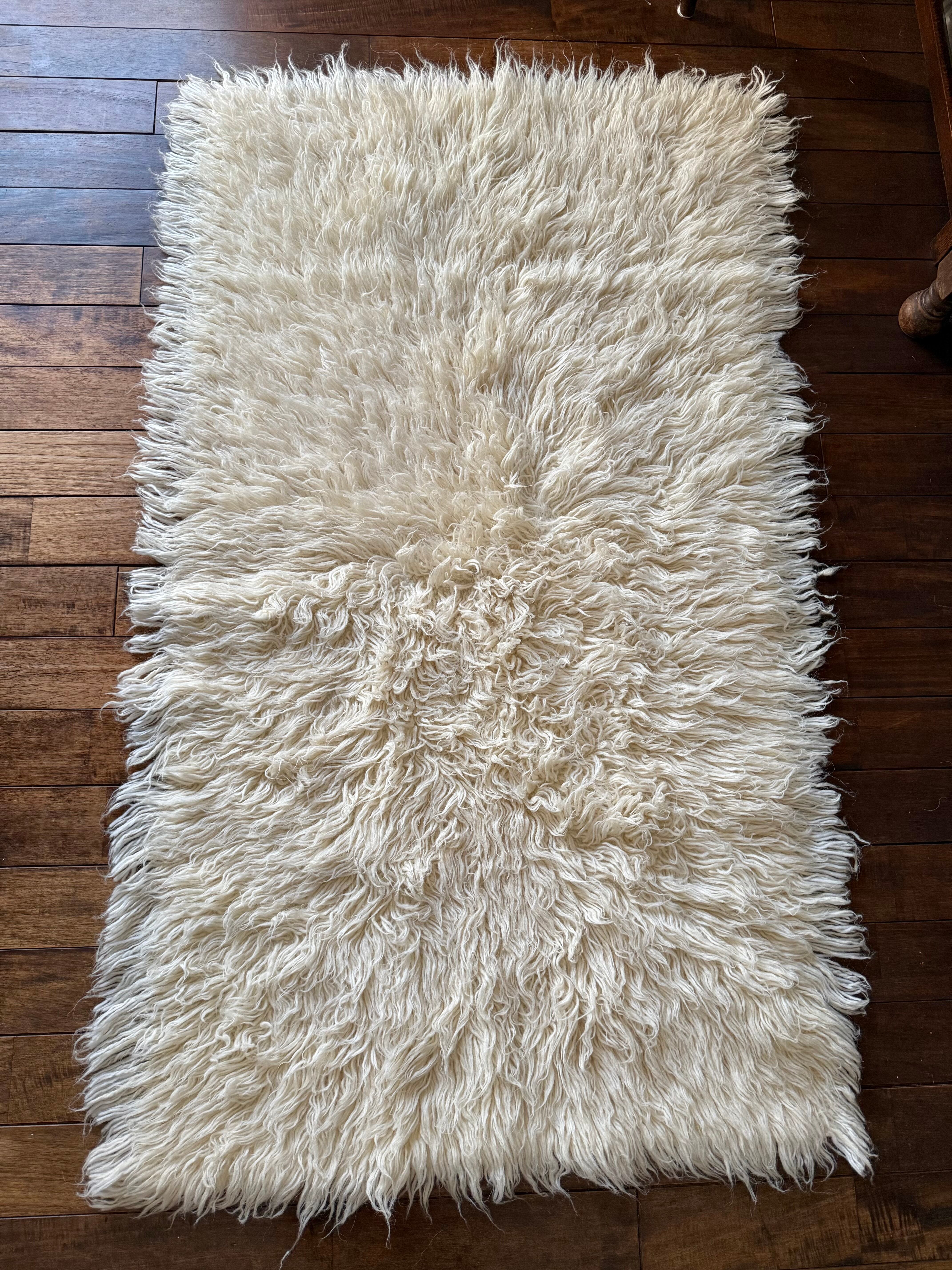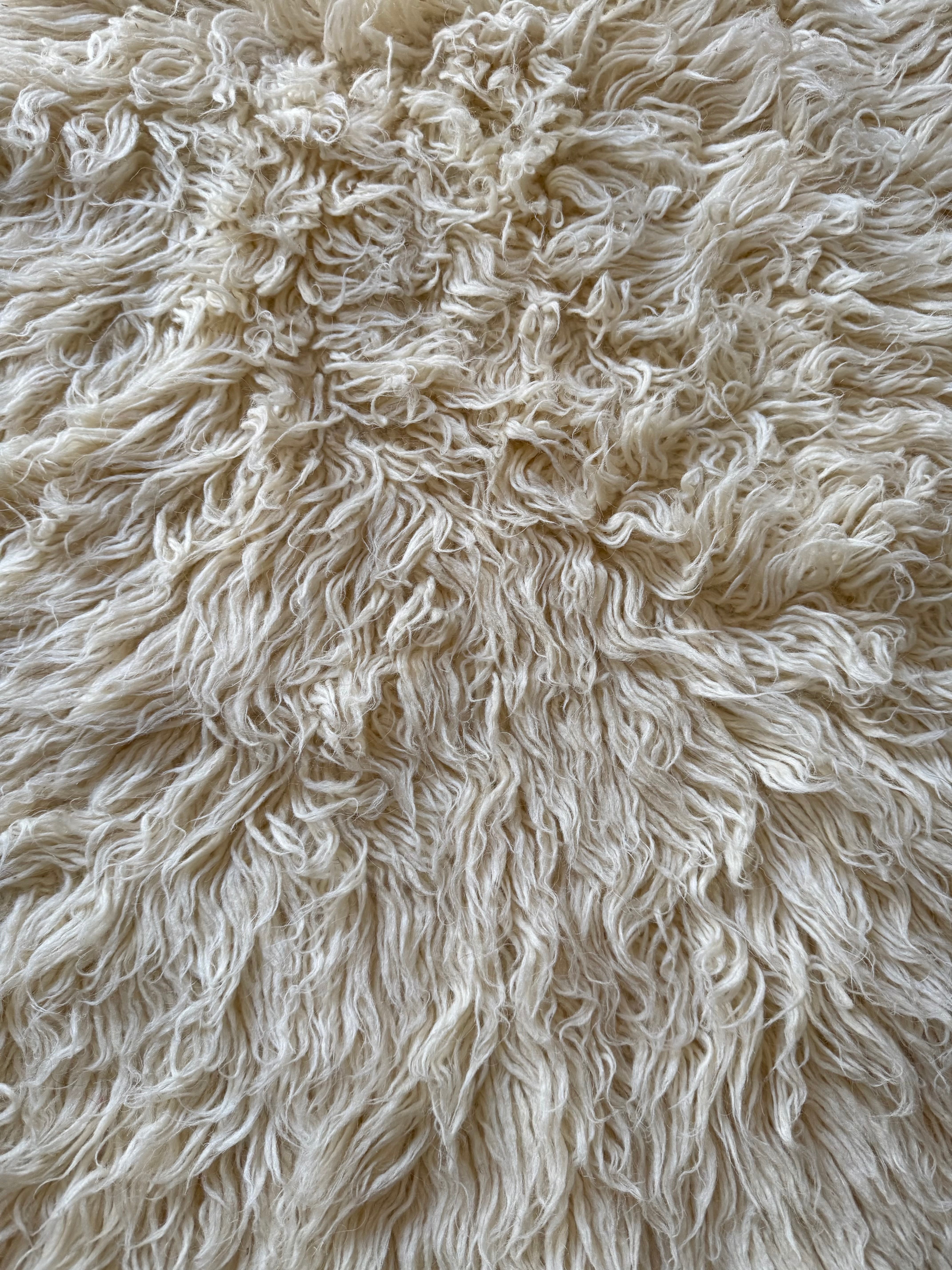 トゥルのMサイズ。やわらかなほんのりとクリームがかったホワイトで、ふわふわ、ふさふさです。未使用品で、ほぼどこも薄くなっておらず、ダメージがみつからないものになります。