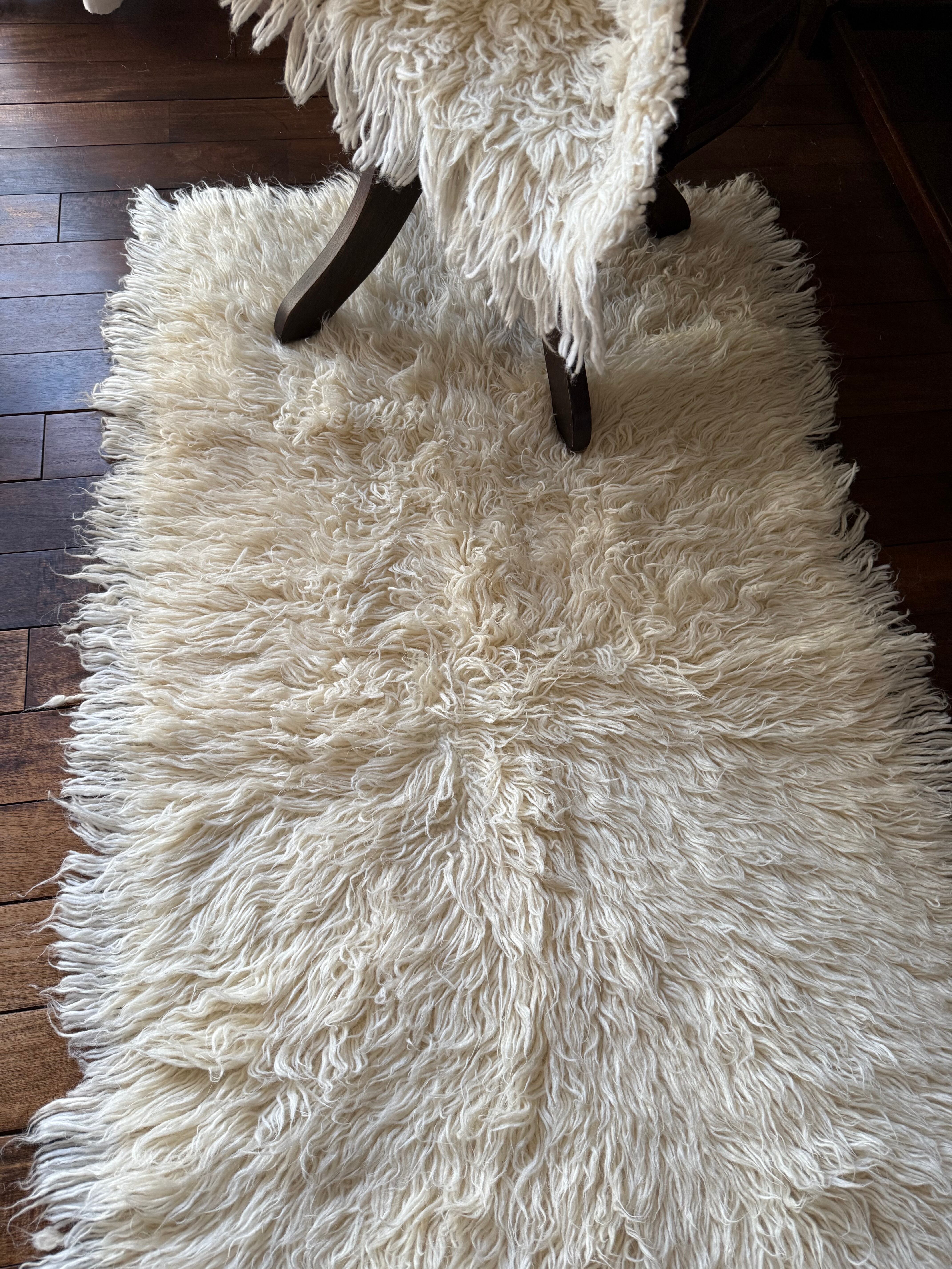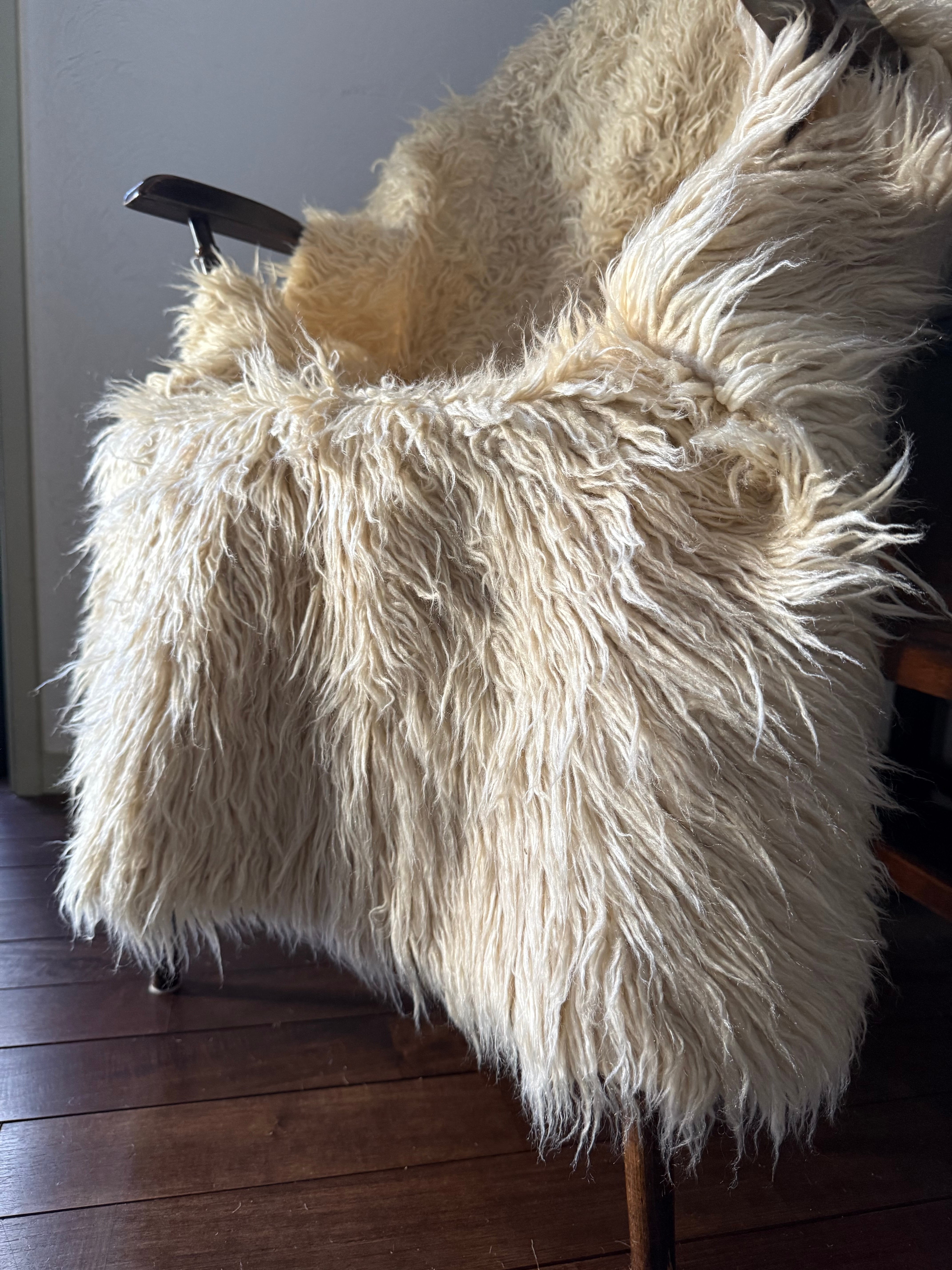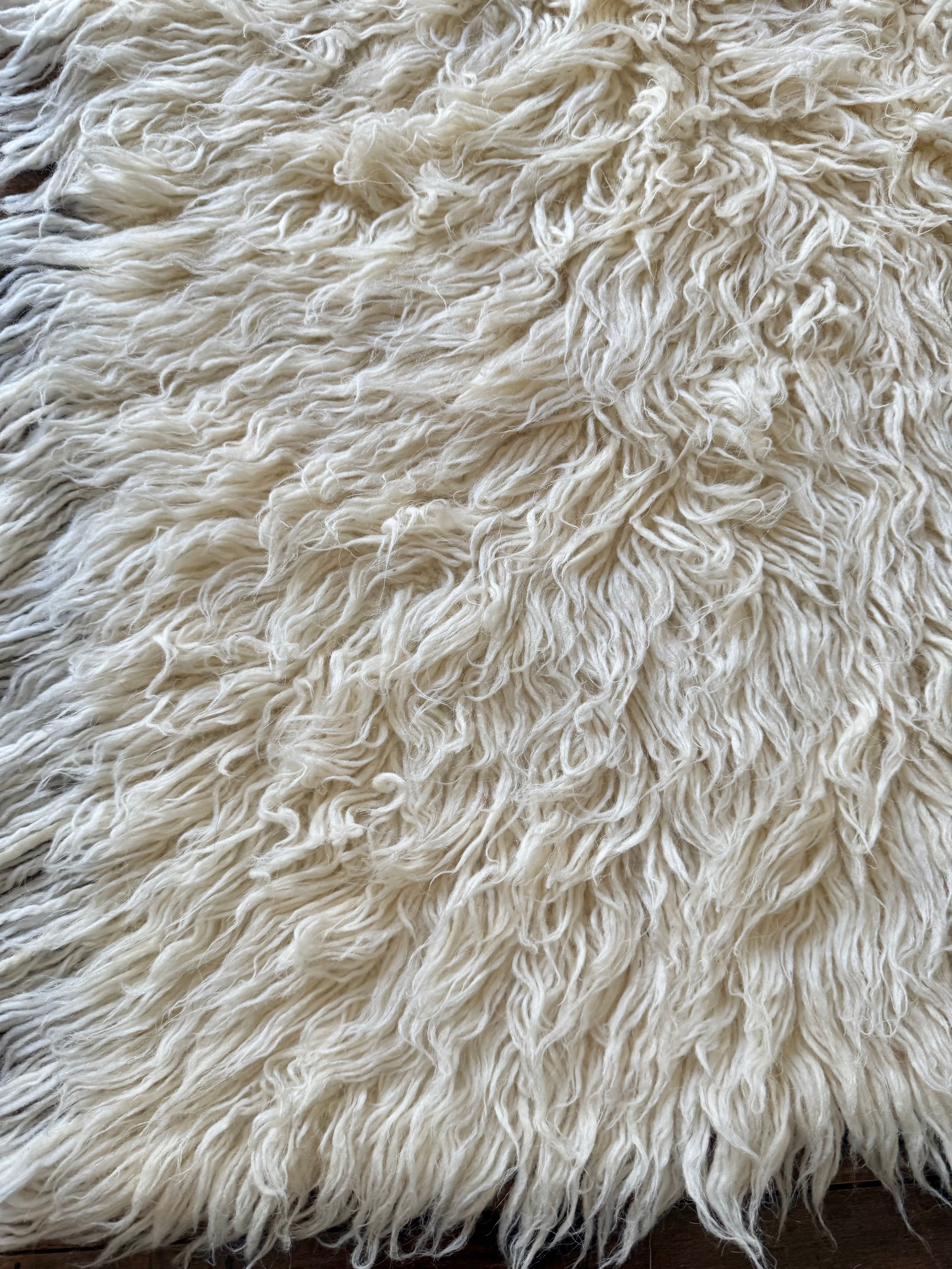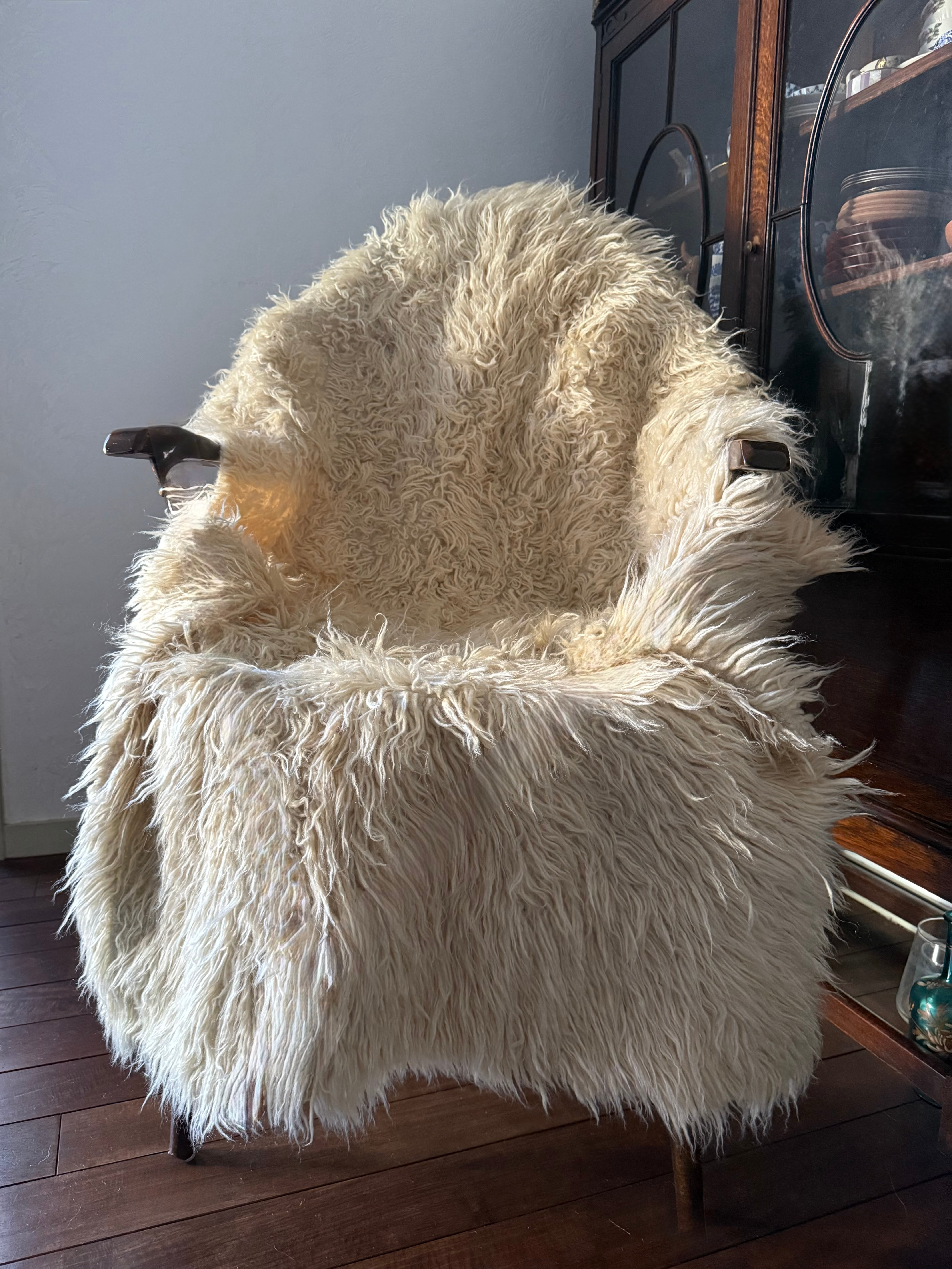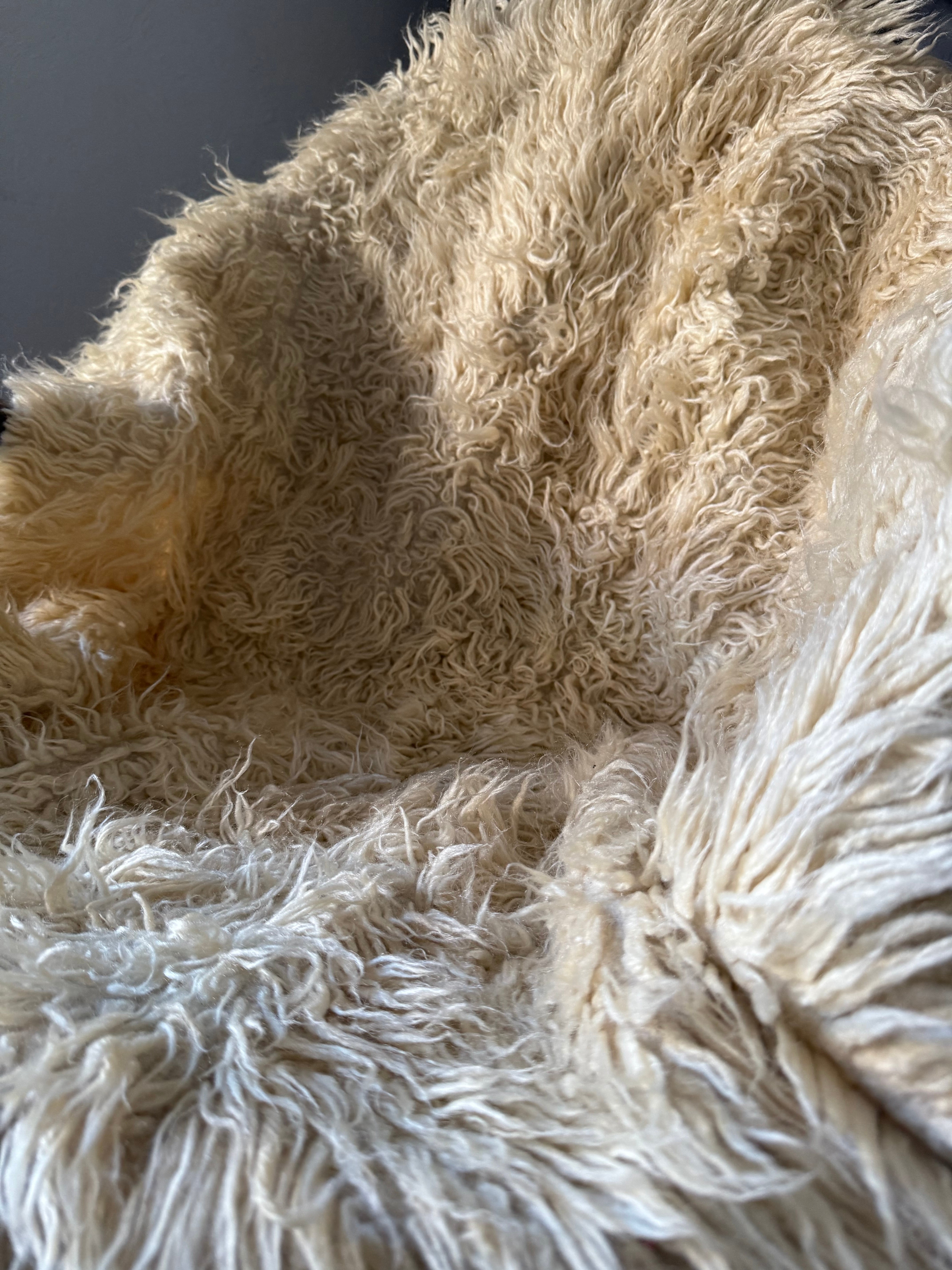 山岳地帯で暮らす遊牧民たちが自らの暮らしのために織ってきたもので、寒さを凌ぐためにこのように毛足が長い織物を作るようになったようです。