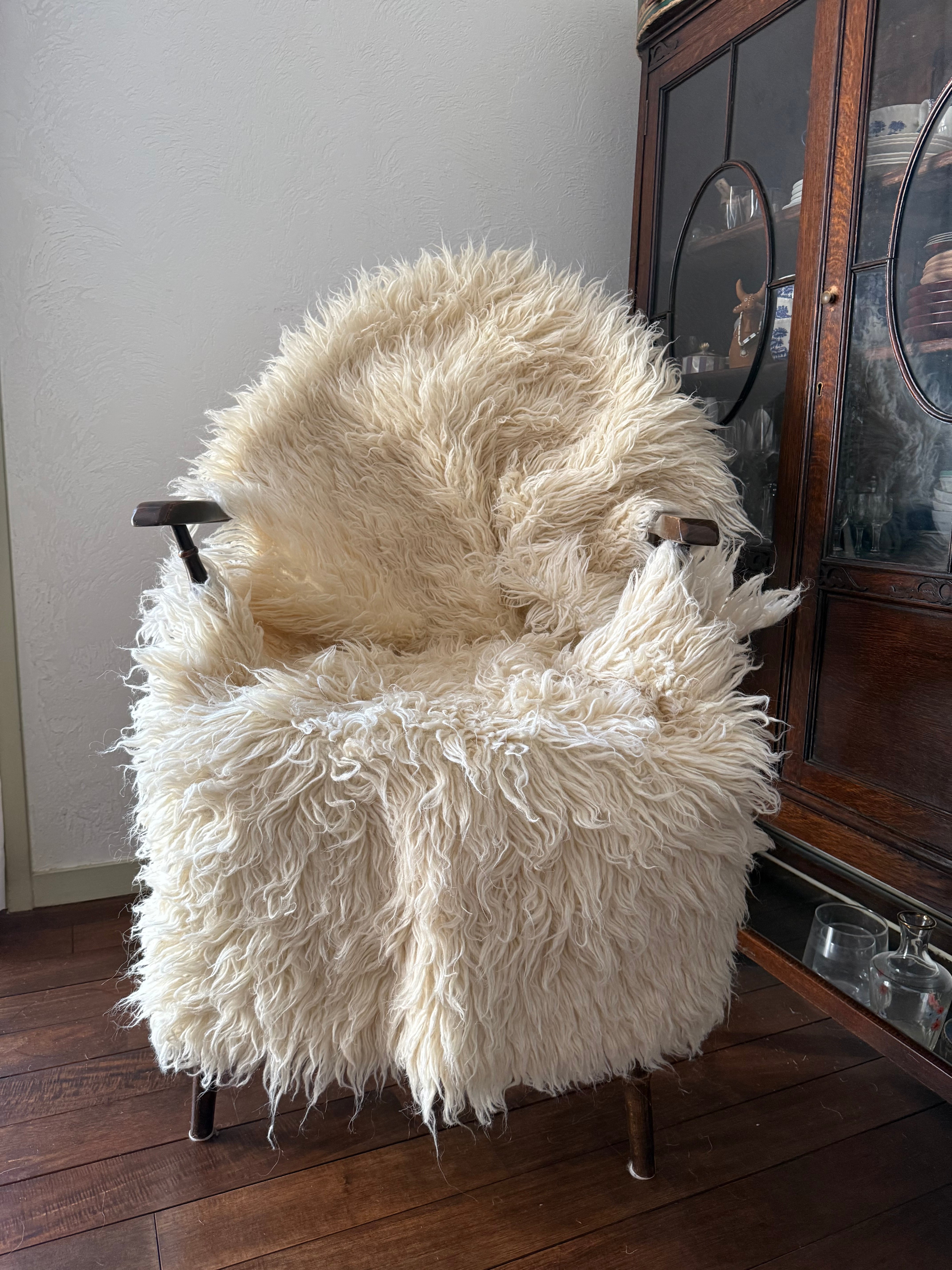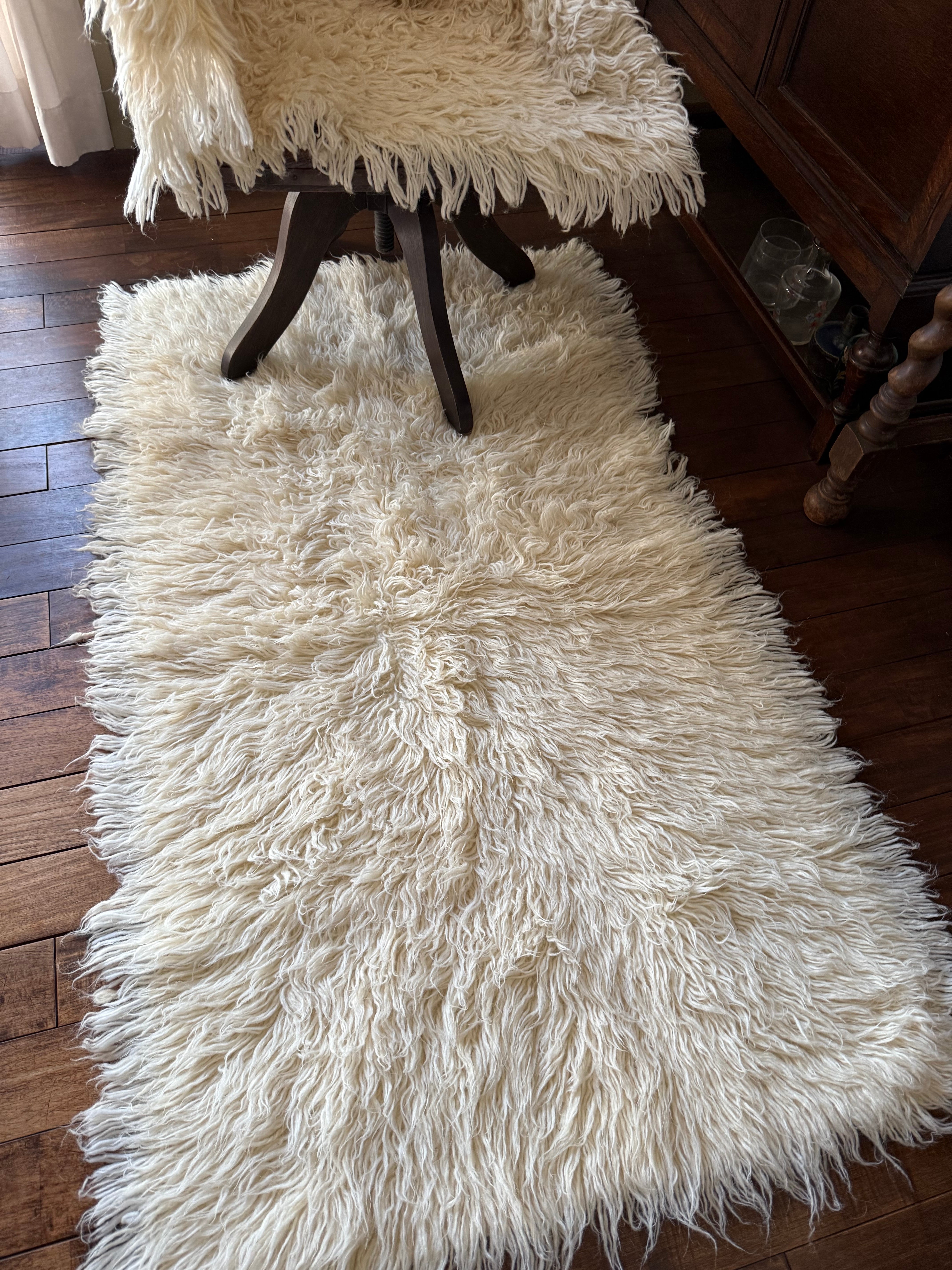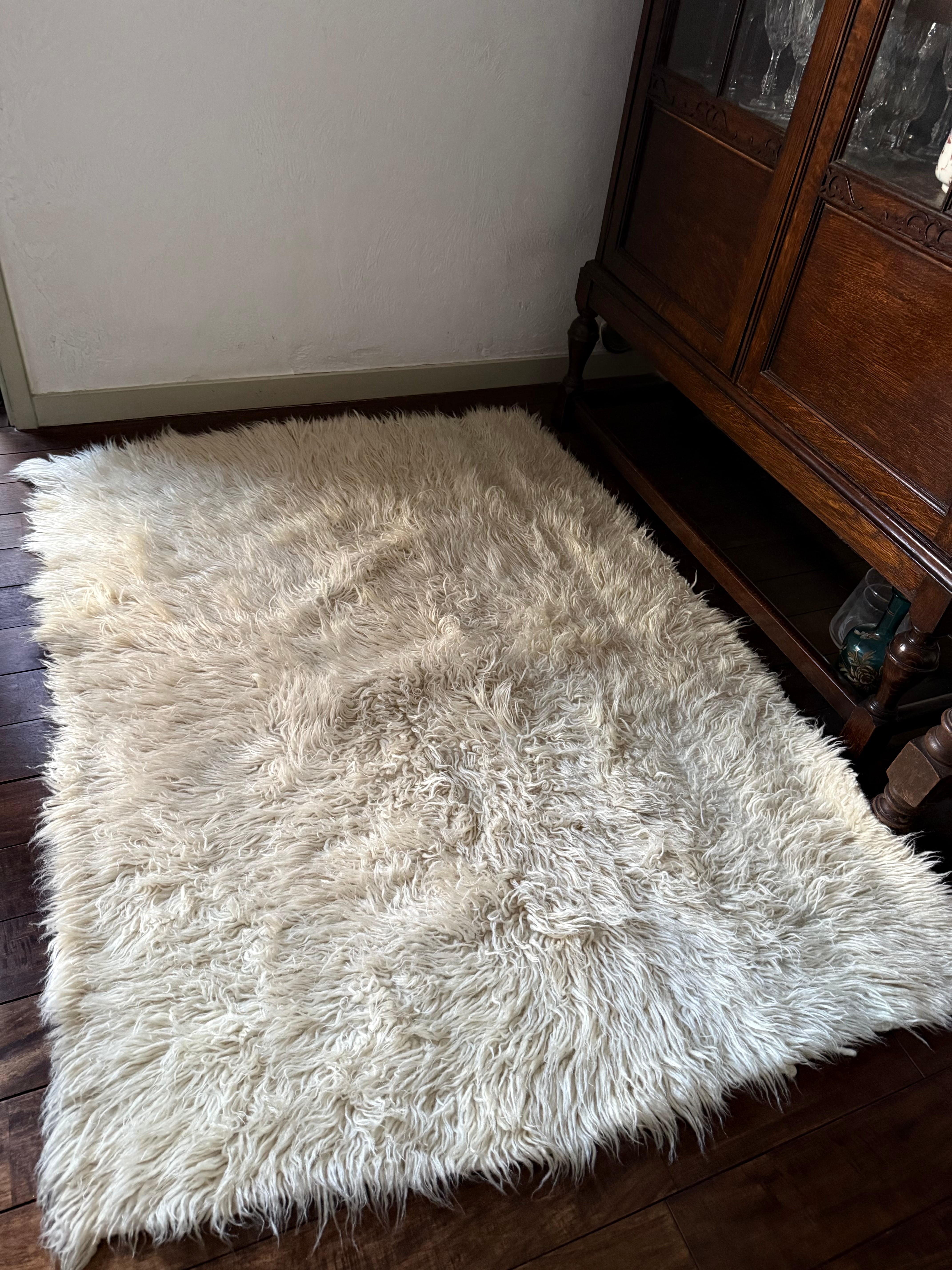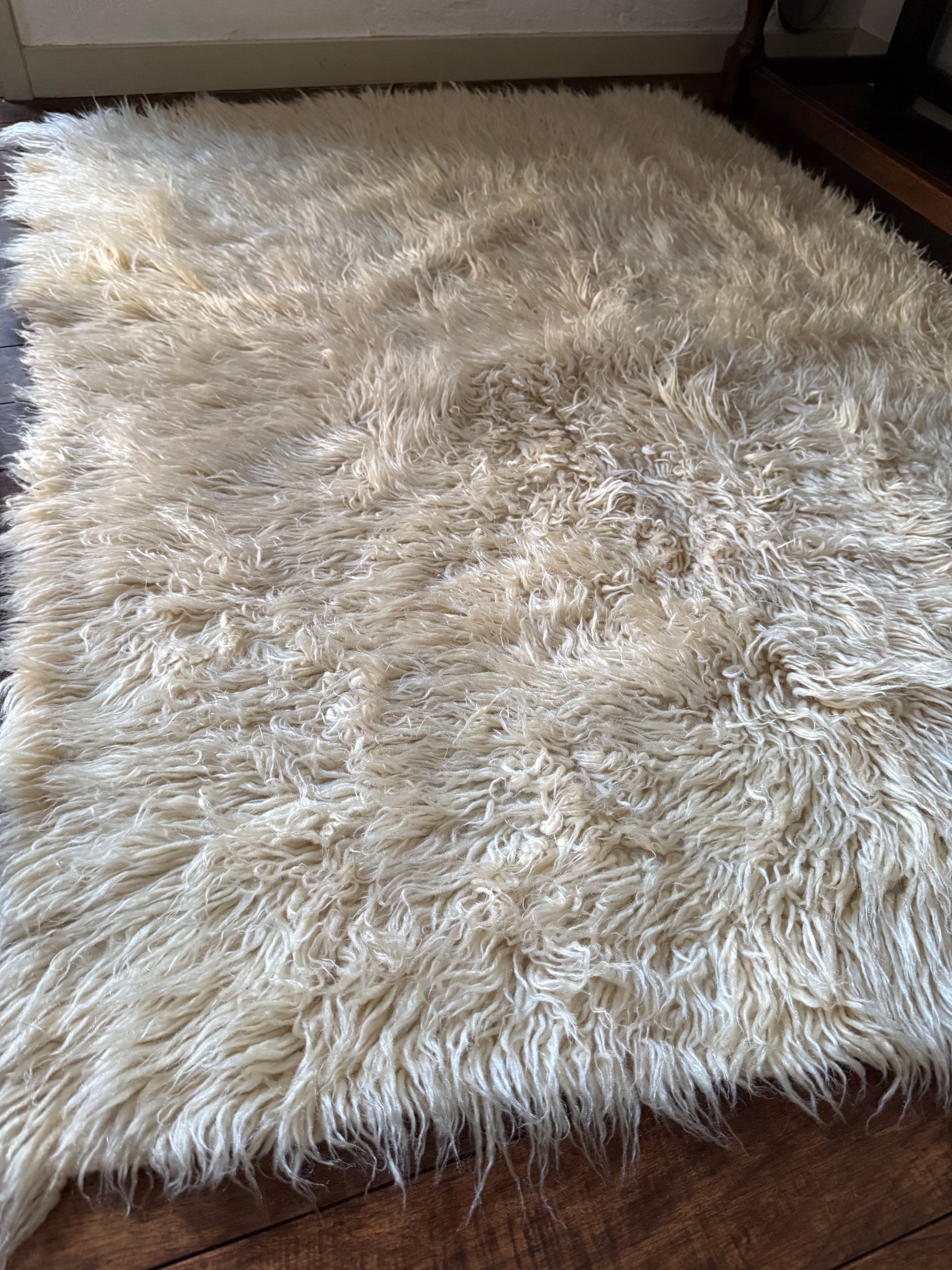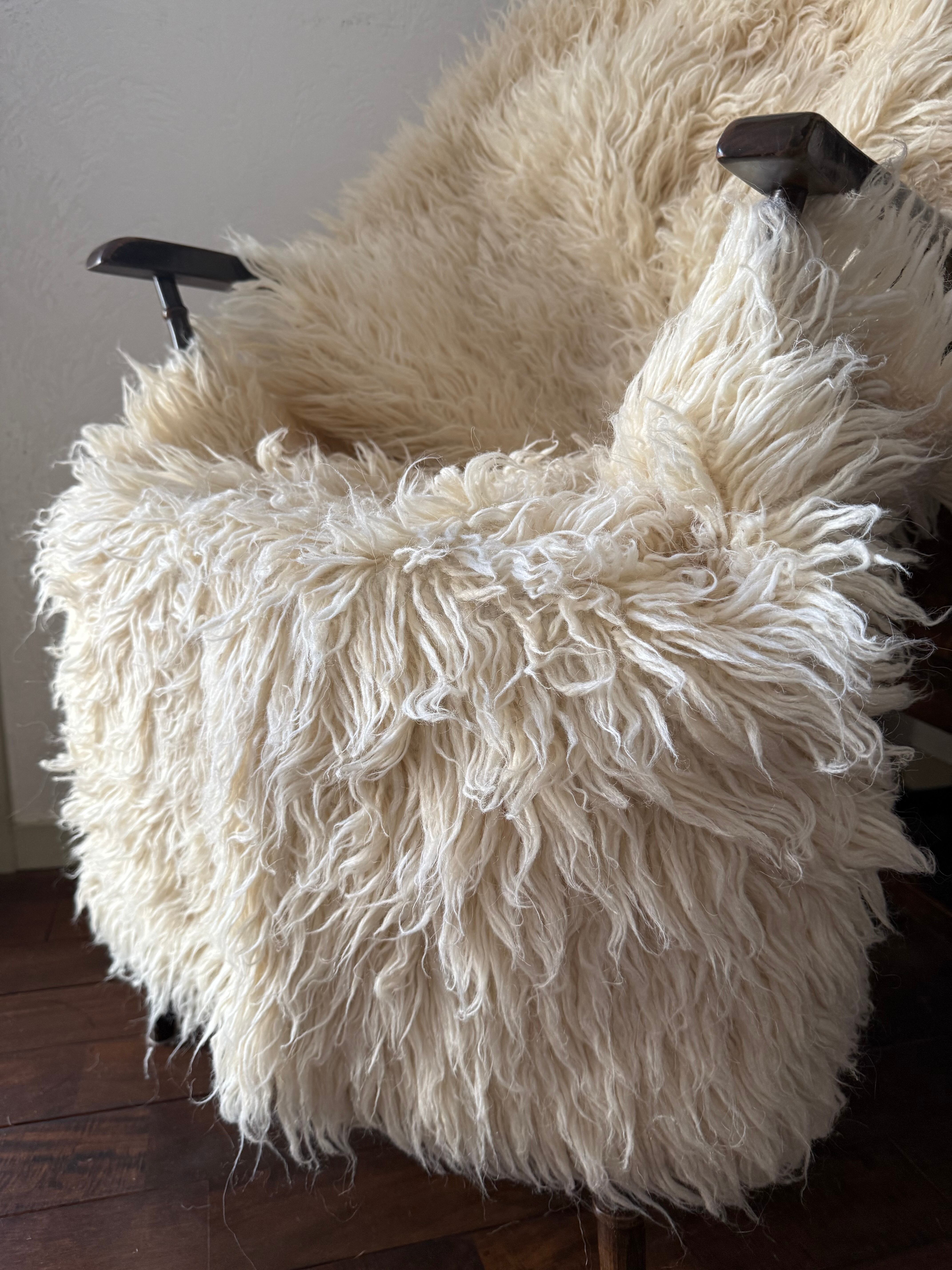 山岳地帯で暮らす遊牧民たちが自らの暮らしのために織ってきたもので、寒さを凌ぐためにこのように毛足が長い織物を作るようになったようです。