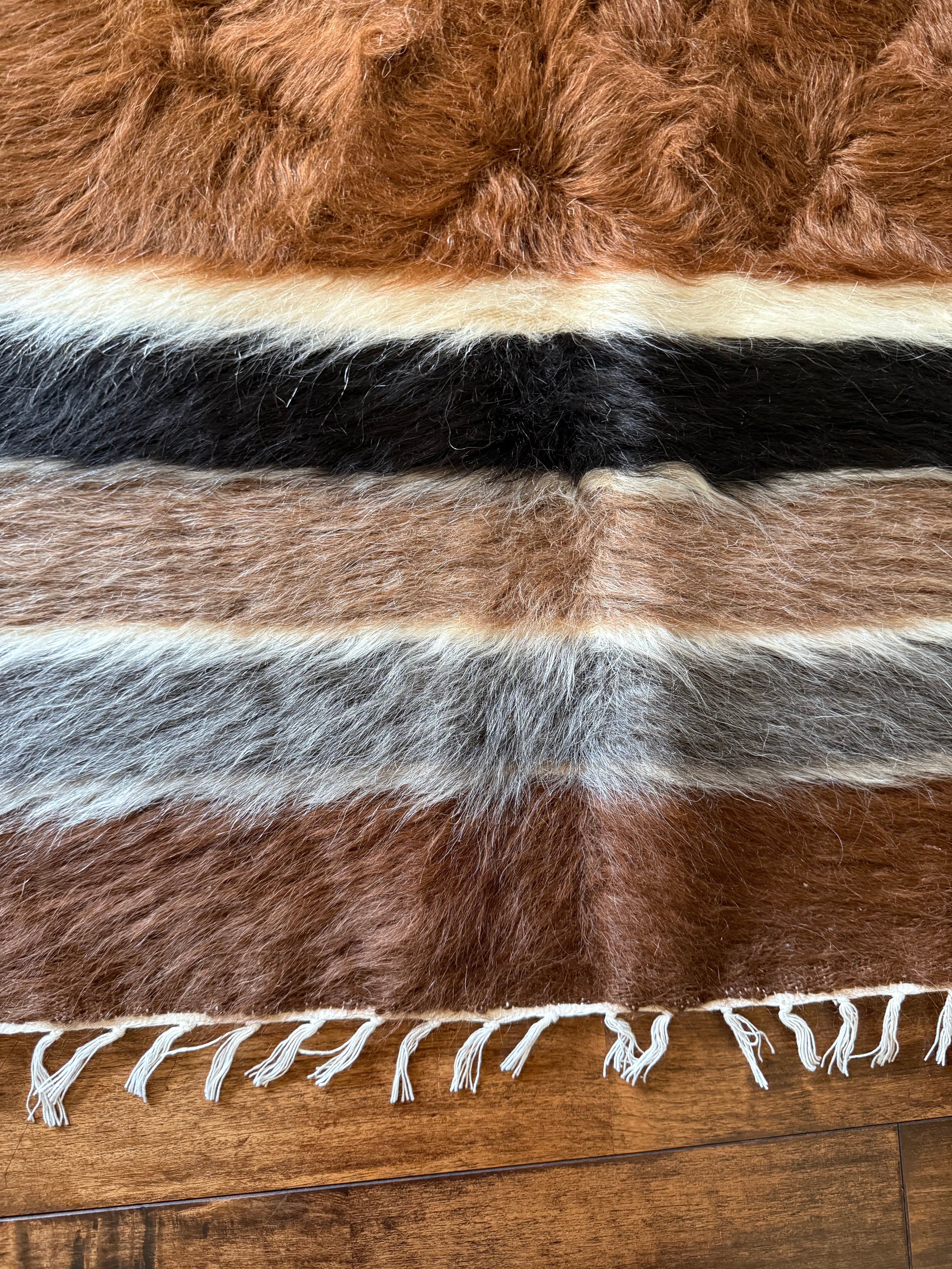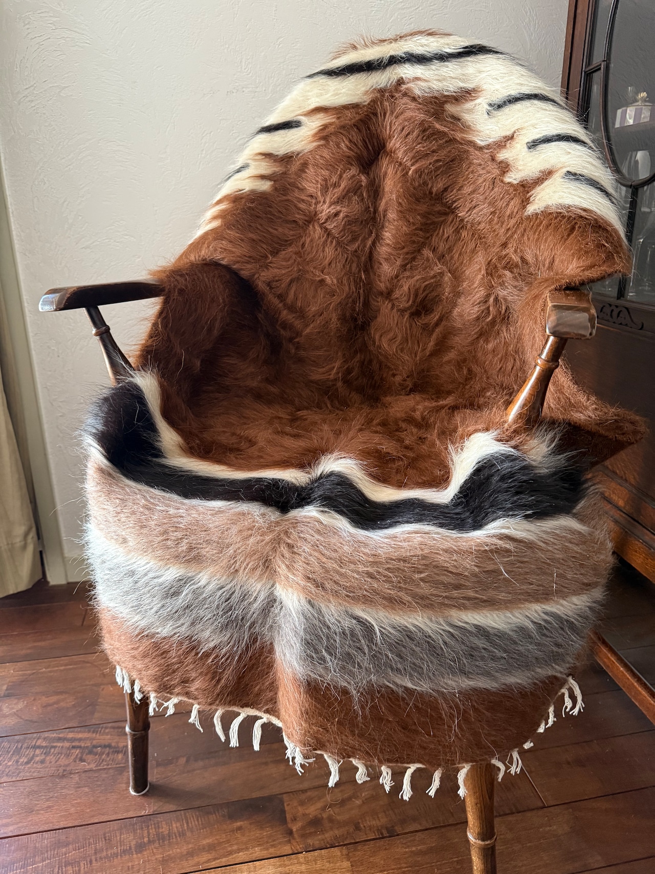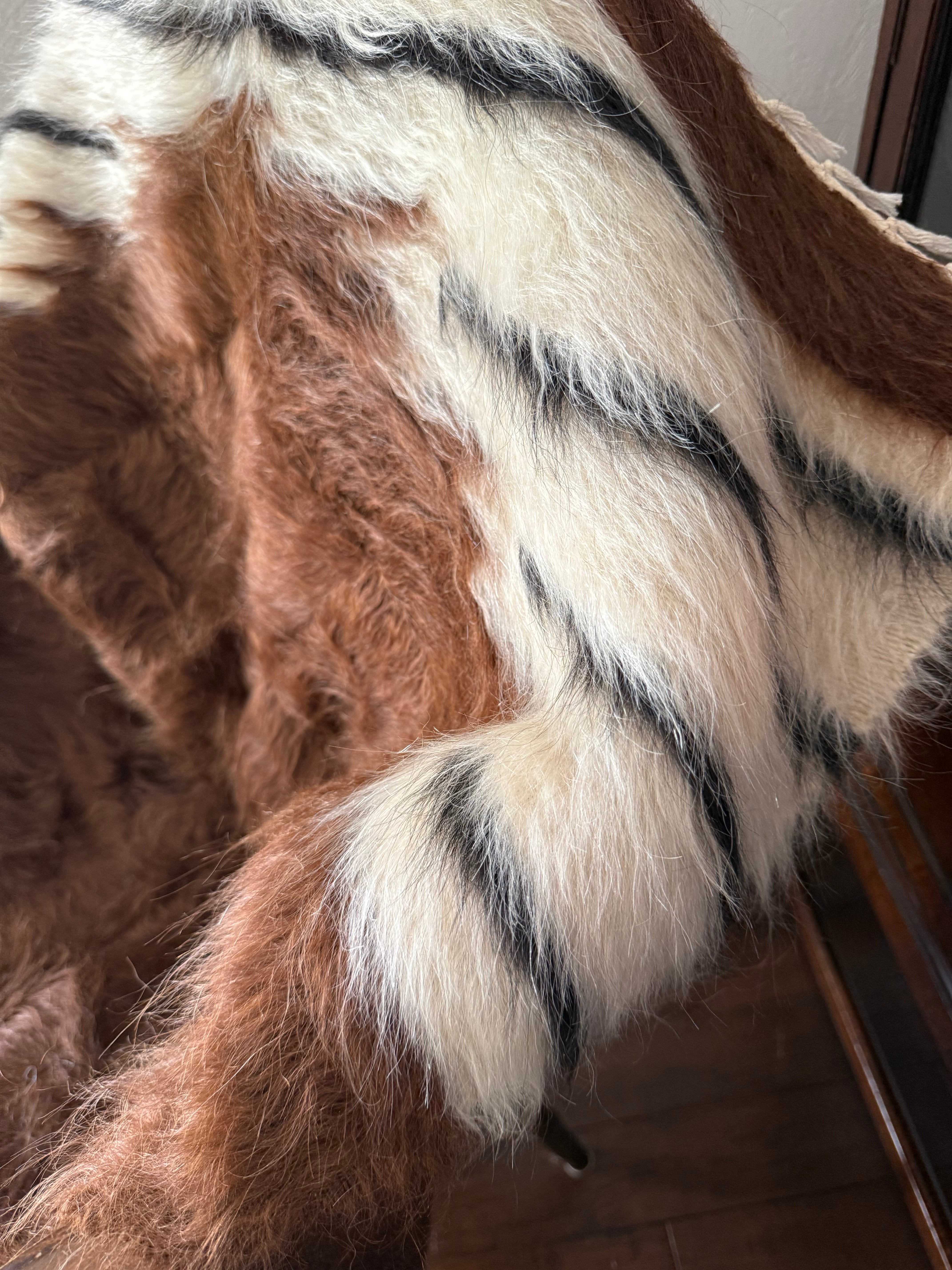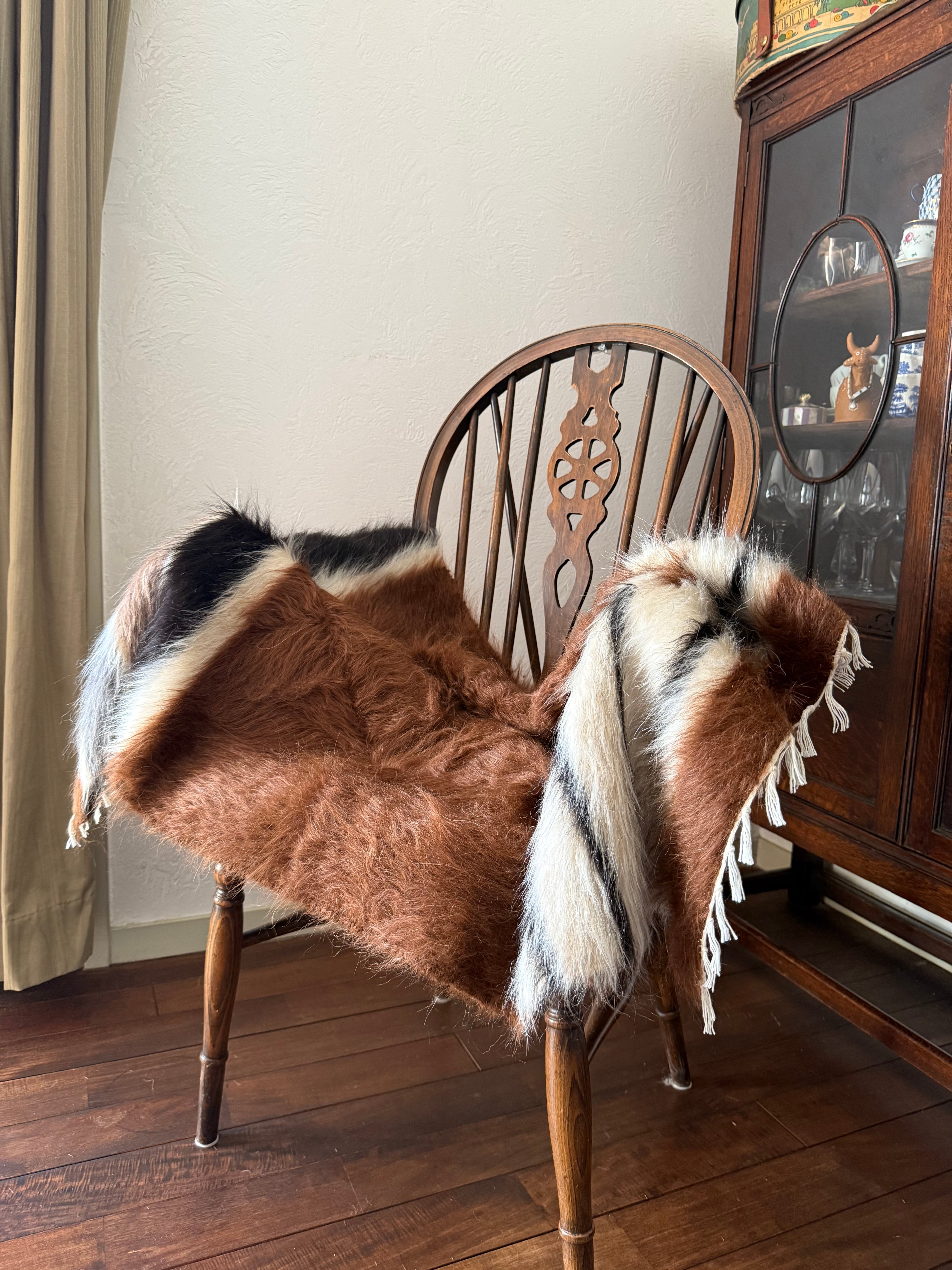 こちらはトップのホワイト部分にブラックのラインが入っているタイプで(ここのラインがブラウンのこともあり、ラインなしのものもあります)、このブラックが全体をきりりと引き締めています。中央のダイヤ柄もはっきりと出ており、毛並みも長くとても豊かです。